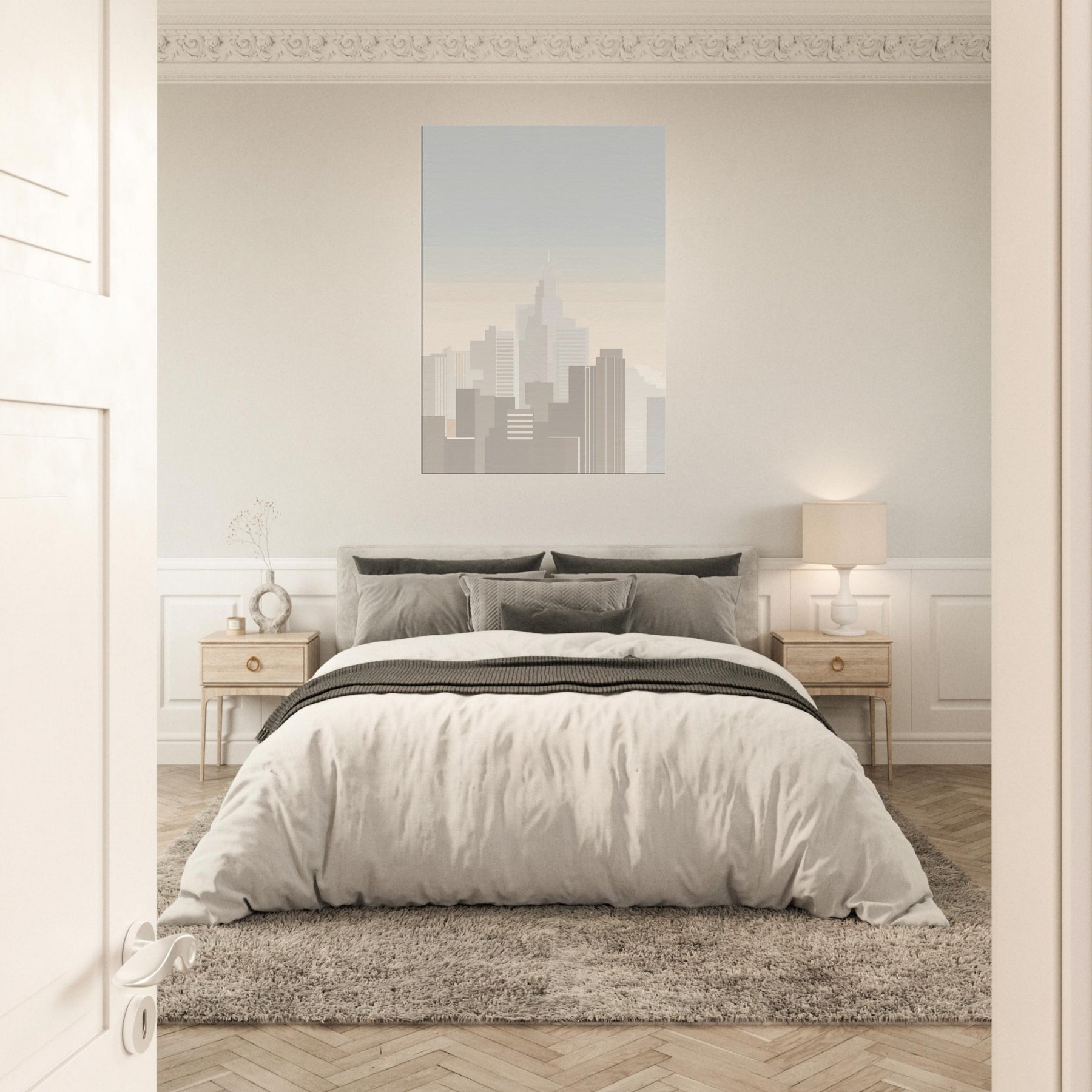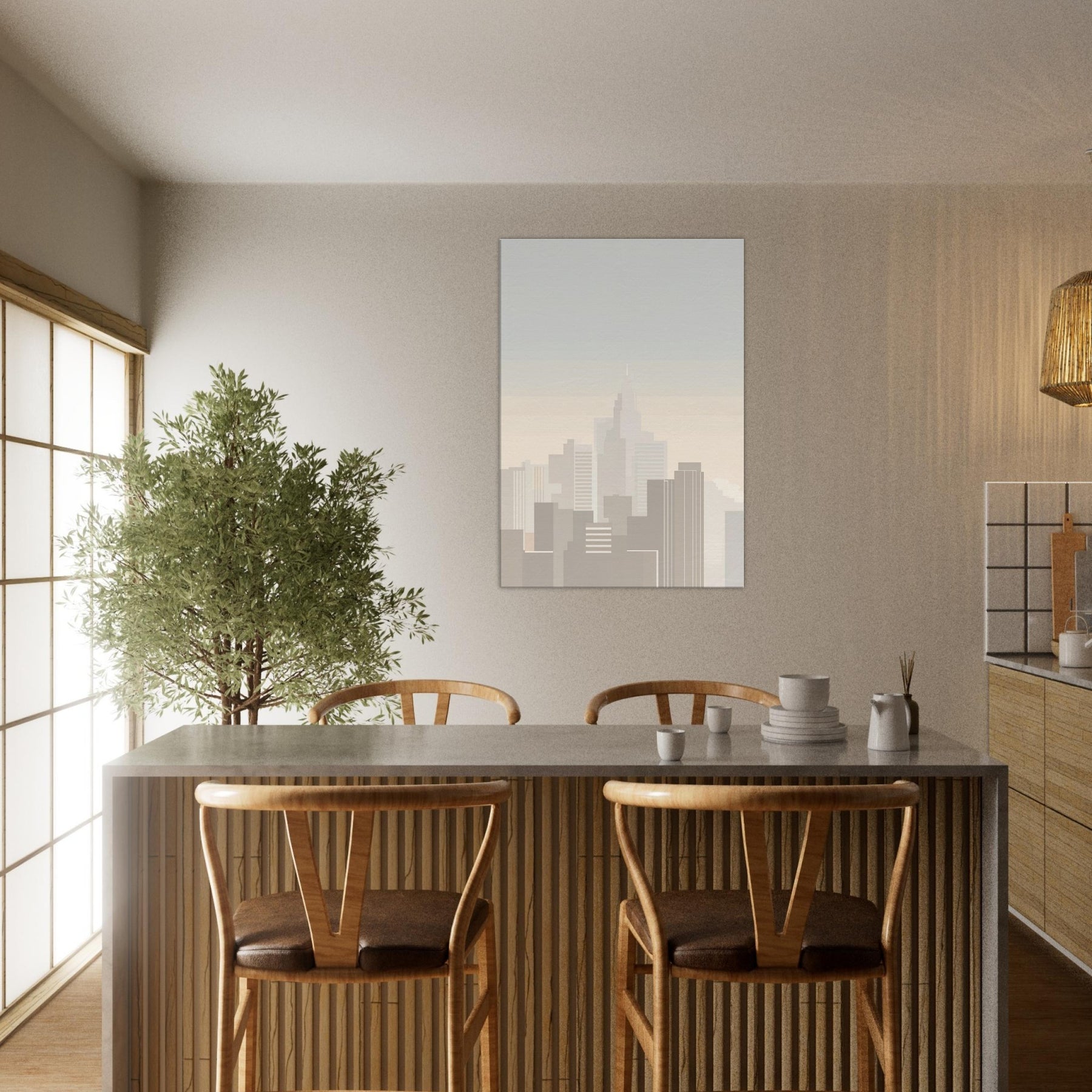 In this minimalist study of Rio de Janeiro, the city unfolds as a quiet symphony of lines and soft tones. Skyscrapers stand like calm echoes against a sun washed horizon, inviting the eye to linger and breathe. This piece brings a restrained, architectural elegance to any room, catching light and shadow with gentle shifts that change with the day. Perfect for a living space, it adds atmosphere, balance, and a sense of horizon.