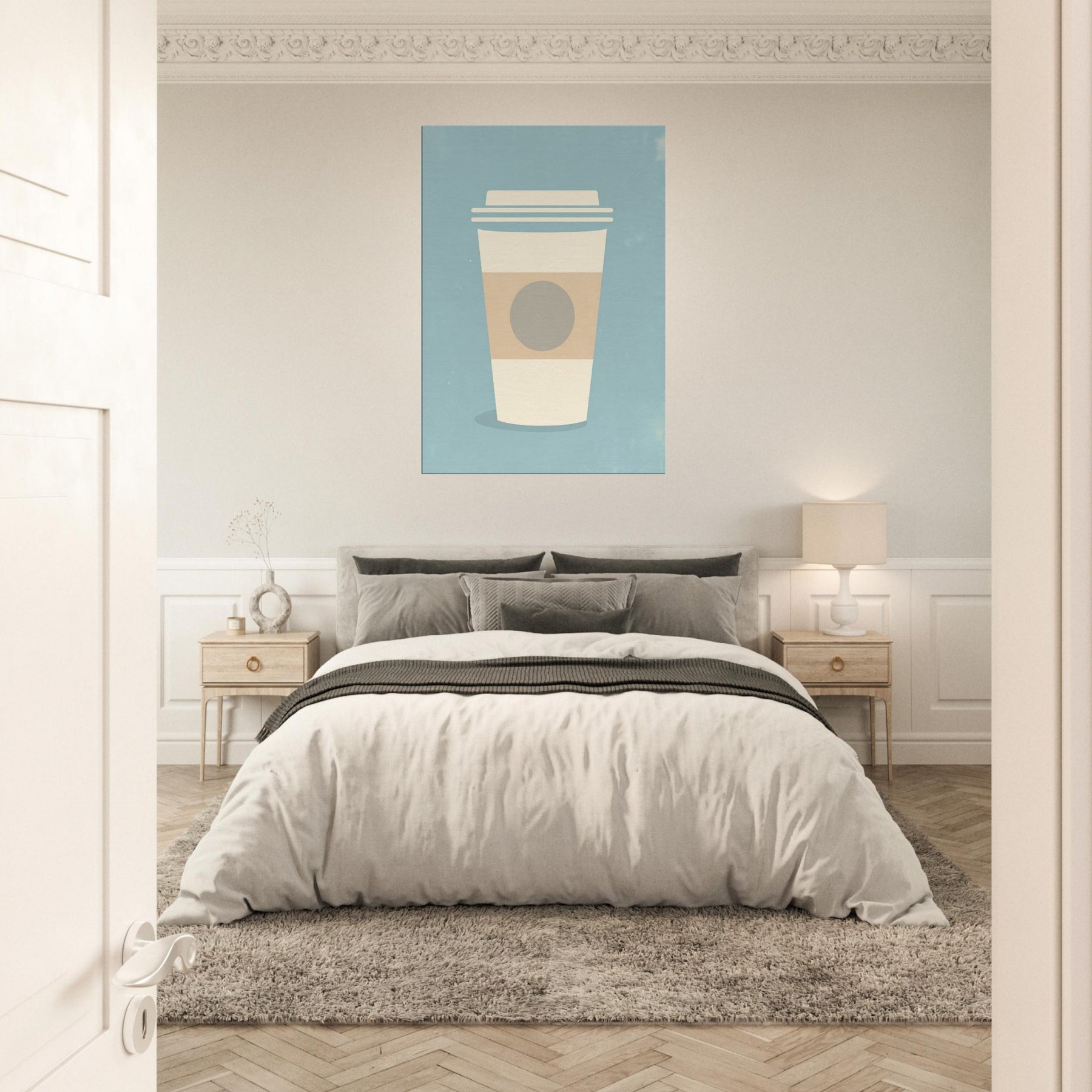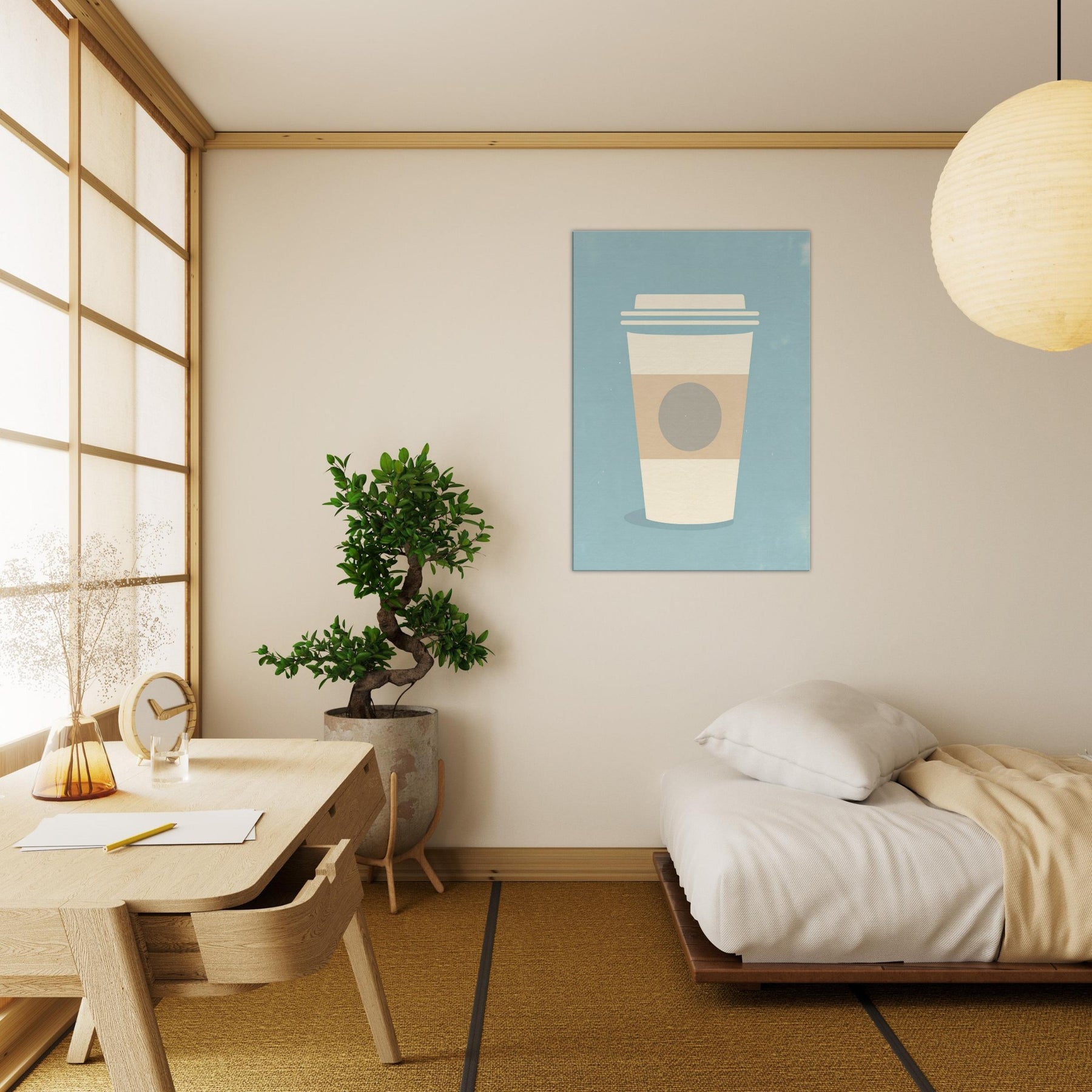 An understated delight for any room, this minimalist Coffee Cup To Go becomes a quiet focal point that slows the day. The clean silhouette and gentle beige sleeve float against a soft blue backdrop, evoking early mornings, urban strolls, and the ritual of a warm sip. It adds breathable atmosphere to a kitchen, office nook, or living area, inviting conversations about routine, pause, and small pleasures. A timeless piece that blends with neutral palettes and contemporary interiors.
