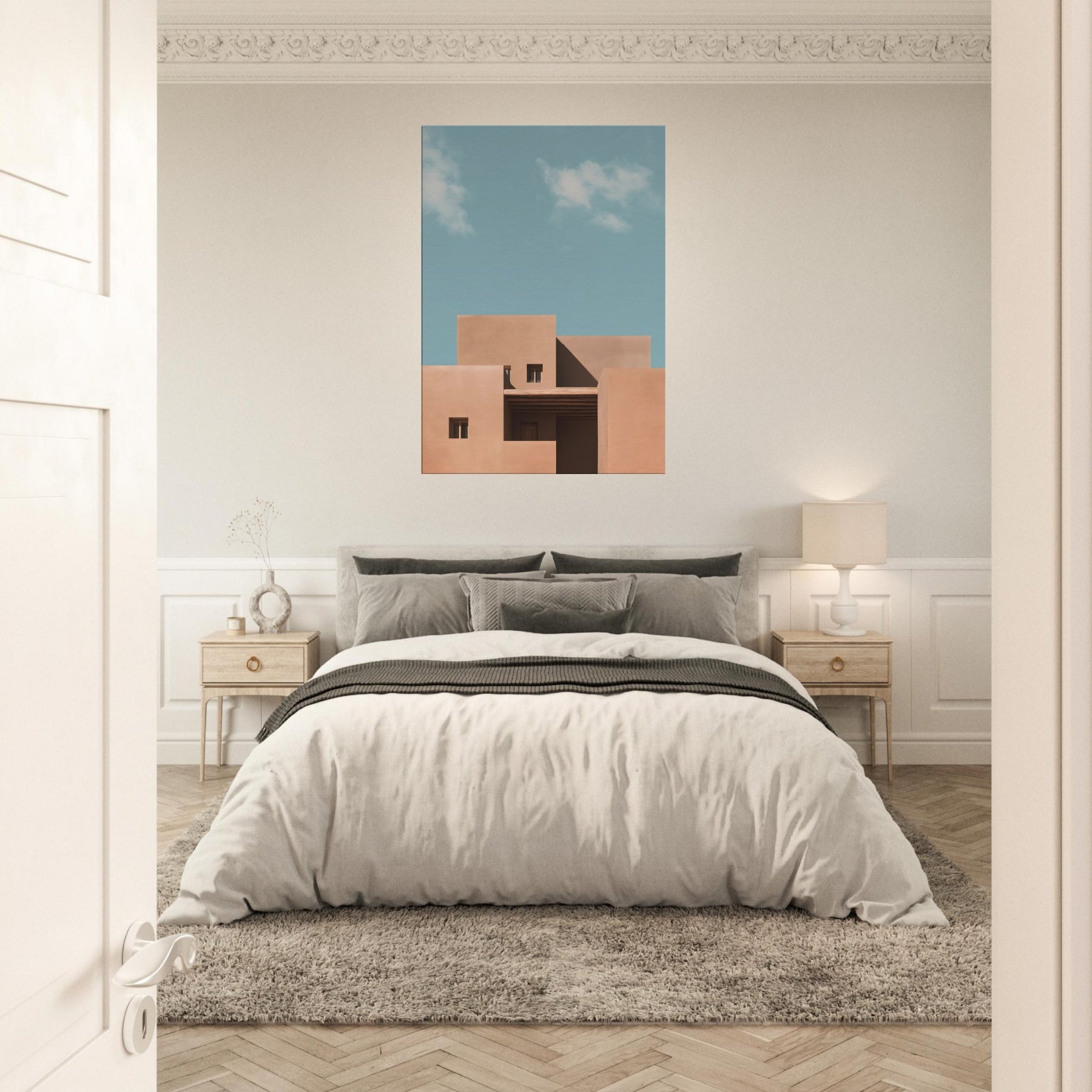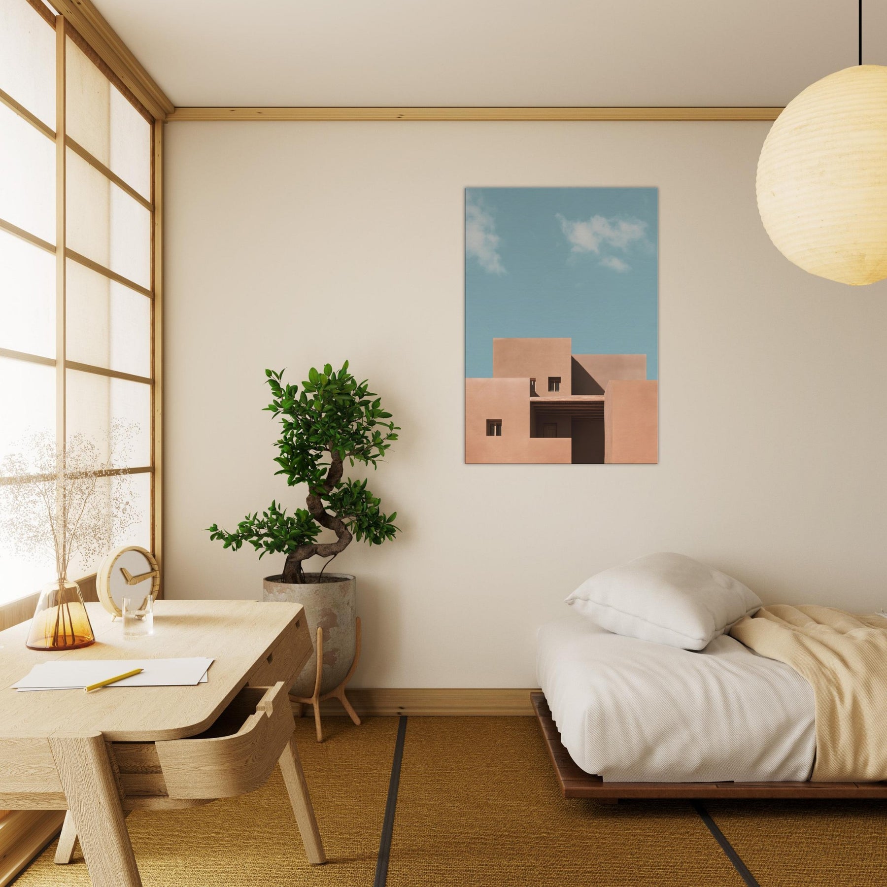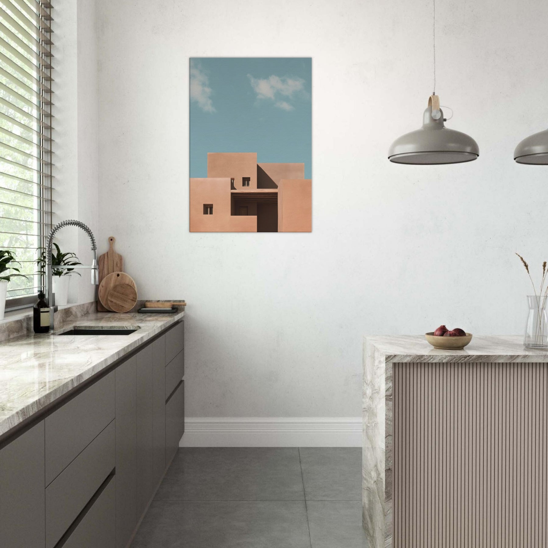 Captured in soft, sun warmed tones, Marrakech emerges as a quiet meditation on space and light. This minimalist study of urban geometry renders the city’s signature adobe blocks as a harmonious composition shadow and surface meeting in clean, unhurried lines. Hang this piece where conversation lingers: above a sofa, in a hallway, or near a reading nook to invite stillness and wonder. It breathes warmth into cool rooms and reminds us how architecture can feel like a breath of desert air.