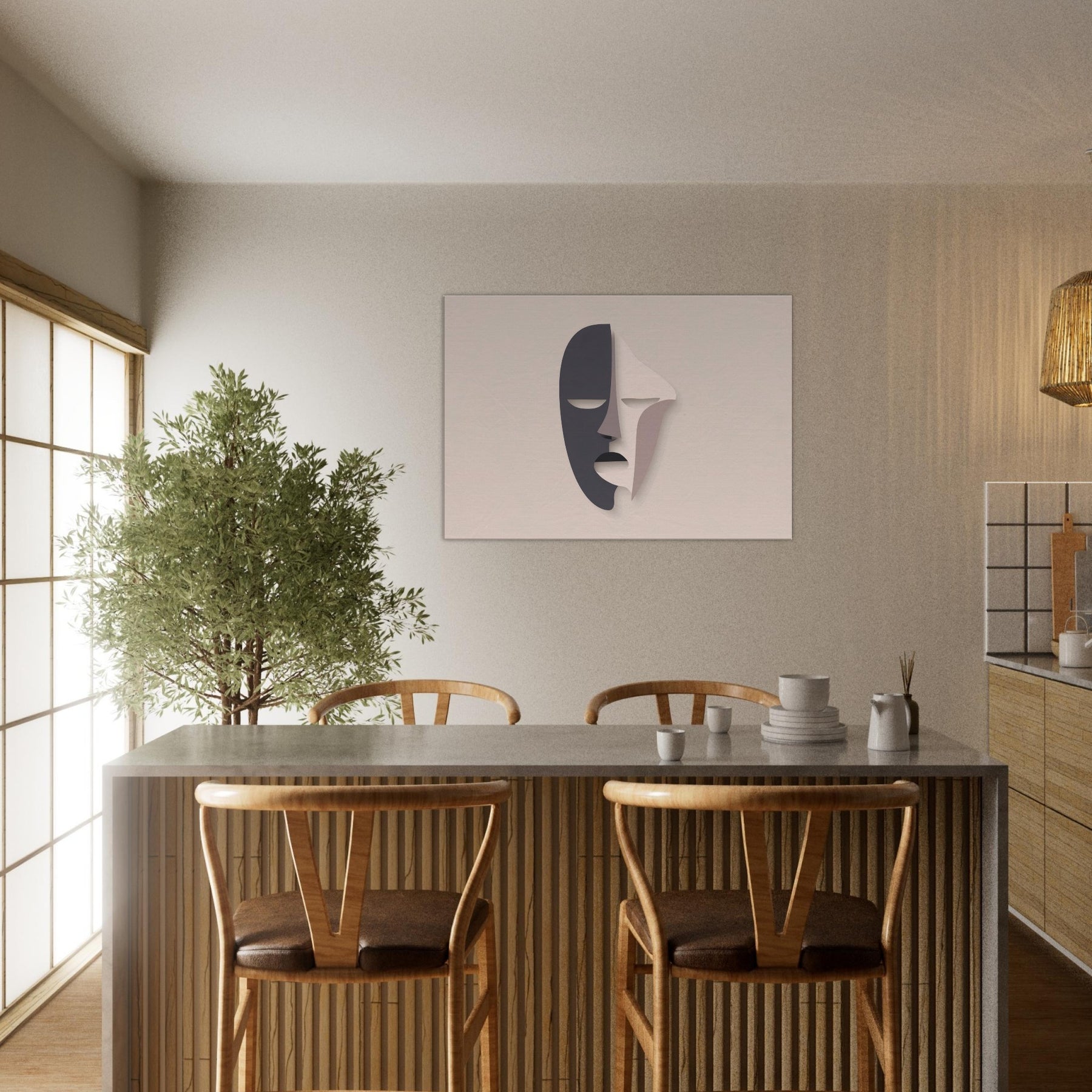 Tribal Mask emerges as a quiet silhouette, a sculptural meditation in two muted tones. This minimalist piece speaks in gentle curves and folded planes, where shadow and light converse across the face. It settles with a serene presence, elevating a living room or study with a mood of calm mystery. The layered form catches shifting light, revealing depth from every angle and inviting slow, contemplative moments. Pair it with warm woods and neutral textiles to create a refined, modern sanctuary that feels both ancient and immediate.