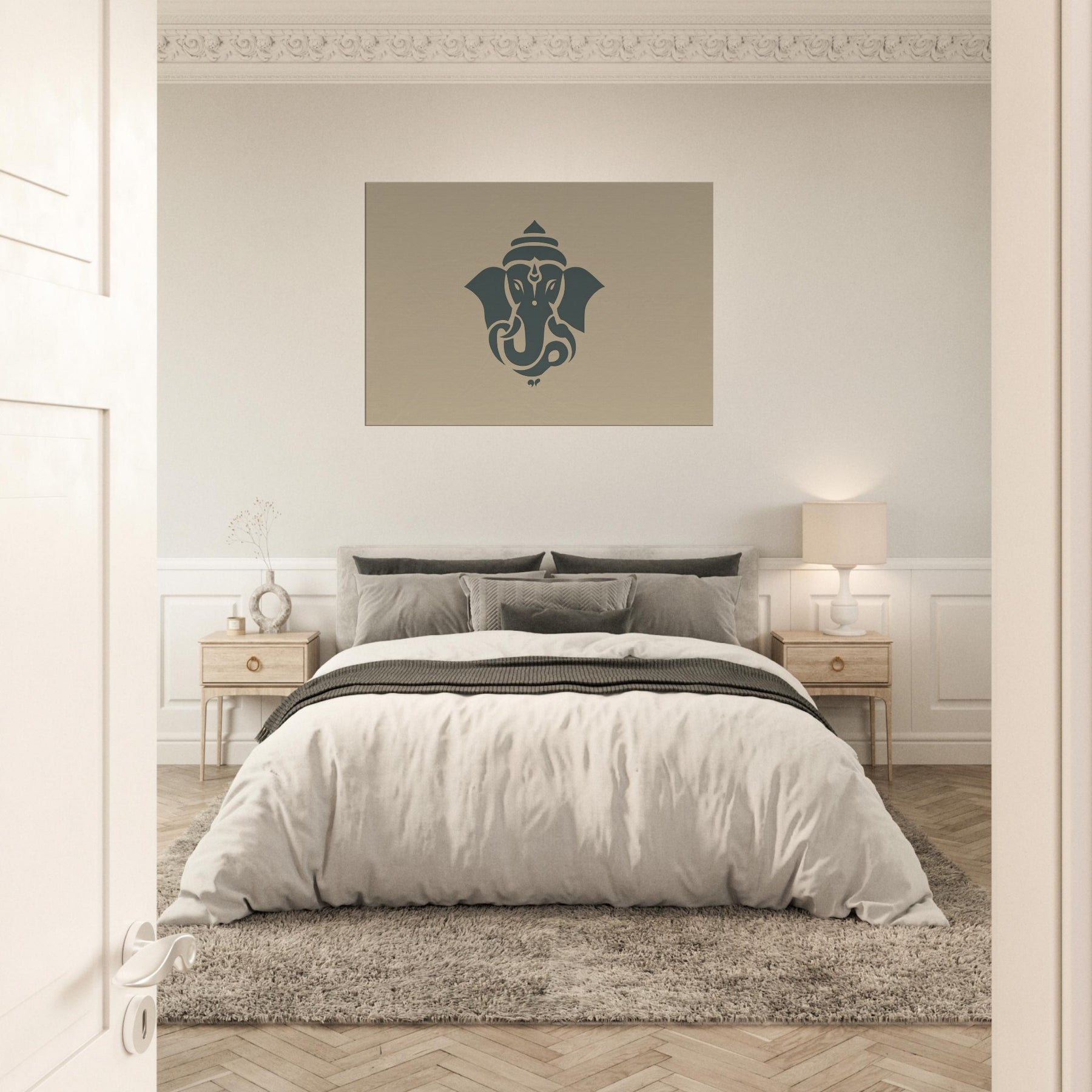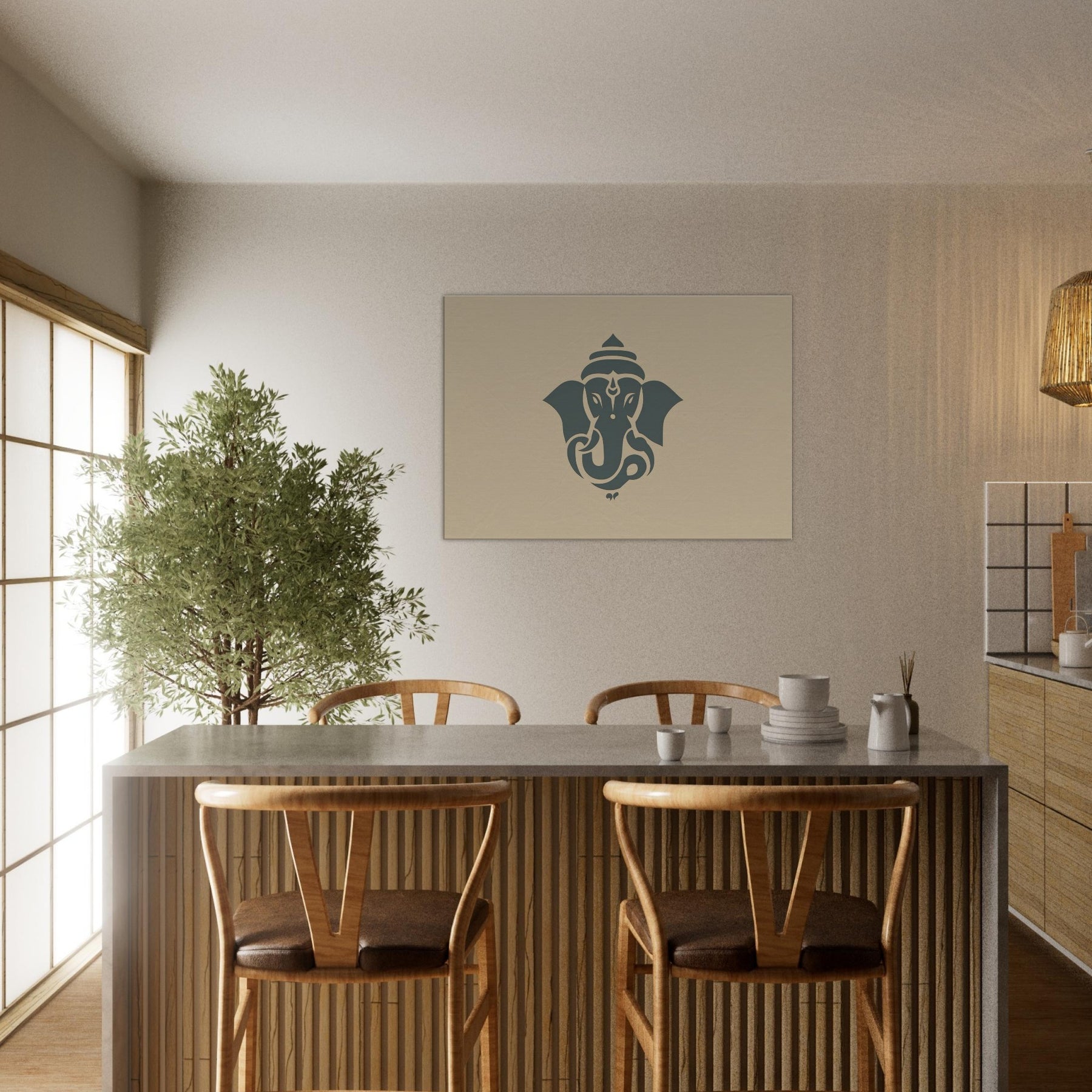 An understated silhouette of Ganesha emerges in a single, fluid arc, exuding calm and quiet wisdom. The minimalist form invites contemplation without distraction, turning any wall into a sanctuary of focus. In a restrained palette of ink on warm beige, it warms a room with ancient mystique while keeping modern spaces uncluttered and serene. This artwork becomes a subtle companion for creativity, ritual, and daily intention, transforming hallways, lounges, or home offices into a space where obstacles soften and intention flows.