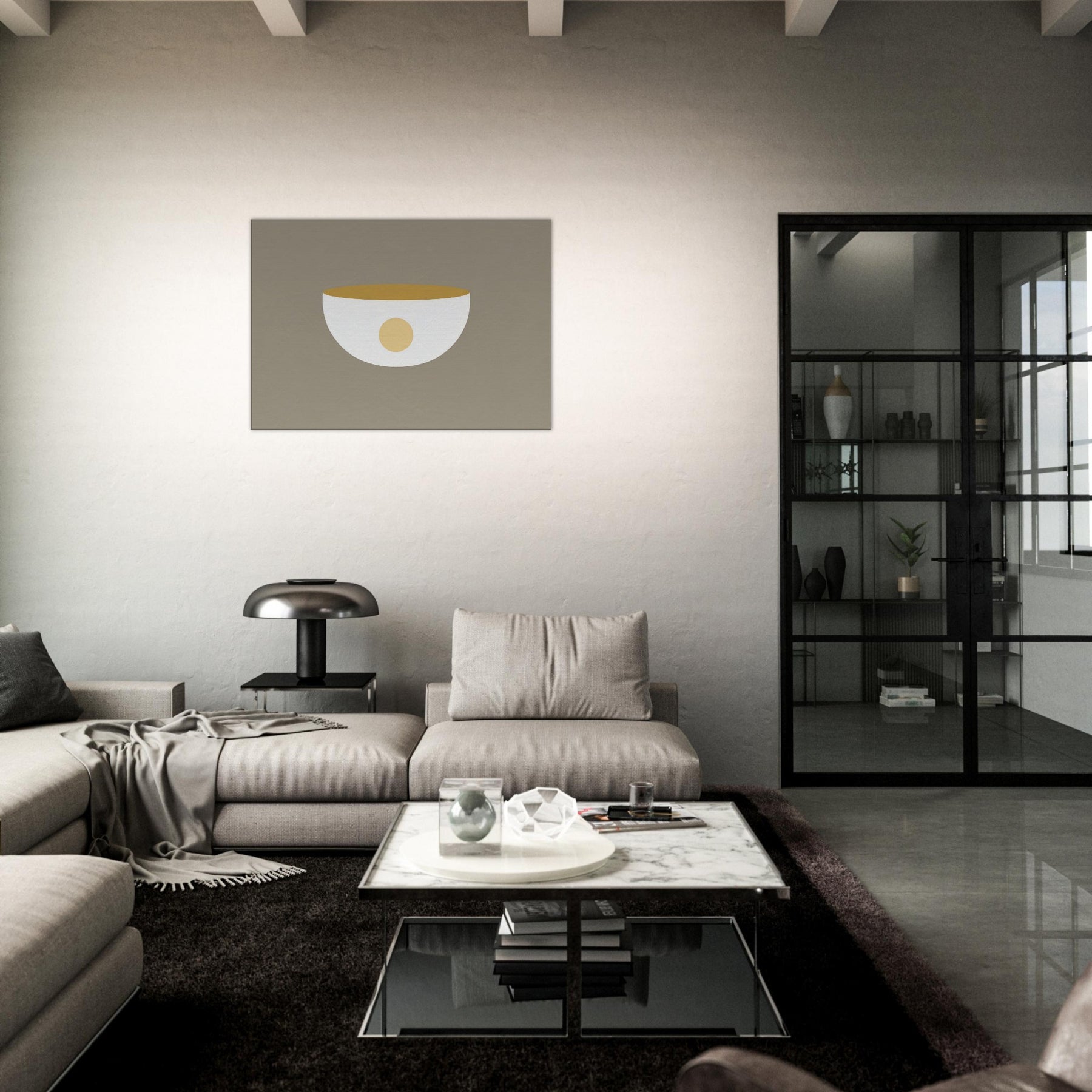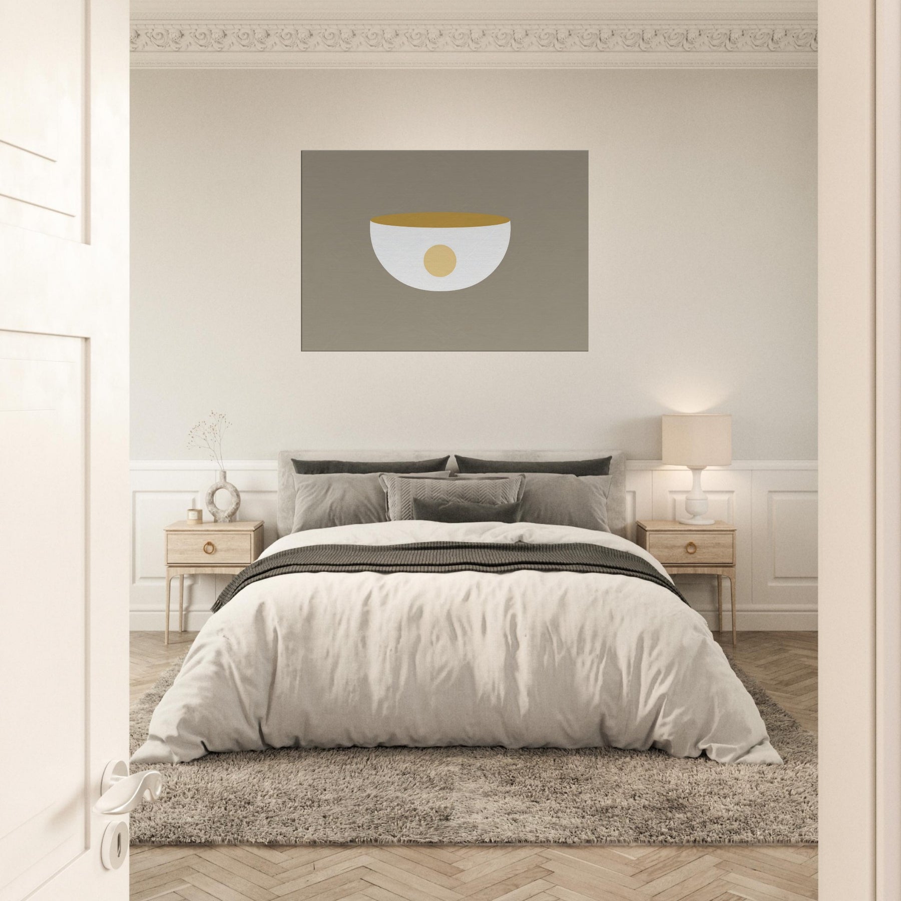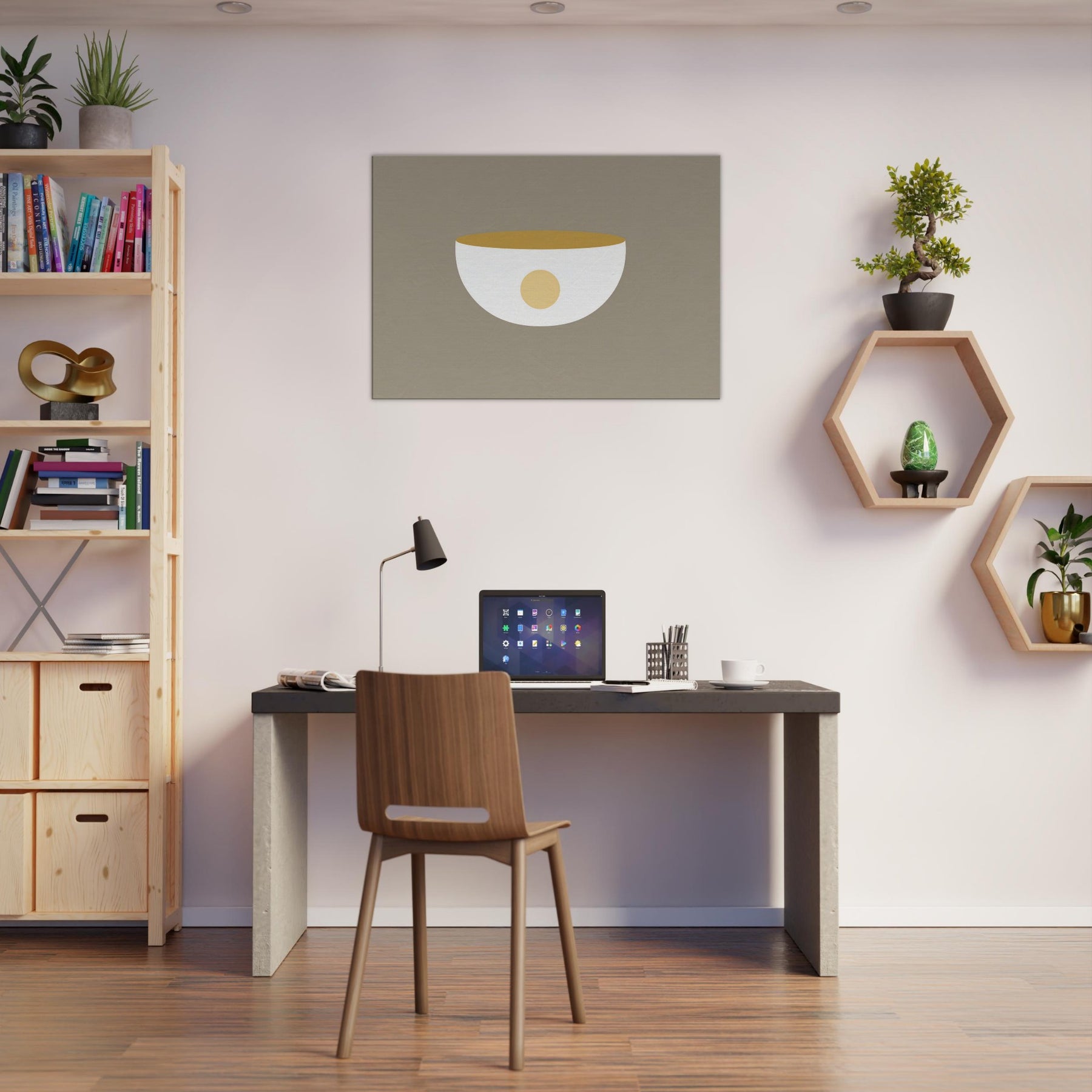 Within a soft, earth lit frame, the Singing Bowl exudes quiet radiance. The minimalist form invites the eye to rest as a warm, sun gold arc crowns a pure white bowl, while a gentle circle centers the composition like a breathing heartbeat. This piece settles into any room with a meditative hush, turning walls into a sanctuary where conversations slow, breaths deepen, and daylight lingers. Ideal for living spaces seeking clarity, ritual, and a touch of mystical stillness.
