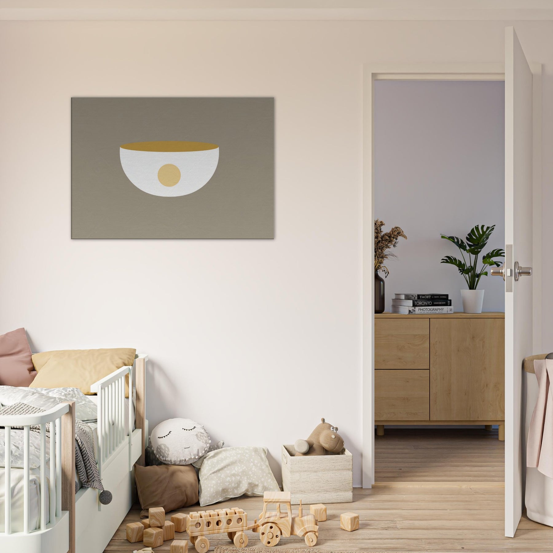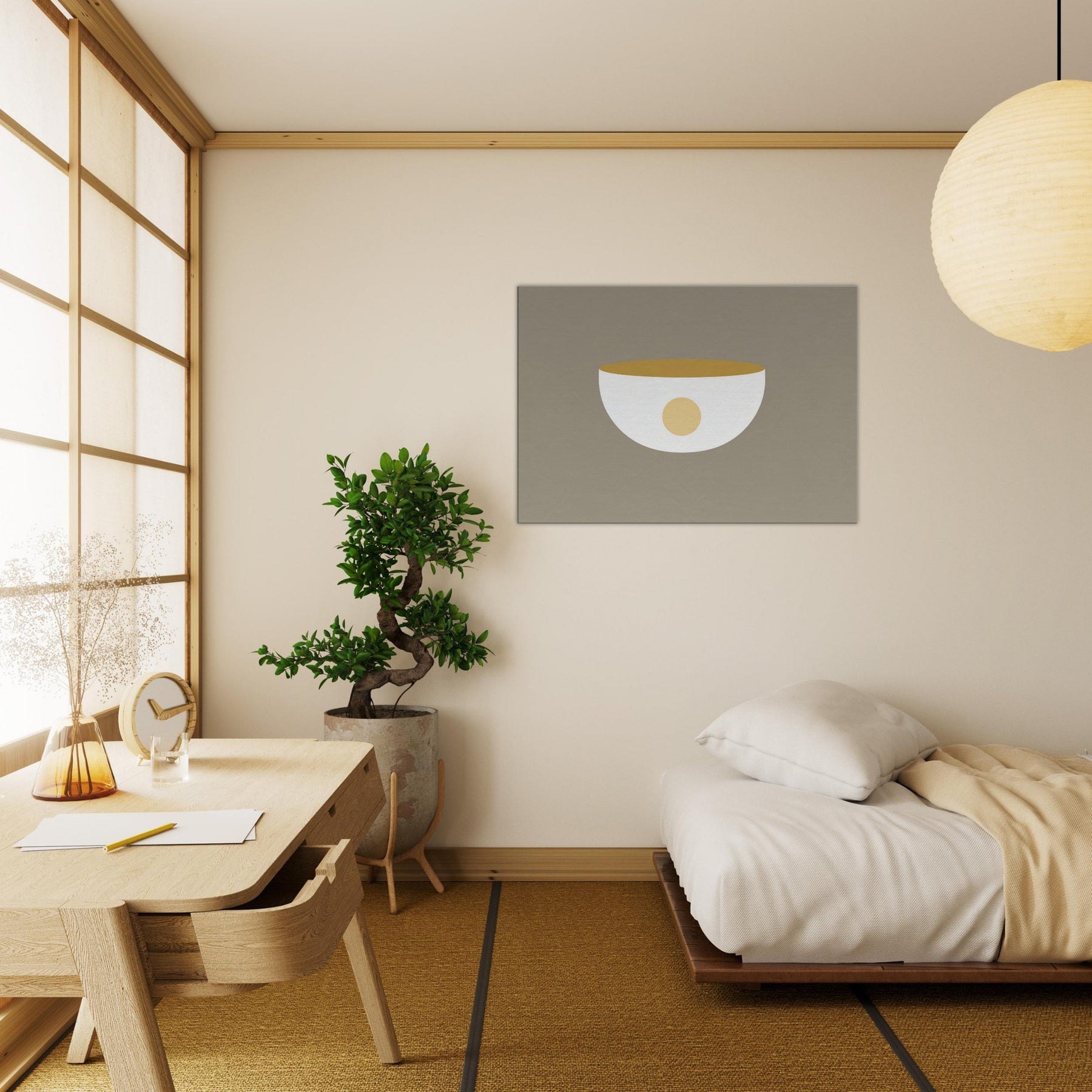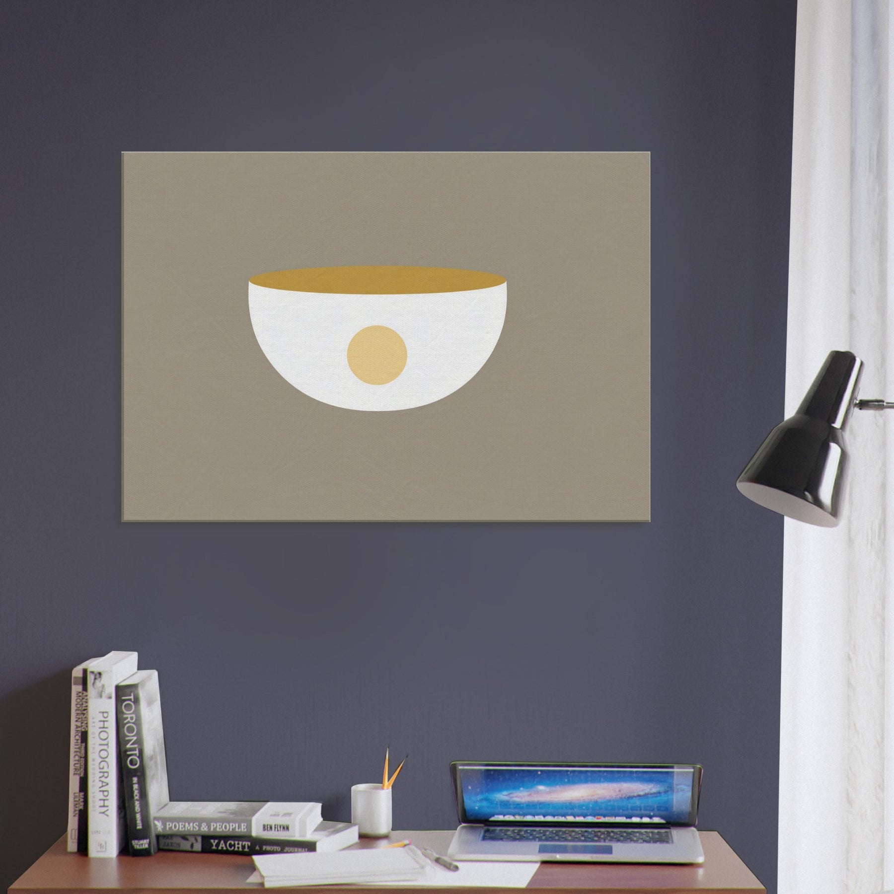 Within a soft, earth lit frame, the Singing Bowl exudes quiet radiance. The minimalist form invites the eye to rest as a warm, sun gold arc crowns a pure white bowl, while a gentle circle centers the composition like a breathing heartbeat. This piece settles into any room with a meditative hush, turning walls into a sanctuary where conversations slow, breaths deepen, and daylight lingers. Ideal for living spaces seeking clarity, ritual, and a touch of mystical stillness.