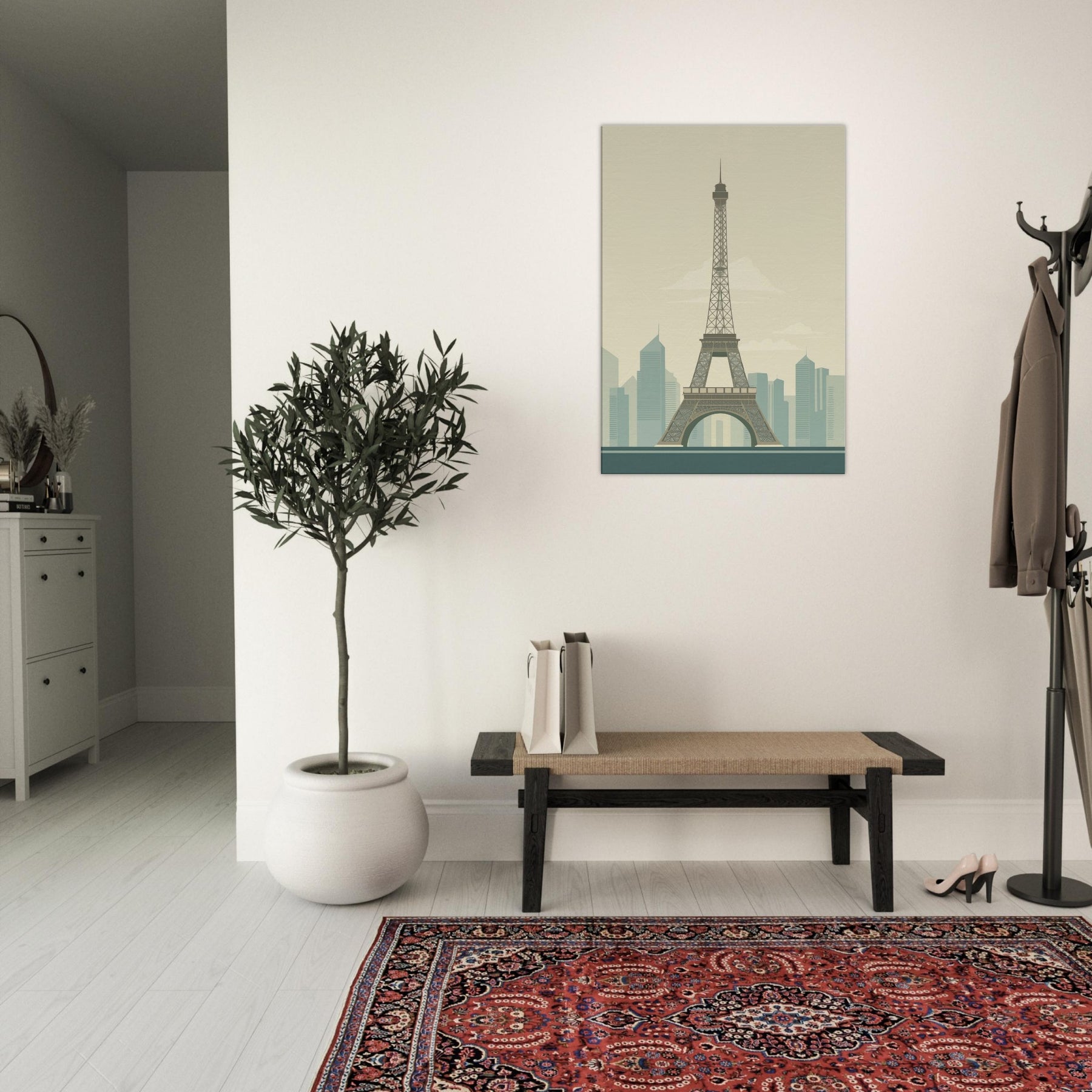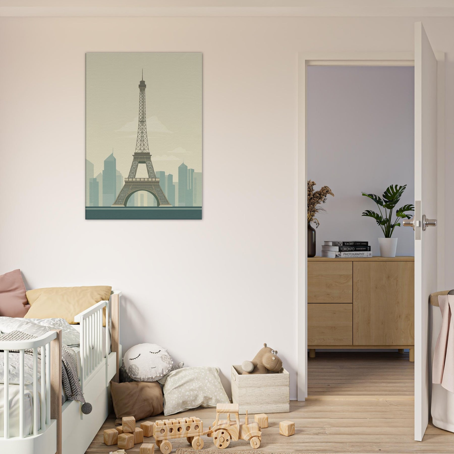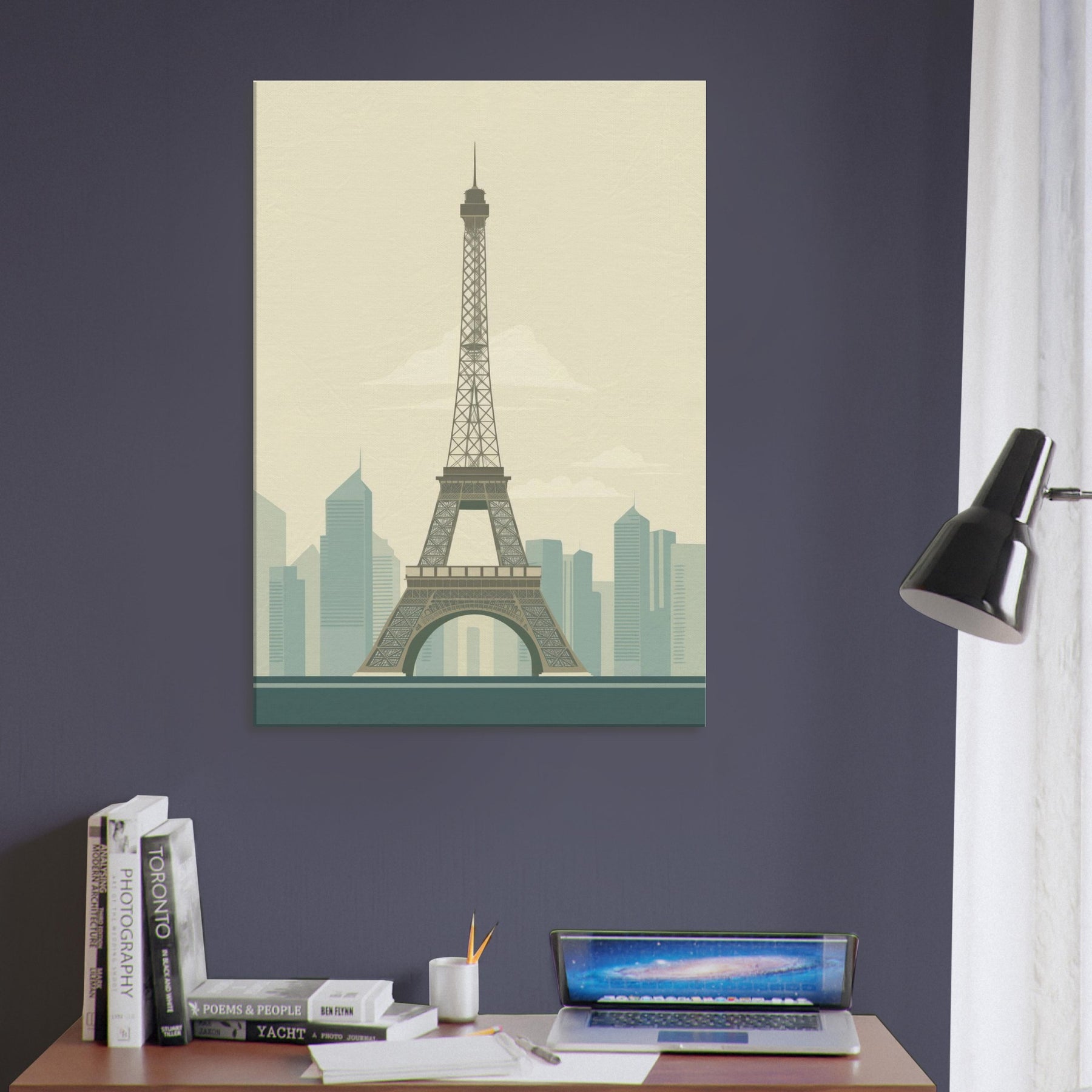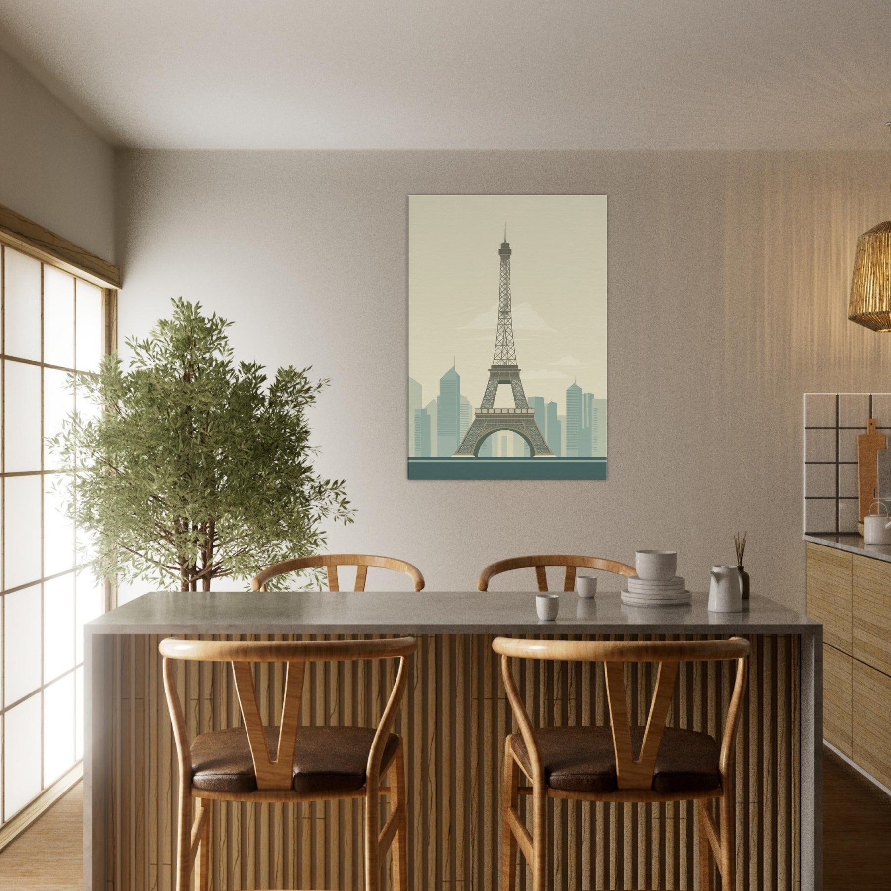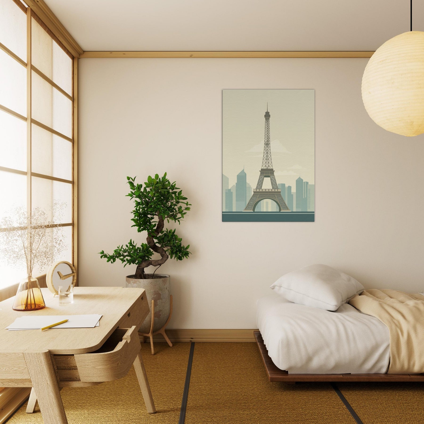 Let the Eiffel Tower rise as a quiet beacon in your space. This minimalist print captures the tower's iconic lattice with clean lines and soft, muted tones, inviting stillness and focus. Against a pale skyline, it creates a breathing room for conversation or contemplation, turning a wall into a portal to Parisian mornings. Perfect for a living room, study, or bedroom, it pairs with chrome, wood, or pastel accents to elevate everyday moments into a subtle, cinematic mood.