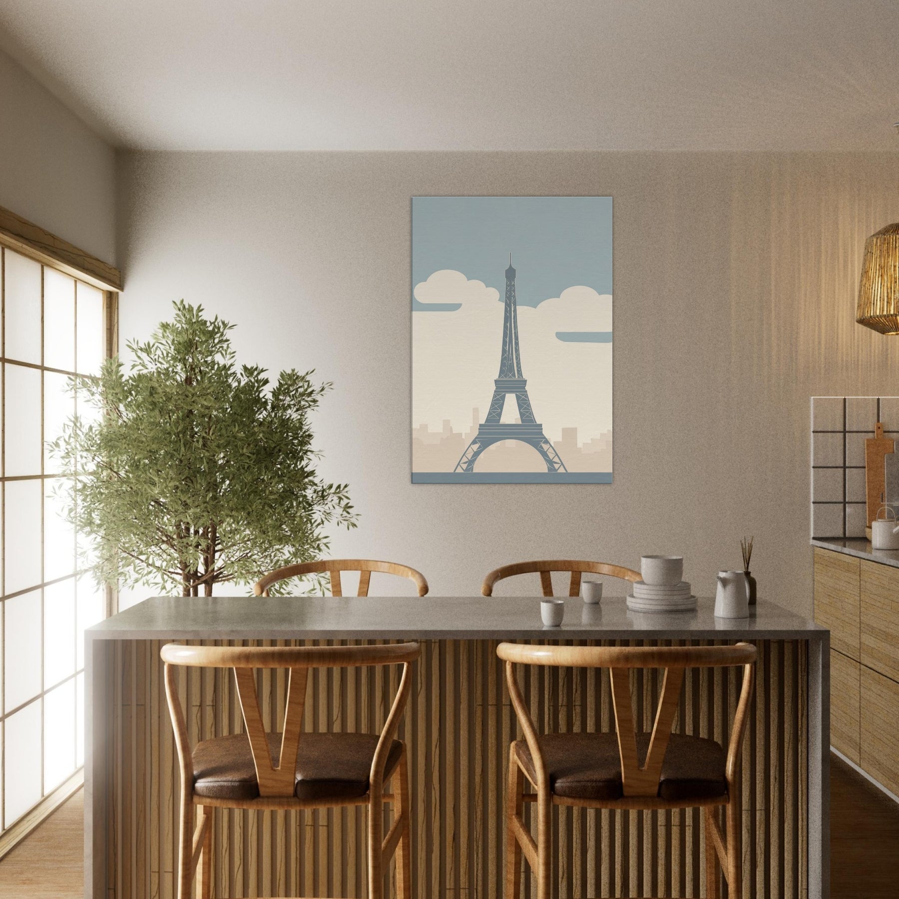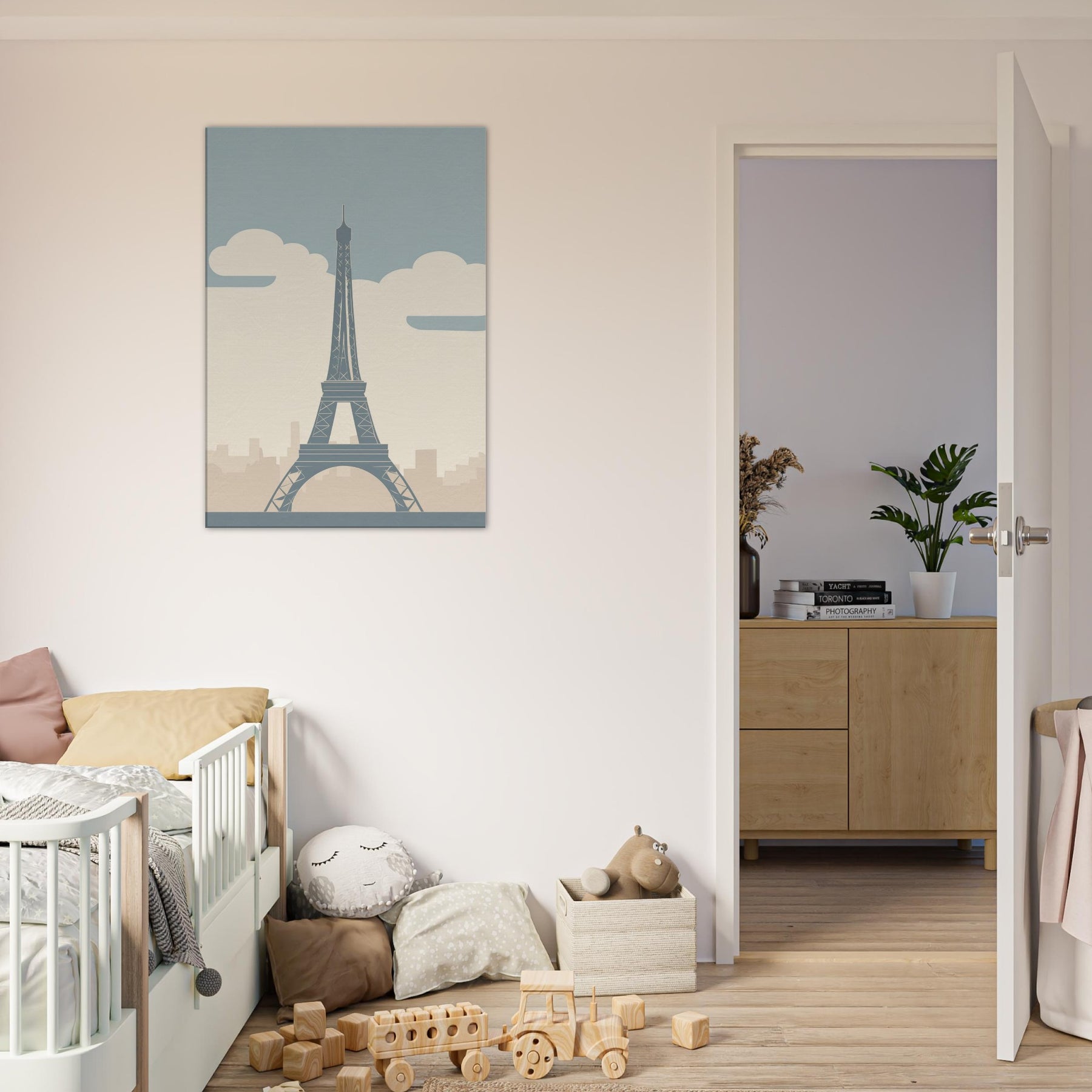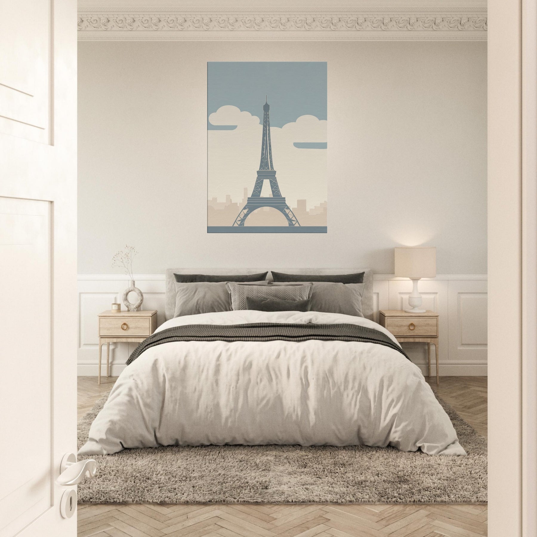 The Eiffel Tower rises in serene, pared back lines, capturing Cartier blue skies and a distant city glow. This quiet composition invites stillness into your room, turning everyday moments into a moment of pause. The soft palette slate blues and warm sand reflects dawn light and invites reflective moods. Place it in a living room or bedroom to lend grace without shouting. It pairs with modern furniture, pale textiles, and metallic accents, creating a calm focal point that feels both timeless and effortless an invitation to linger, breathe, and dream.
