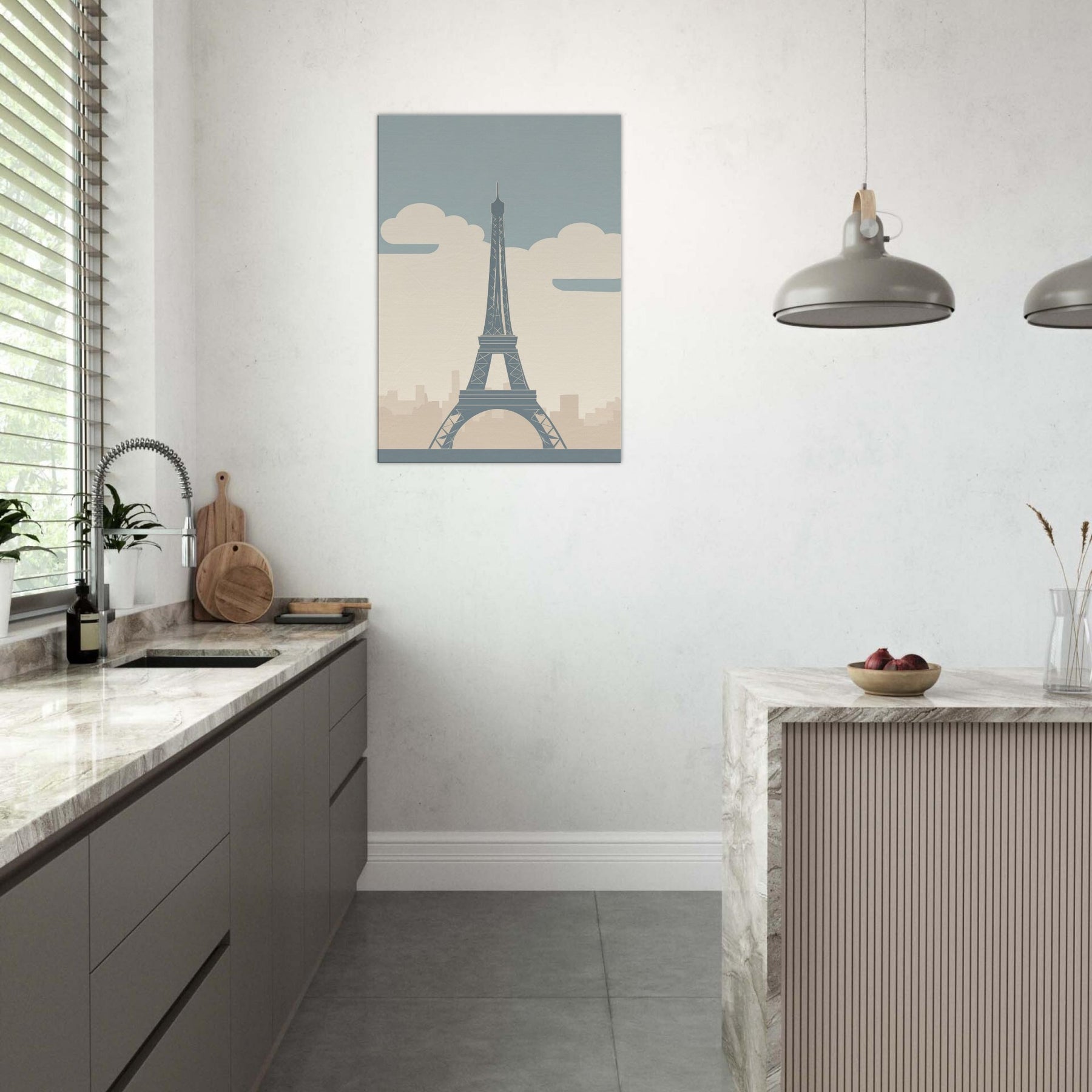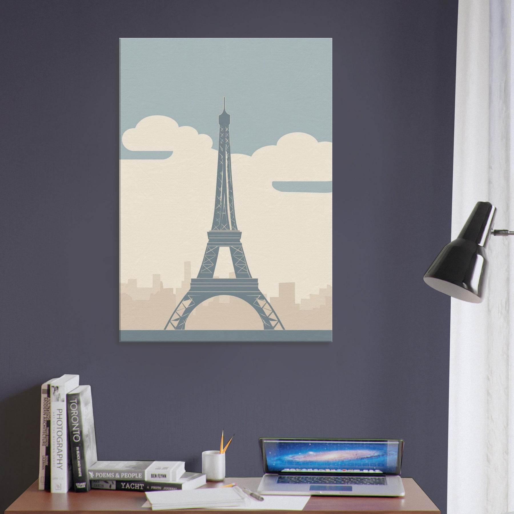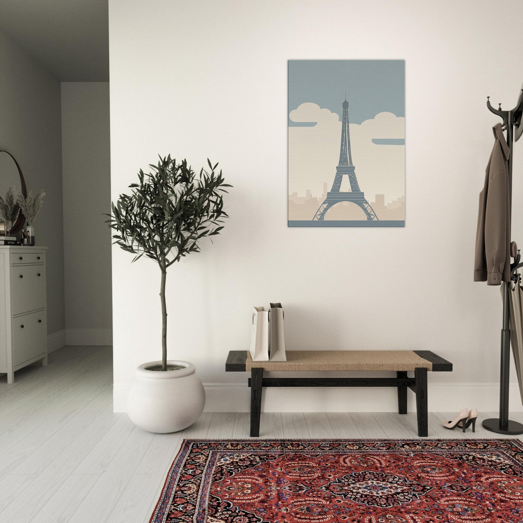 The Eiffel Tower rises in serene, pared back lines, capturing Cartier blue skies and a distant city glow. This quiet composition invites stillness into your room, turning everyday moments into a moment of pause. The soft palette slate blues and warm sand reflects dawn light and invites reflective moods. Place it in a living room or bedroom to lend grace without shouting. It pairs with modern furniture, pale textiles, and metallic accents, creating a calm focal point that feels both timeless and effortless an invitation to linger, breathe, and dream.