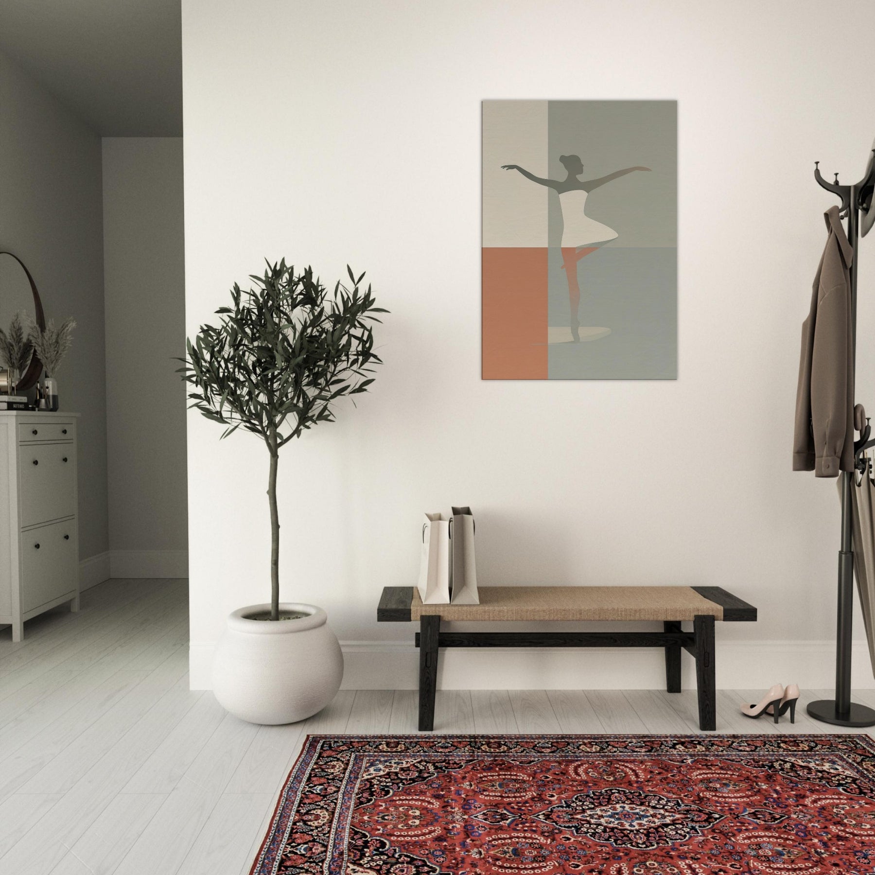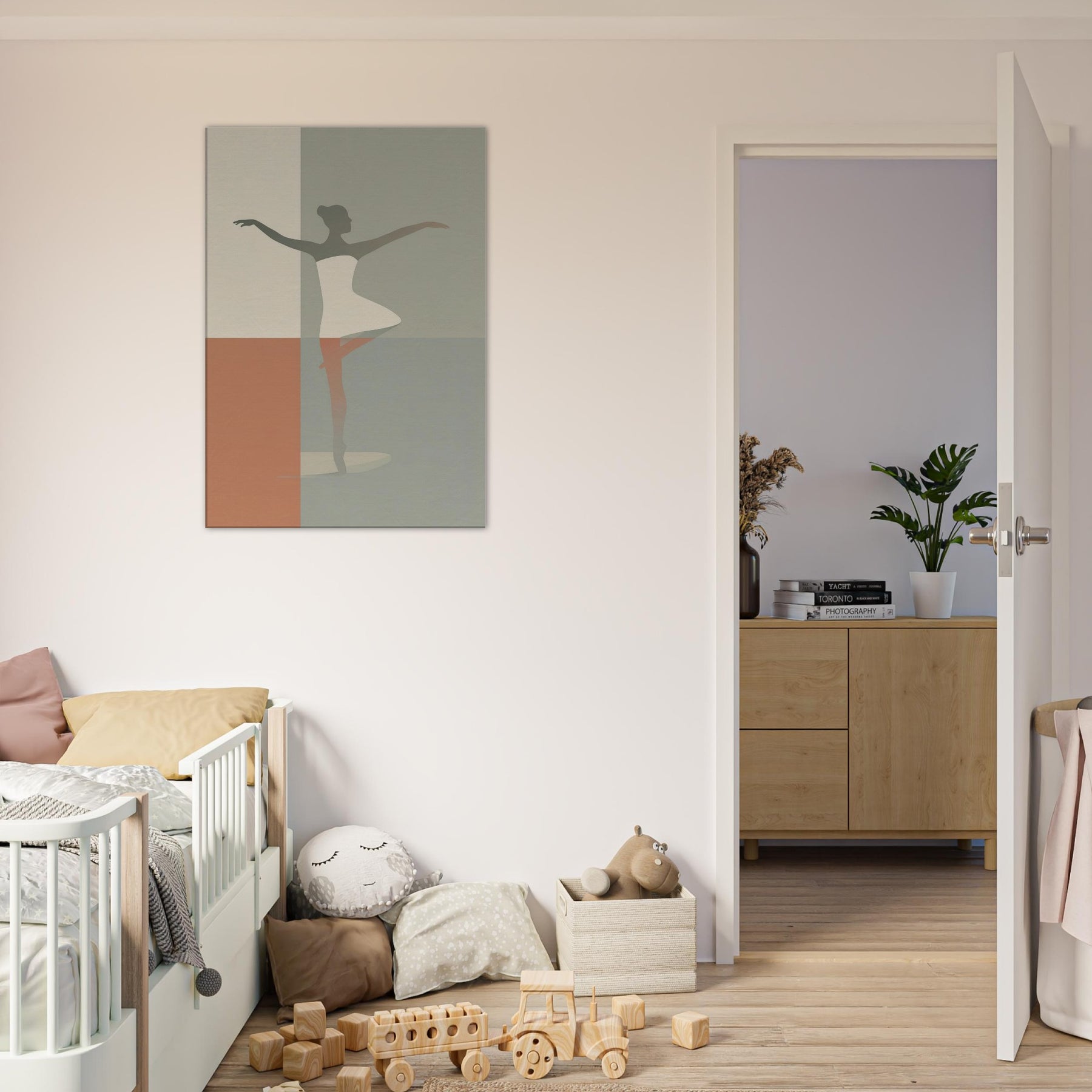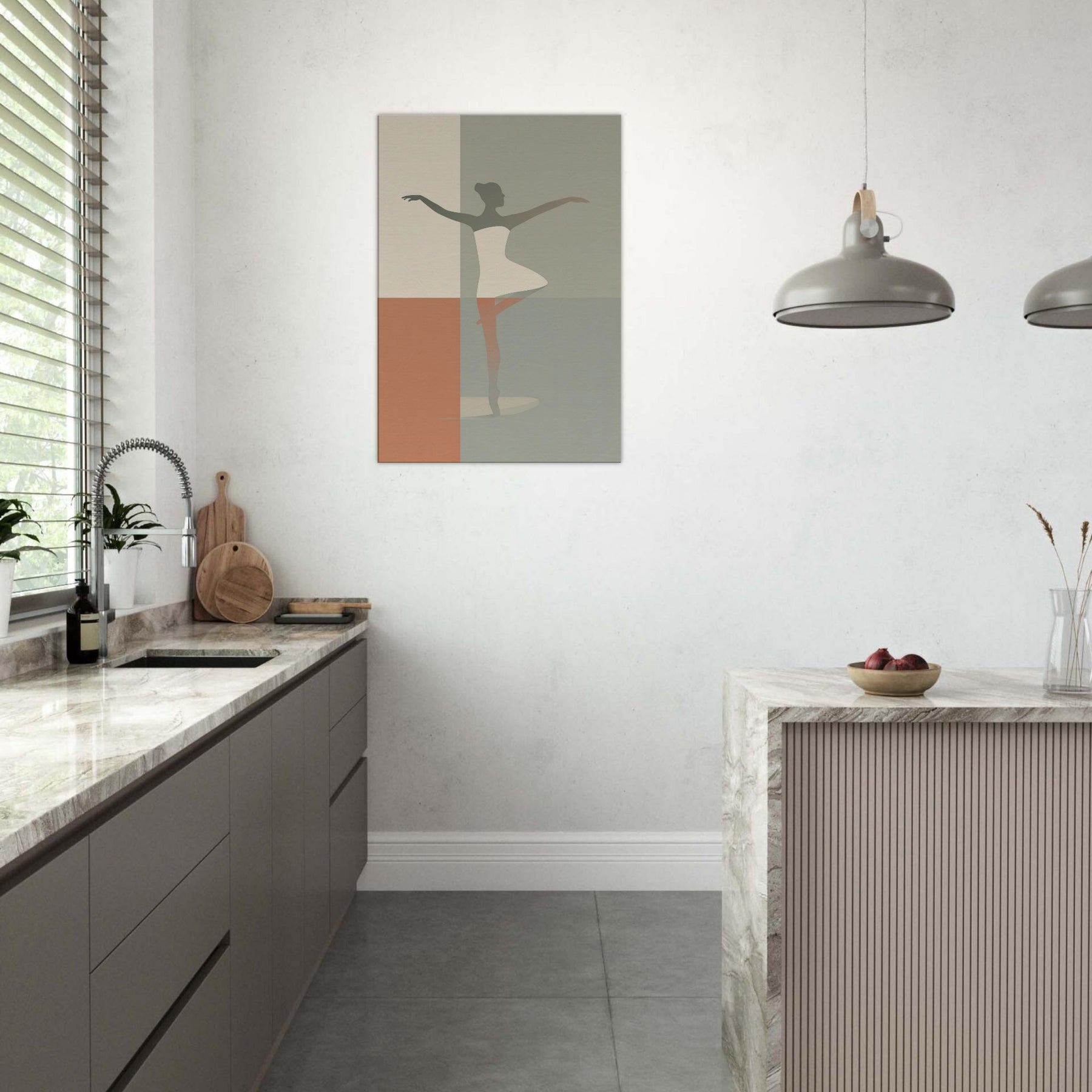 Suspended between color fields, this piece centers on the Primary Subject: a Ballerina Silhouette. Its minimalist contour suggests motion and grace with the quiet elegance of a single line. Soft, muted tones blend like dusk, inviting warmth into a living room or bedroom. The image radiates calm energy, transforming walls into a stage where daily moments become poetry. Hang it where light lingers the silhouette shifts with the day, offering a timeless invitation to breathe, center, and move with intention.