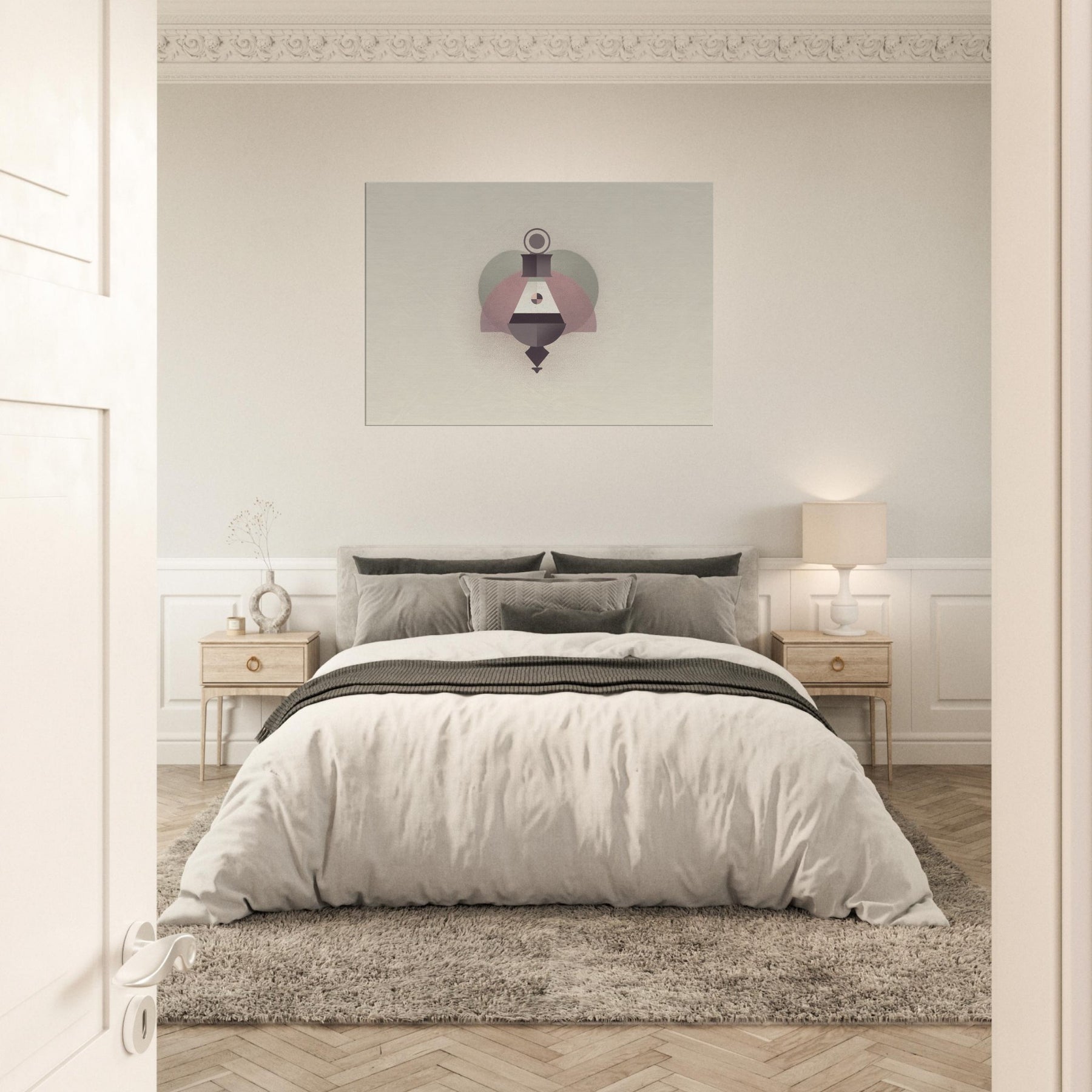 Pendulum (Divination) sways into your room with a quiet, reassuring rhythm. This minimalist study of balance releases a soft, earthy palette that deepens mood and focus, turning walls into a sanctuary. The geometric forms feel ceremonial yet intimate, inviting a mindful pause beside a lamp or in the hallway. Hung where light rests, it elevates the atmosphere mystical, serene, and effortlessly chic so daily rituals become small, beautiful rituals of calm.