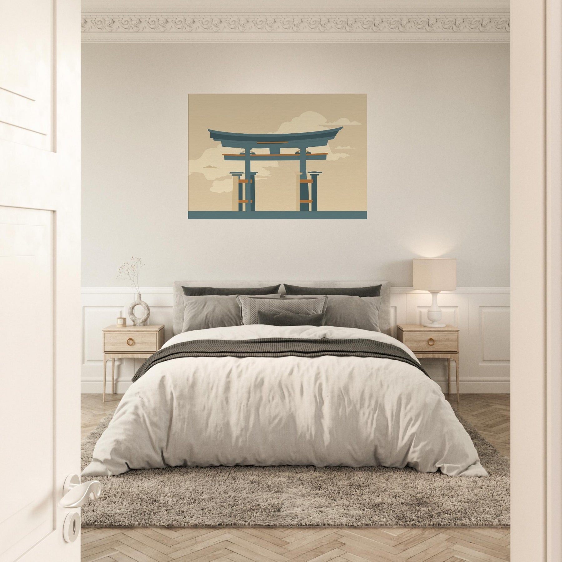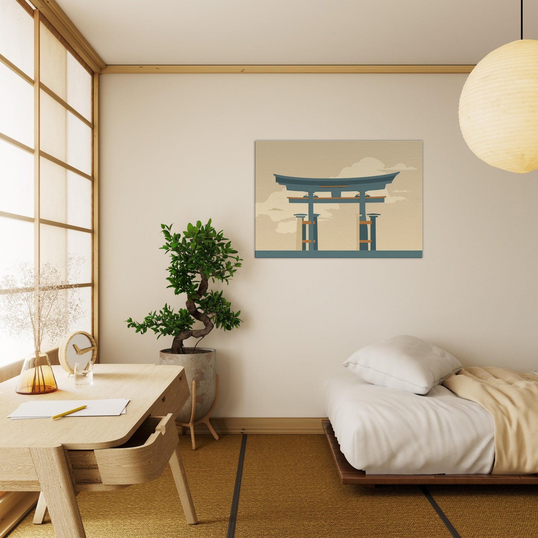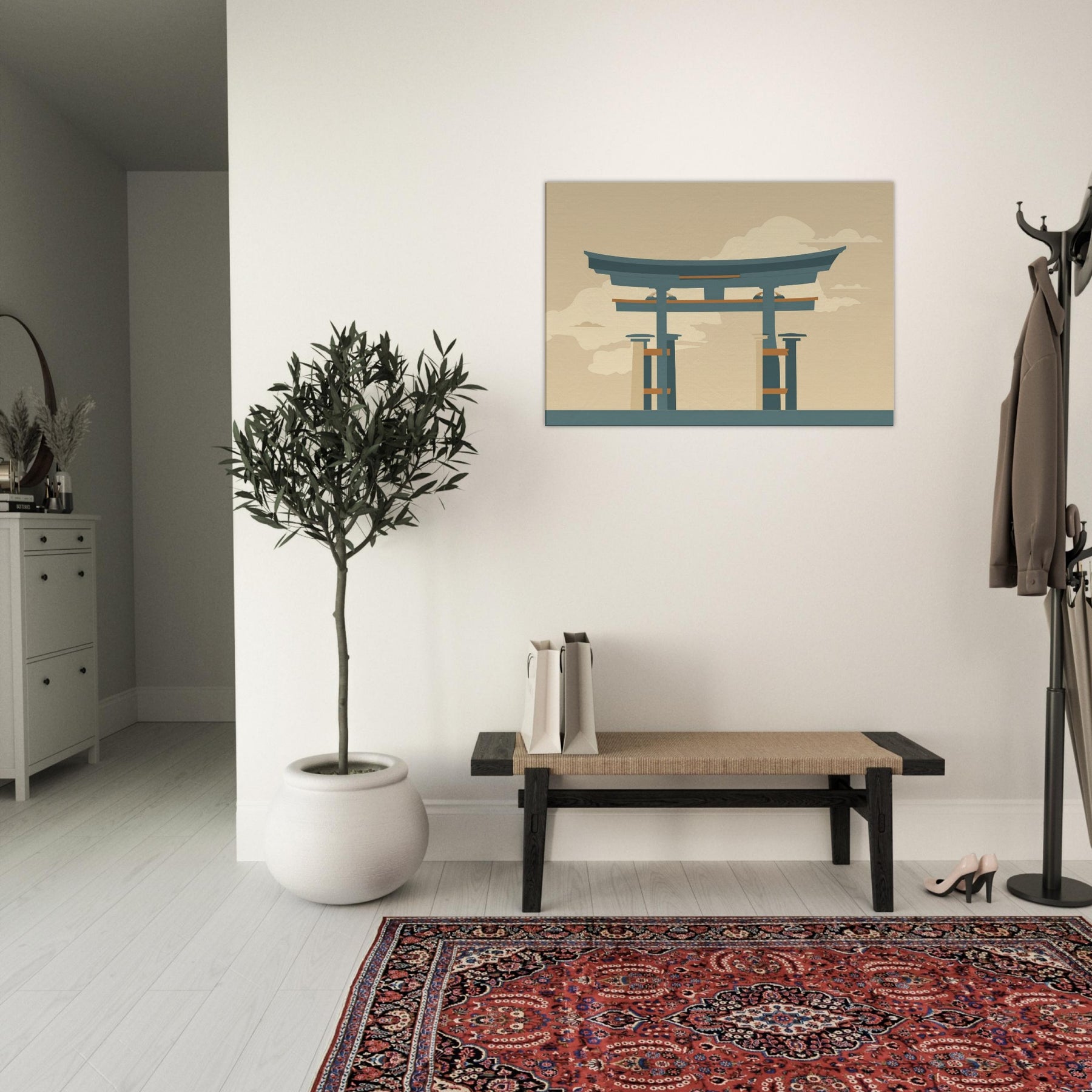 An exercise in restraint, this minimalist Torii Gate invites the eye to drift along clean planes and gentle shadows. The architecture stands against a warm, sunlit backdrop, where lines dissolve into calm horizons and clouds curl like breath. In a living space, it becomes a doorway to stillness a focal point that evokes distant shores, Tokyo dusk, and the feeling of walking into a serene, ceremonial space. The composition balances monumentality with tenderness, transforming a splash of color into quiet ritual and everyday grace.