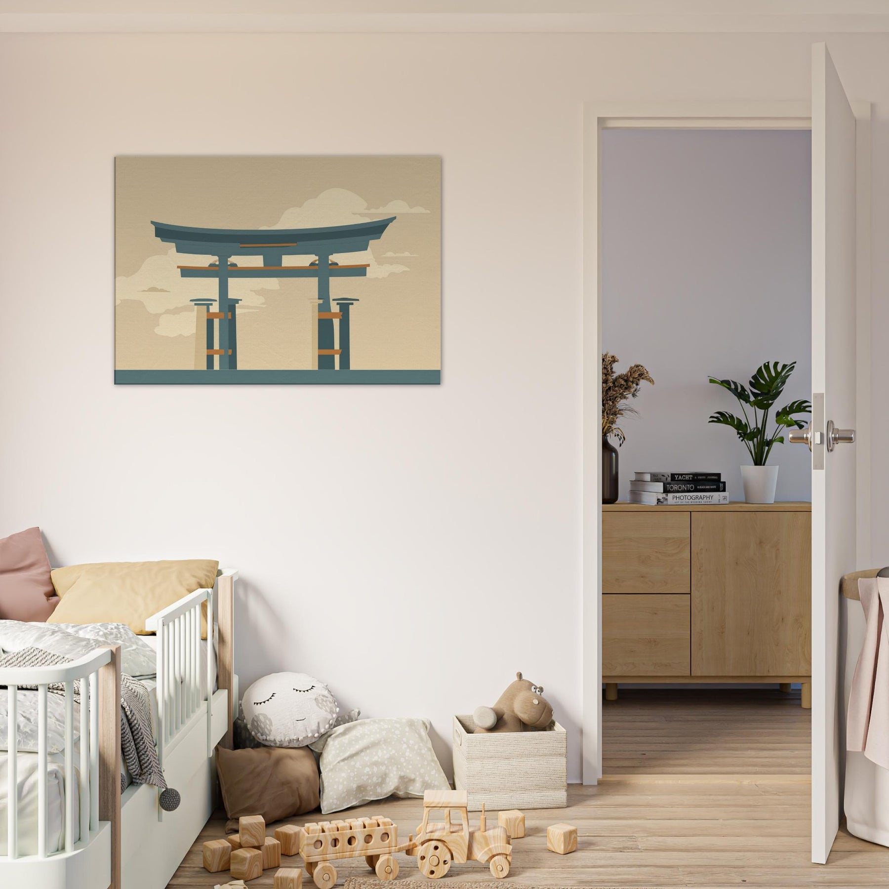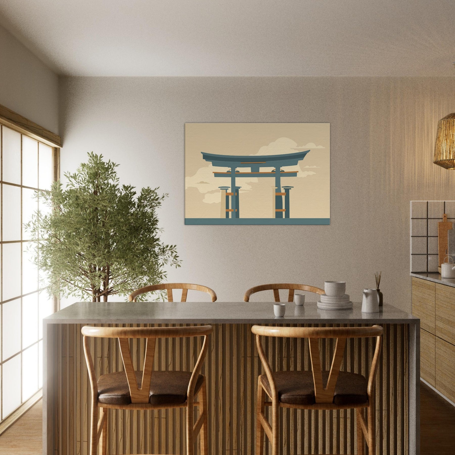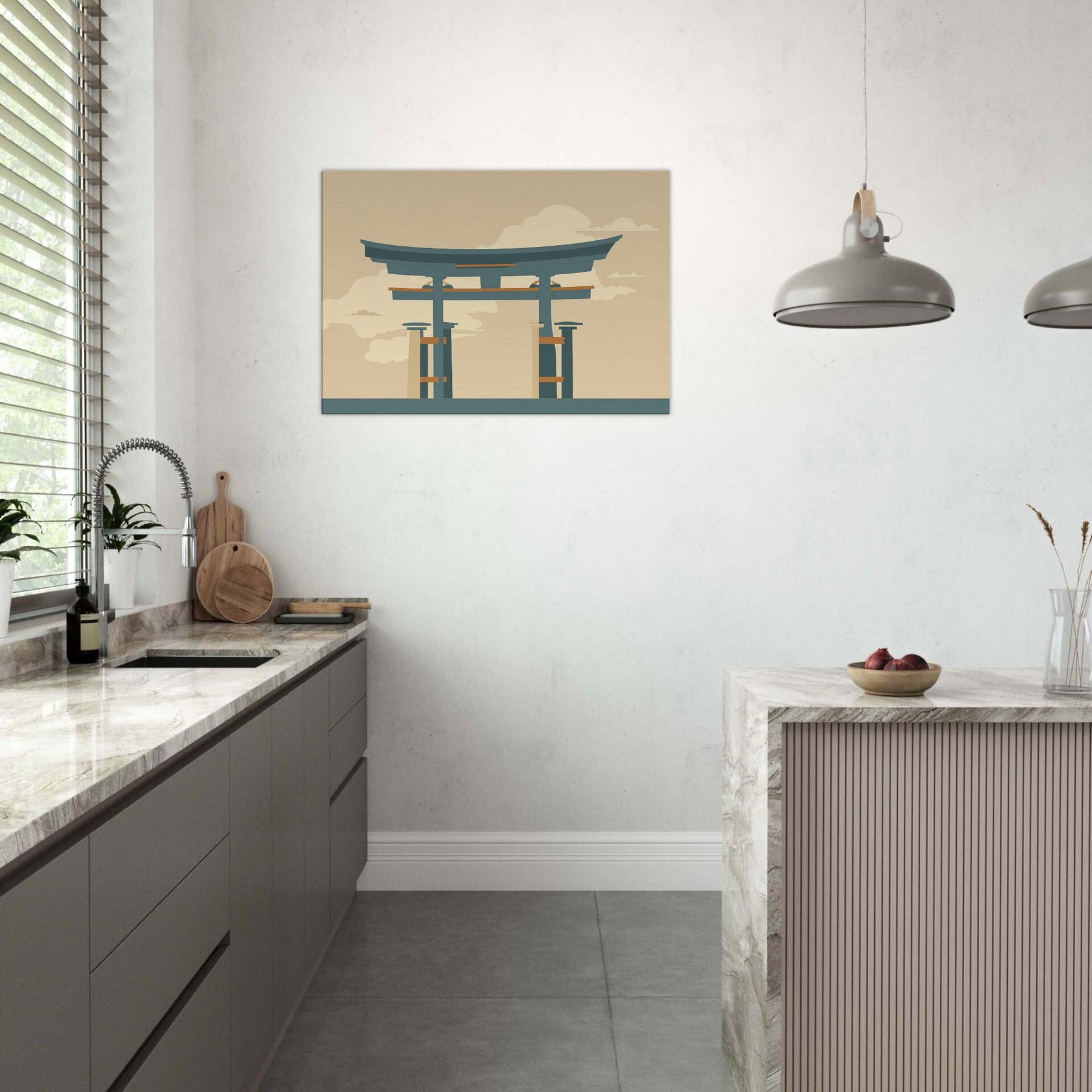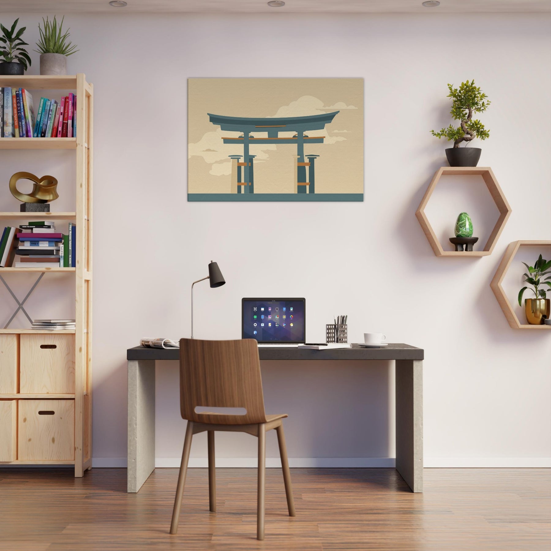 An exercise in restraint, this minimalist Torii Gate invites the eye to drift along clean planes and gentle shadows. The architecture stands against a warm, sunlit backdrop, where lines dissolve into calm horizons and clouds curl like breath. In a living space, it becomes a doorway to stillness a focal point that evokes distant shores, Tokyo dusk, and the feeling of walking into a serene, ceremonial space. The composition balances monumentality with tenderness, transforming a splash of color into quiet ritual and everyday grace.
