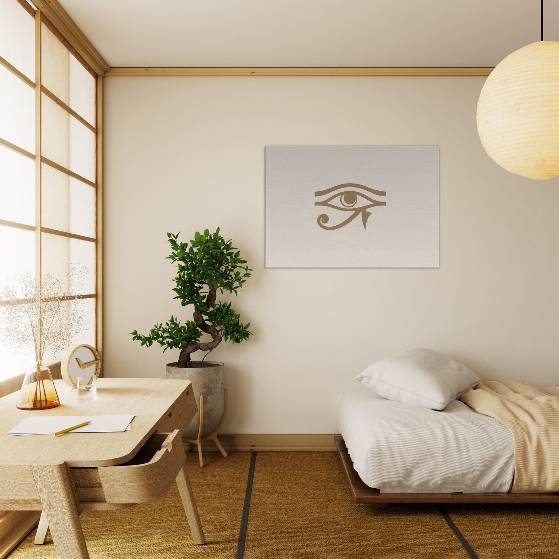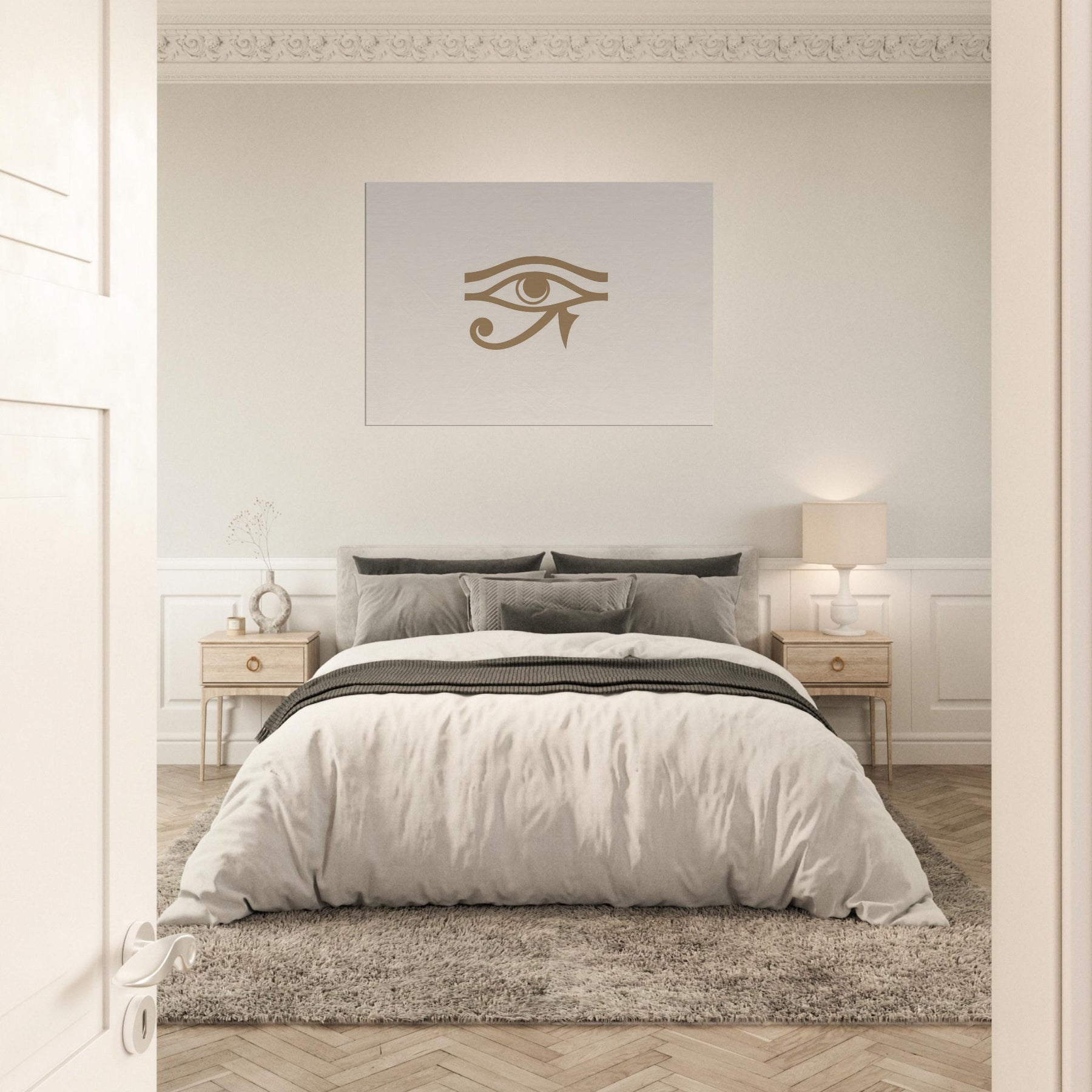 Rendered as a single, flowing line, the Eye of Horus becomes a quiet talisman for the modern home. The warm ochre silhouette rests on a soft beige field, inviting a calm, meditative mood and a subtle sense of protective resonance. Hang it where light moves across walls, and watch the room breathe shadows deepen, textures soften. This minimalist study elevates everyday spaces into a sanctuary of clarity, intention, and ancient mystery.