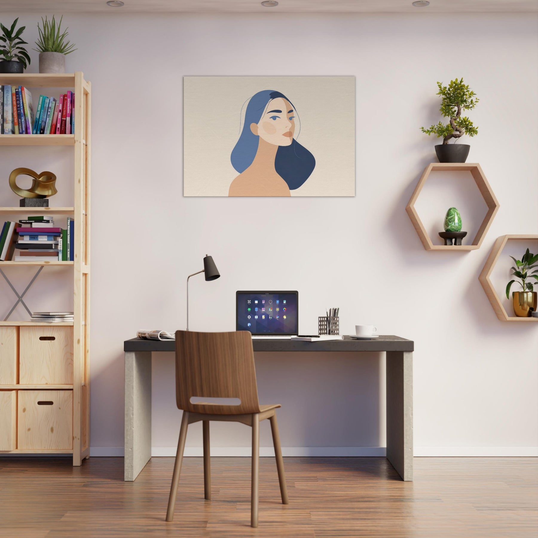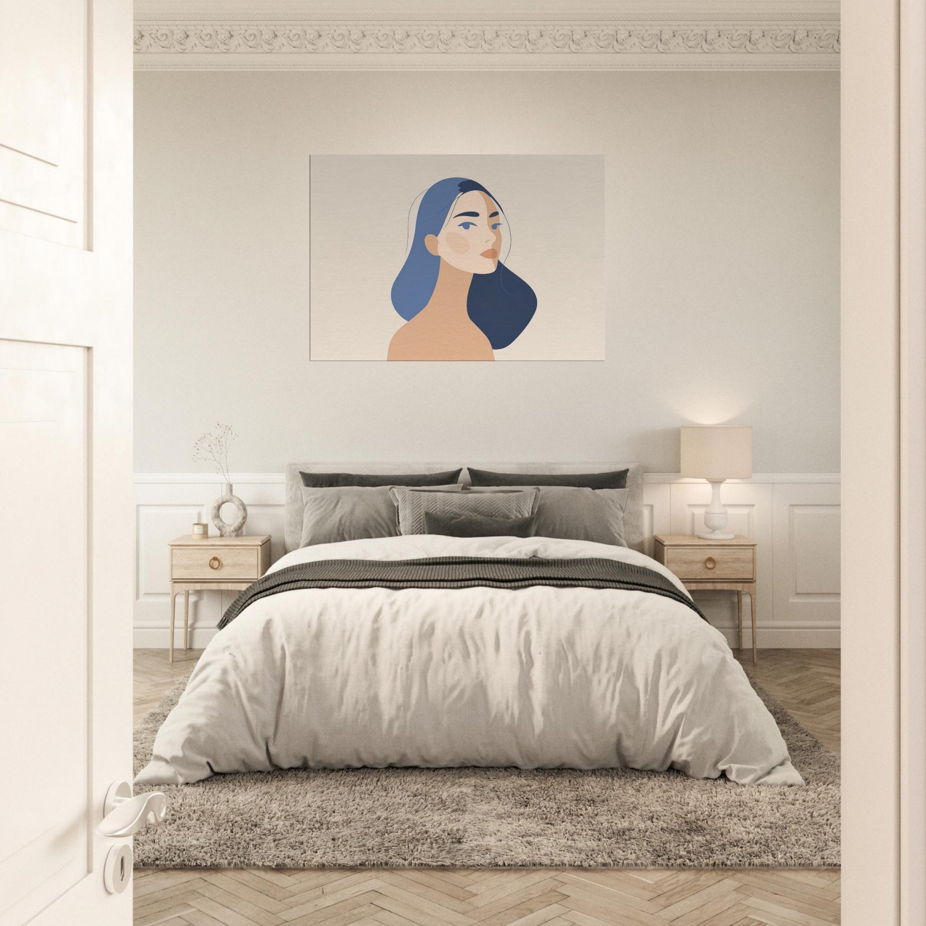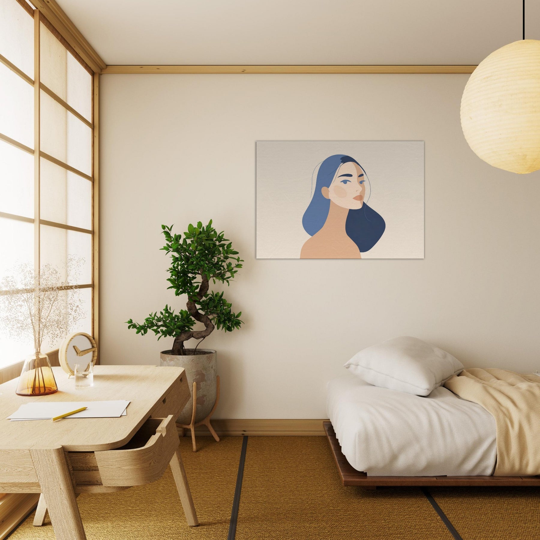 European Woman unfolds in quiet, sculptural minimalism that feels modern and timeless. The soft peach skin tones meet cool blues in graceful, uninterrupted curves, giving the gaze a poised, introspective aura. Perfect for a living room, bedroom, or hallway, this piece brings calm, ambient warmth and a touch of European chic to any wall. Its restrained composition invites contemplation, while generous negative space lets light travel through the room, making spaces feel larger and more serene.