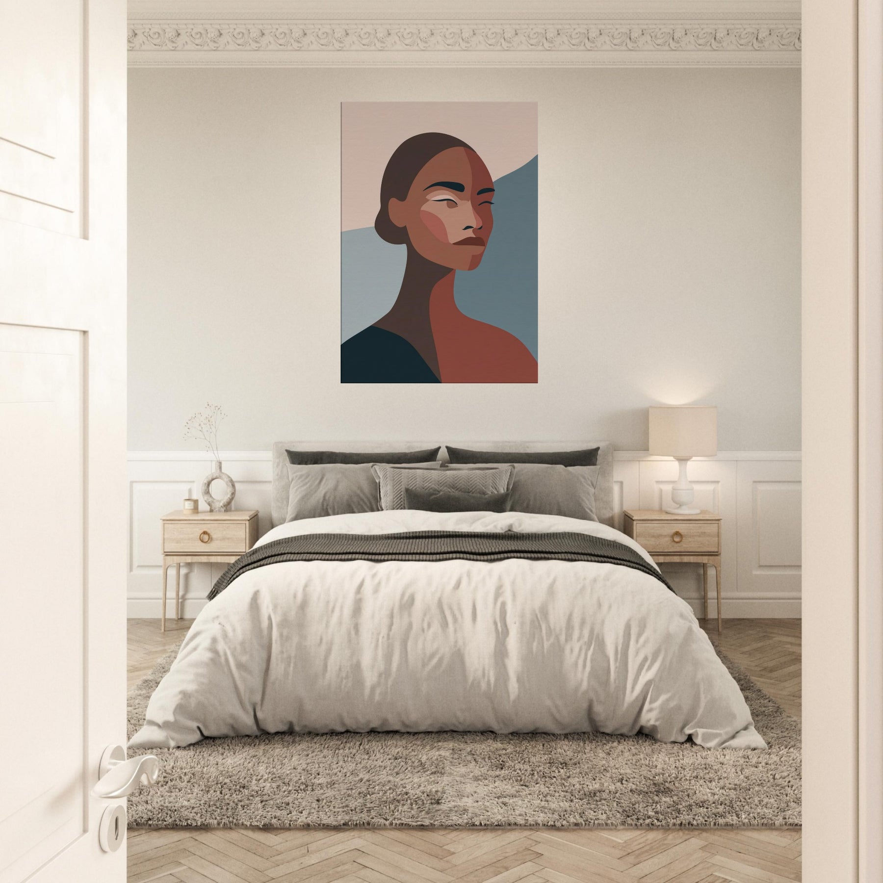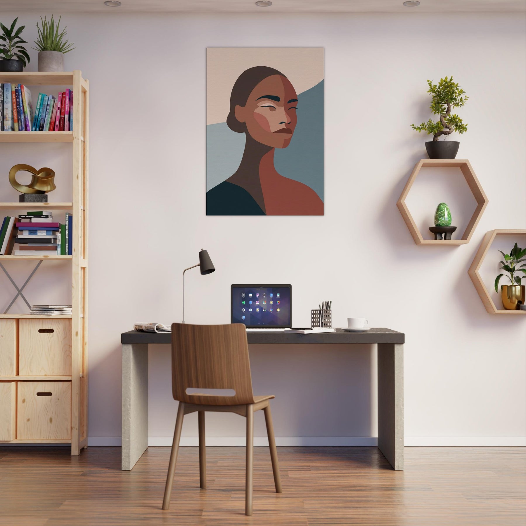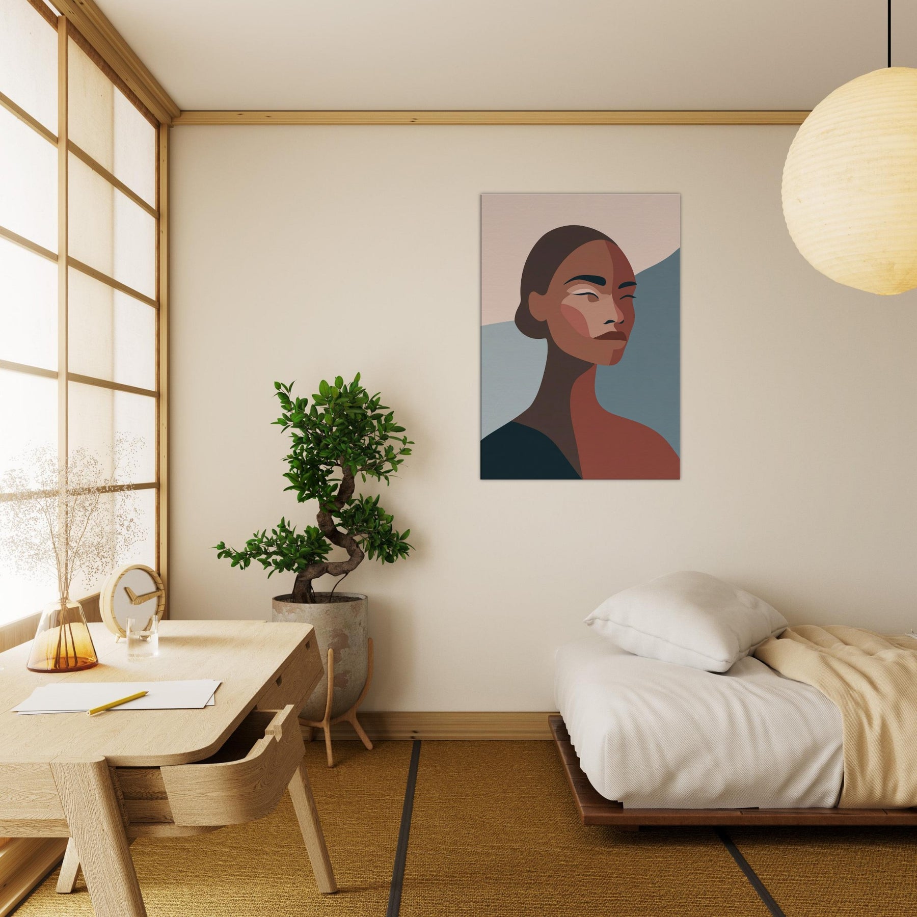 This African Woman glows with quiet confidence, yet leaves room for your own reflection. In soft, sculpted planes and warm earth tones, the composition creates a calm, sunlit mood that settles into any room. Its pared down lines invite moments, glances across a sofa, a halo of morning light on a gallery wall, a whisper of color in an otherwise neutral space. A timeless centerpiece that elevates living spaces with grace and quiet dignity.