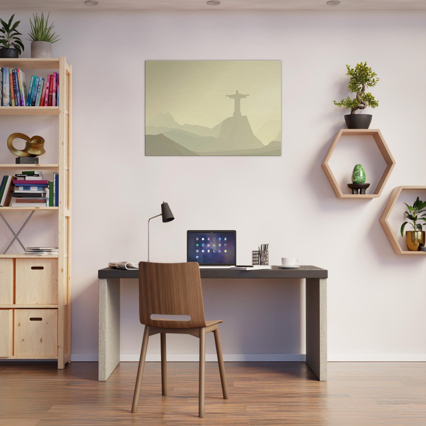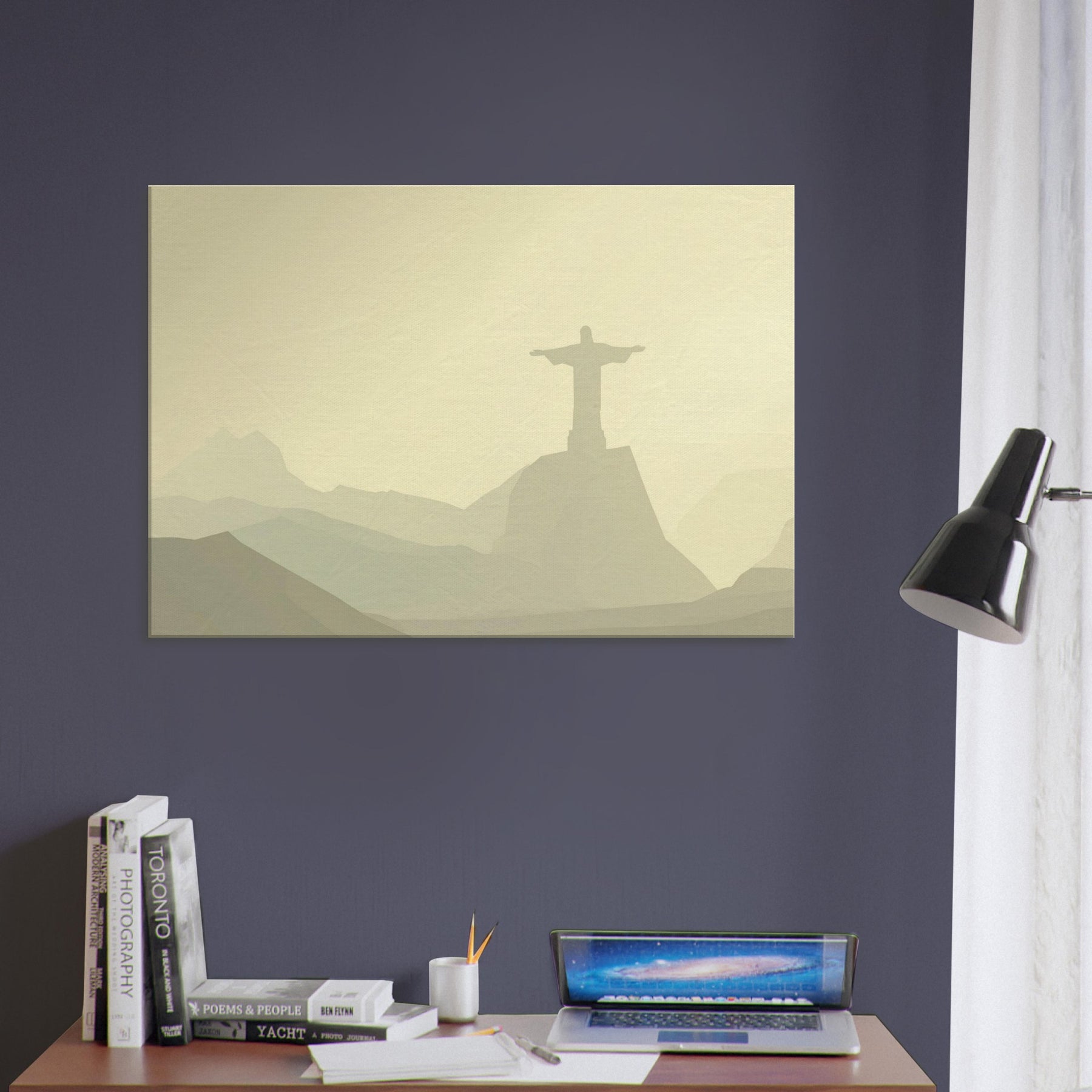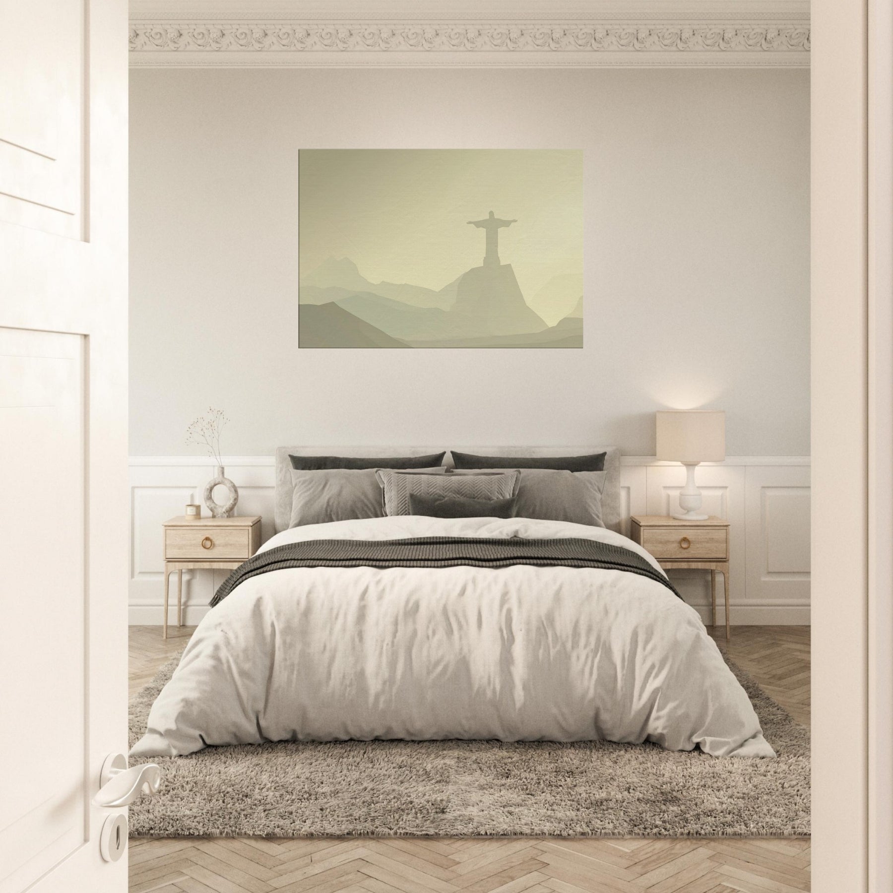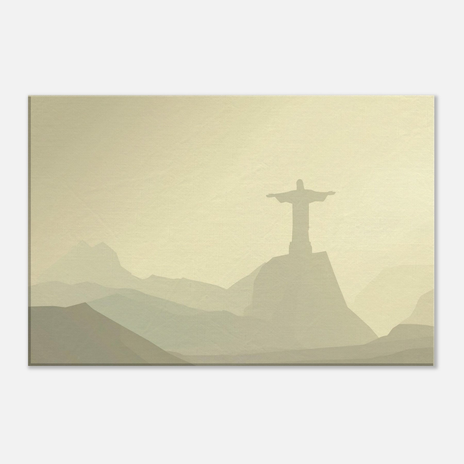 Christ the Redeemer rises in quiet abstraction, a solitary silhouette perched above a soft, sunlit valley. This minimalist composition invites contemplation, where form and light converse in tender gradients of pale gold and shadow. The generous negative space layers warmth and serenity into any room, turning a wall into a window of quiet transcendence. Let this artwork anchor a living space with timeless presence an invitation to pause, breathe, and imagine horizons that stretch beyond the everyday.