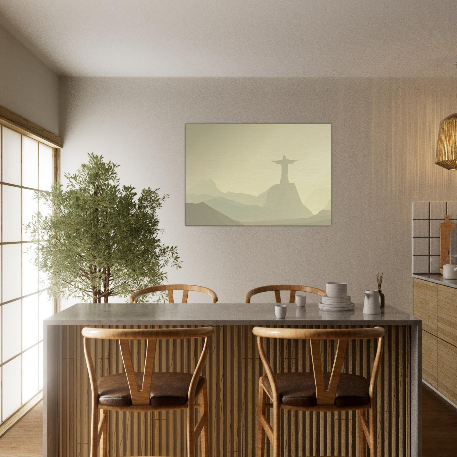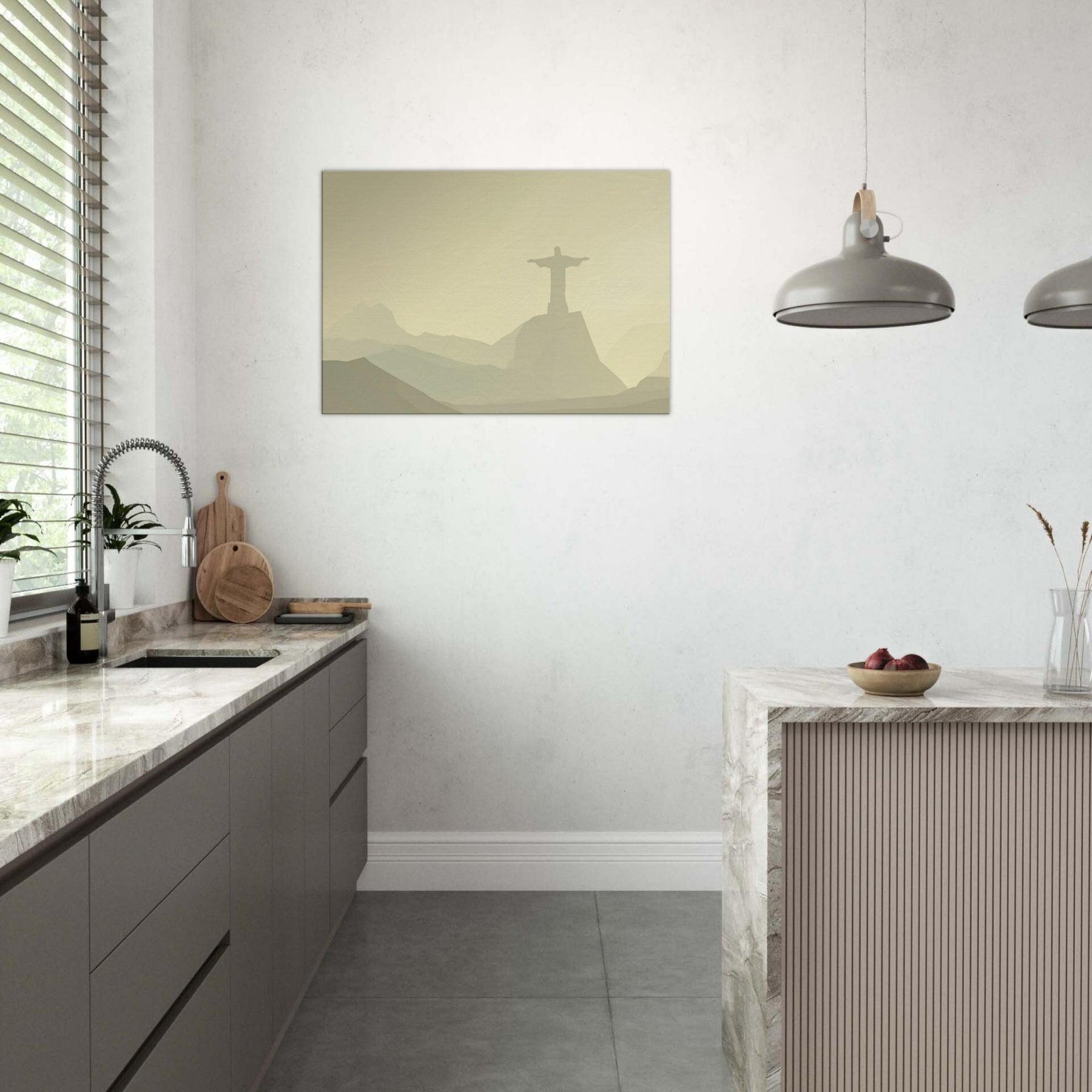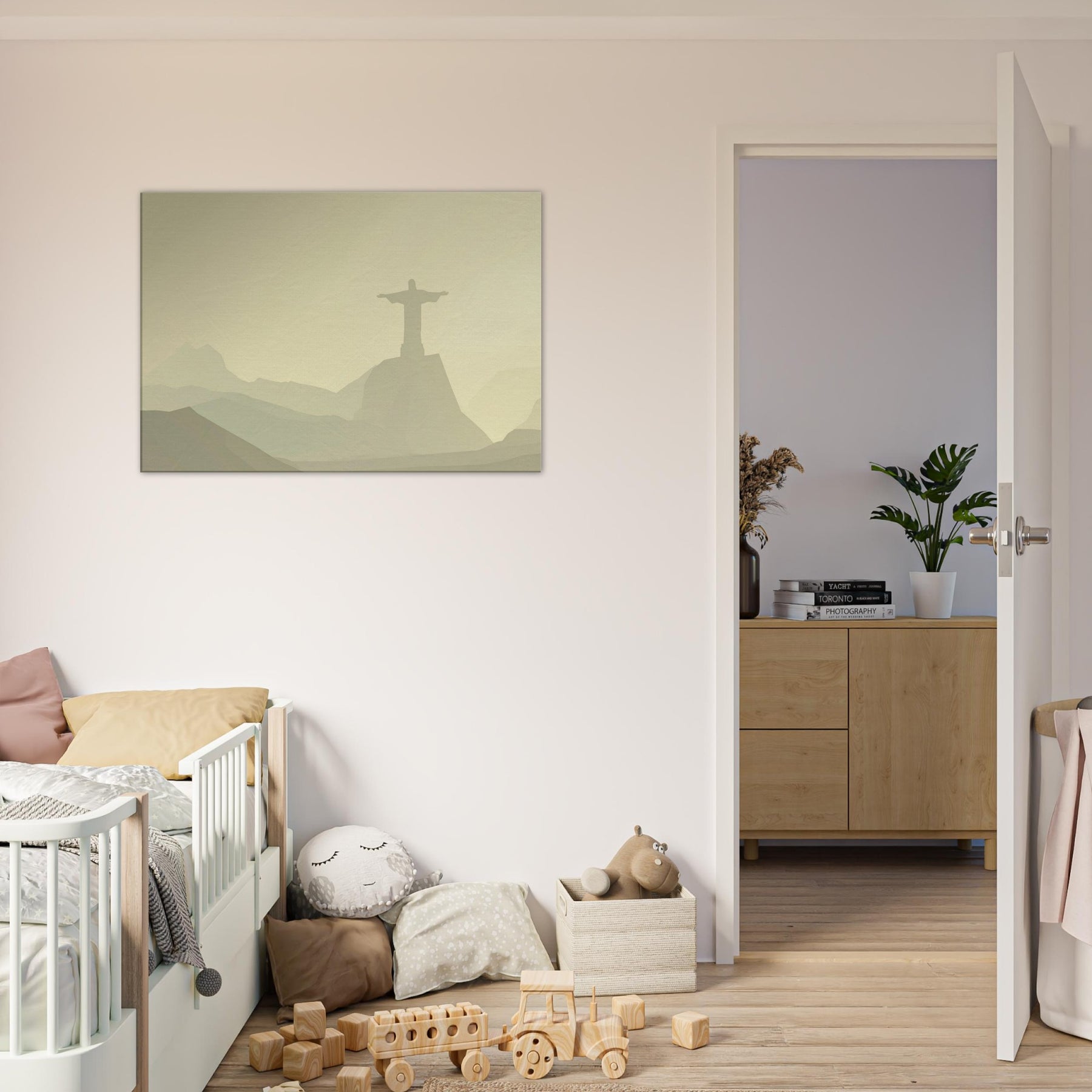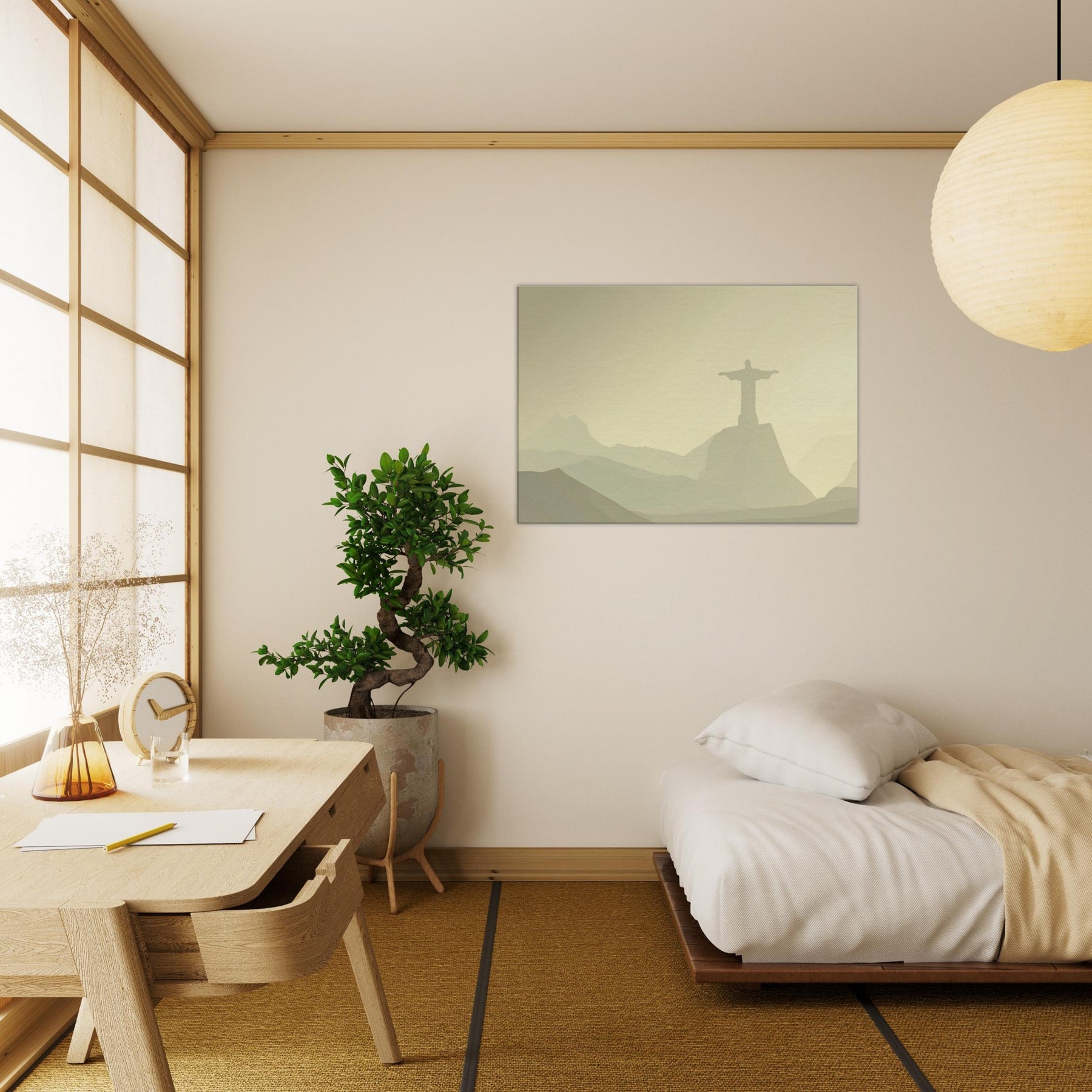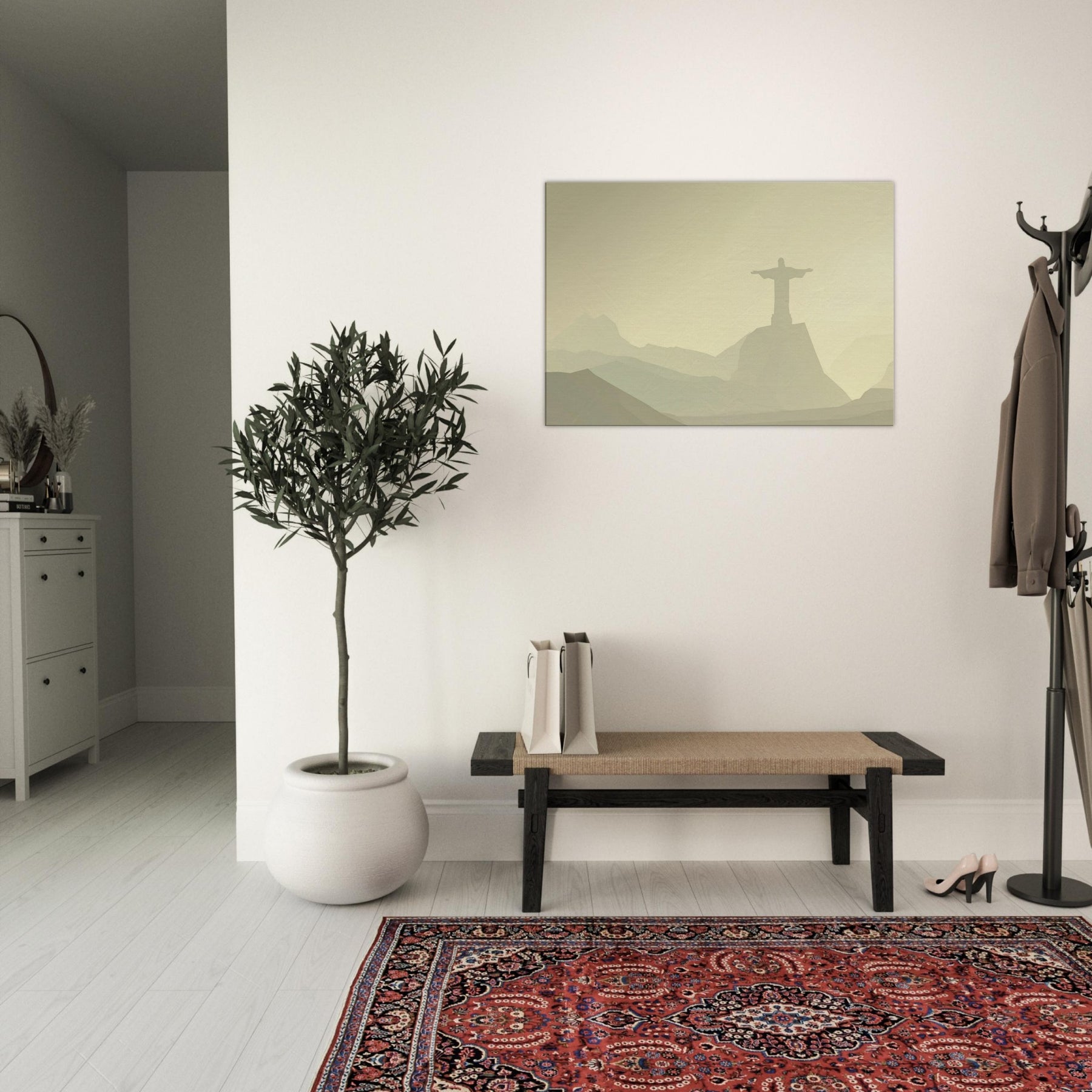Christ the Redeemer rises in quiet abstraction, a solitary silhouette perched above a soft, sunlit valley. This minimalist composition invites contemplation, where form and light converse in tender gradients of pale gold and shadow. The generous negative space layers warmth and serenity into any room, turning a wall into a window of quiet transcendence. Let this artwork anchor a living space with timeless presence an invitation to pause, breathe, and imagine horizons that stretch beyond the everyday.