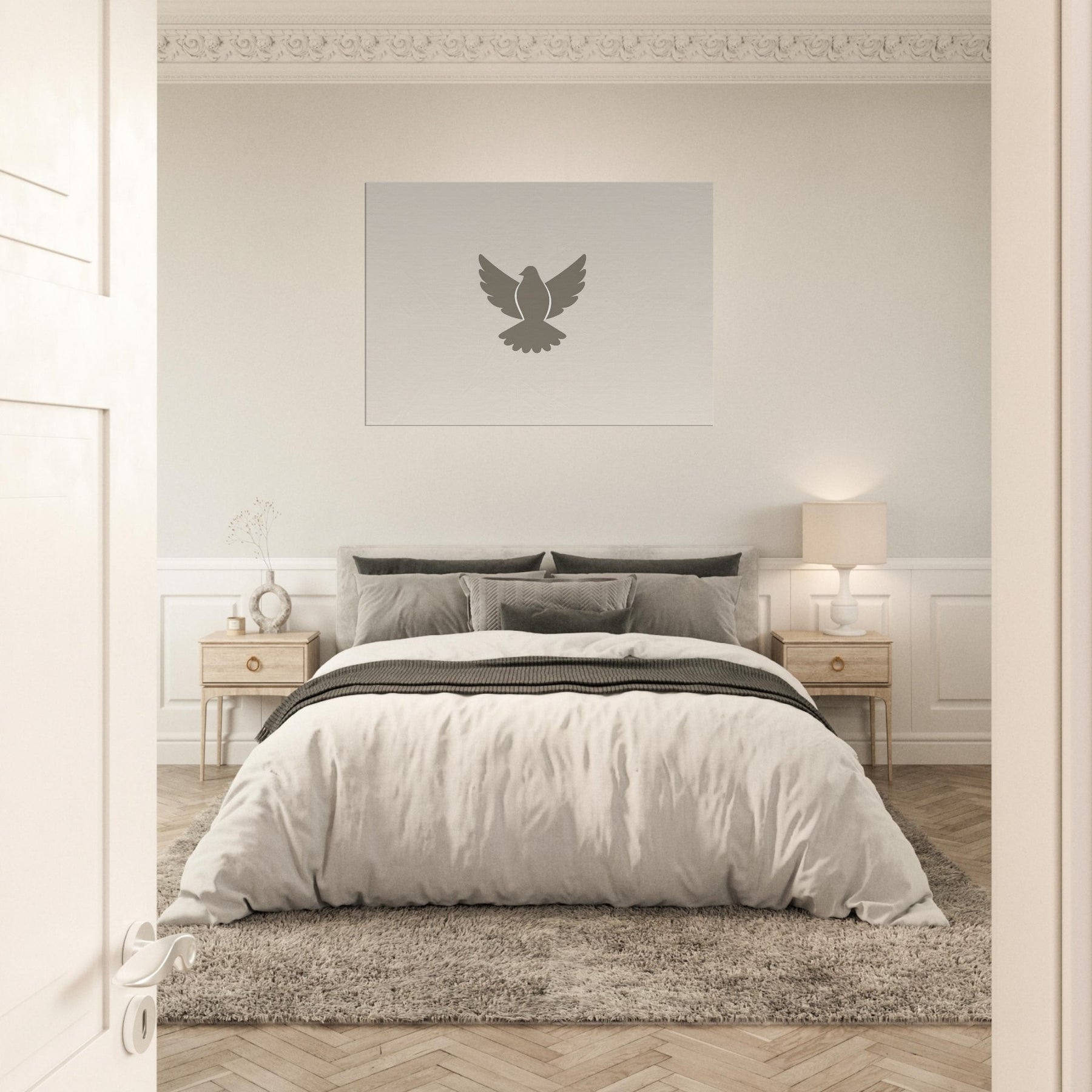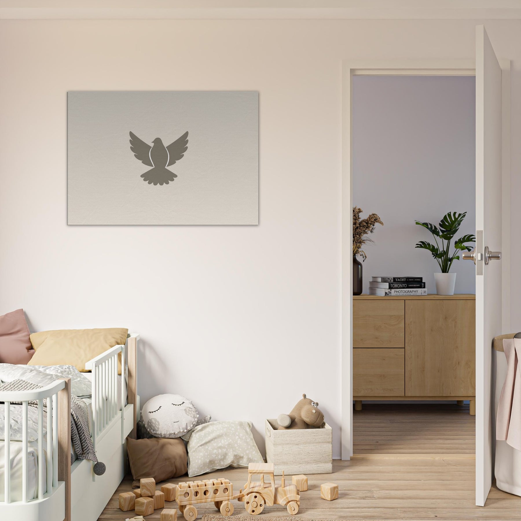 In this minimalist serenade, the primary subject, the Dove of Peace, unfolds with quiet gravity against a warm, pale field. The restrained form hums with grace soft edges, a tender silhouette, a subtle glow that invites breath and reflection. Hang it in a corner or above a sofa to slow the room’s pace, casting a tranquil presence over conversations and mornings. It is a talisman of calm, a mystical emblem that transforms walls into a sanctuary of restraint and hope.
