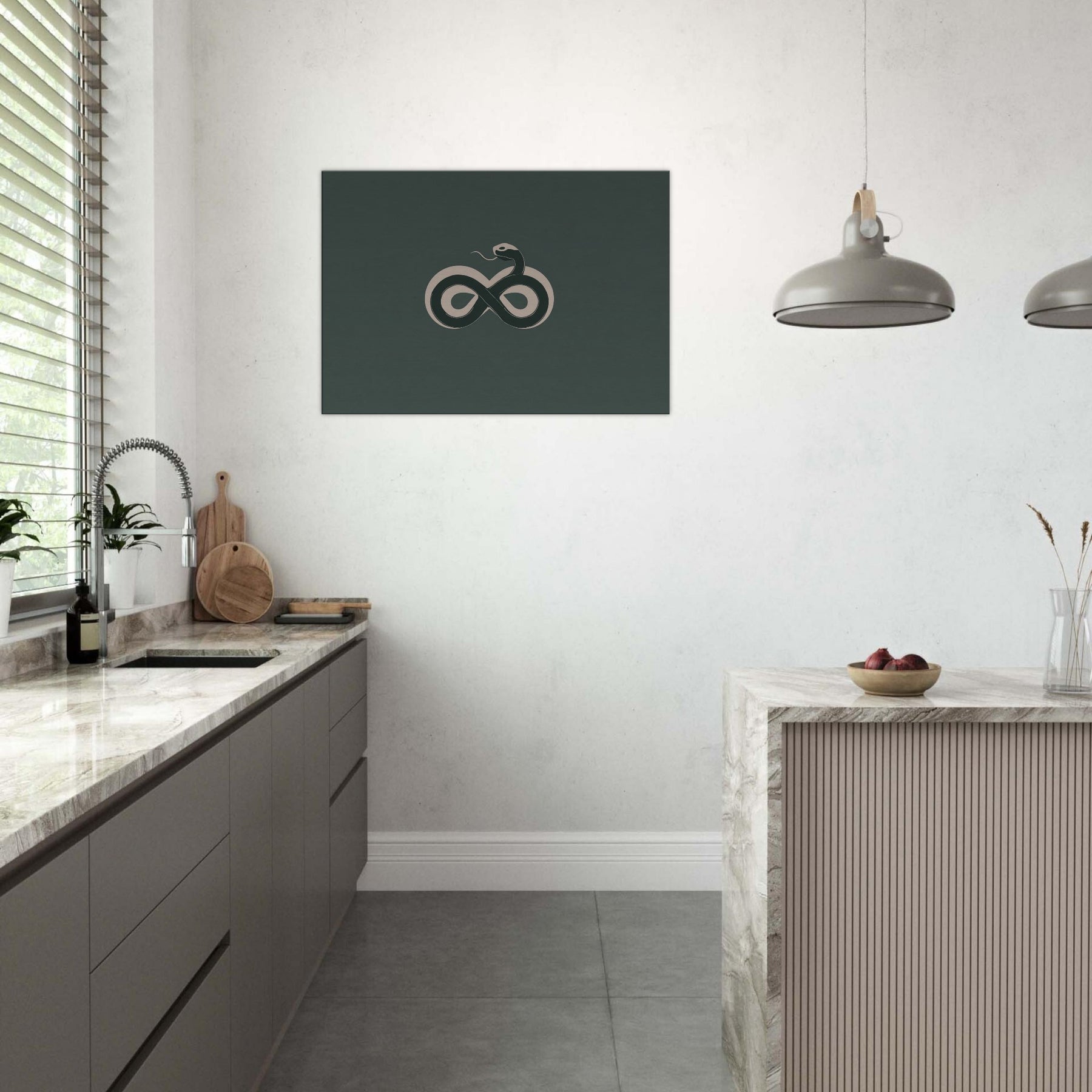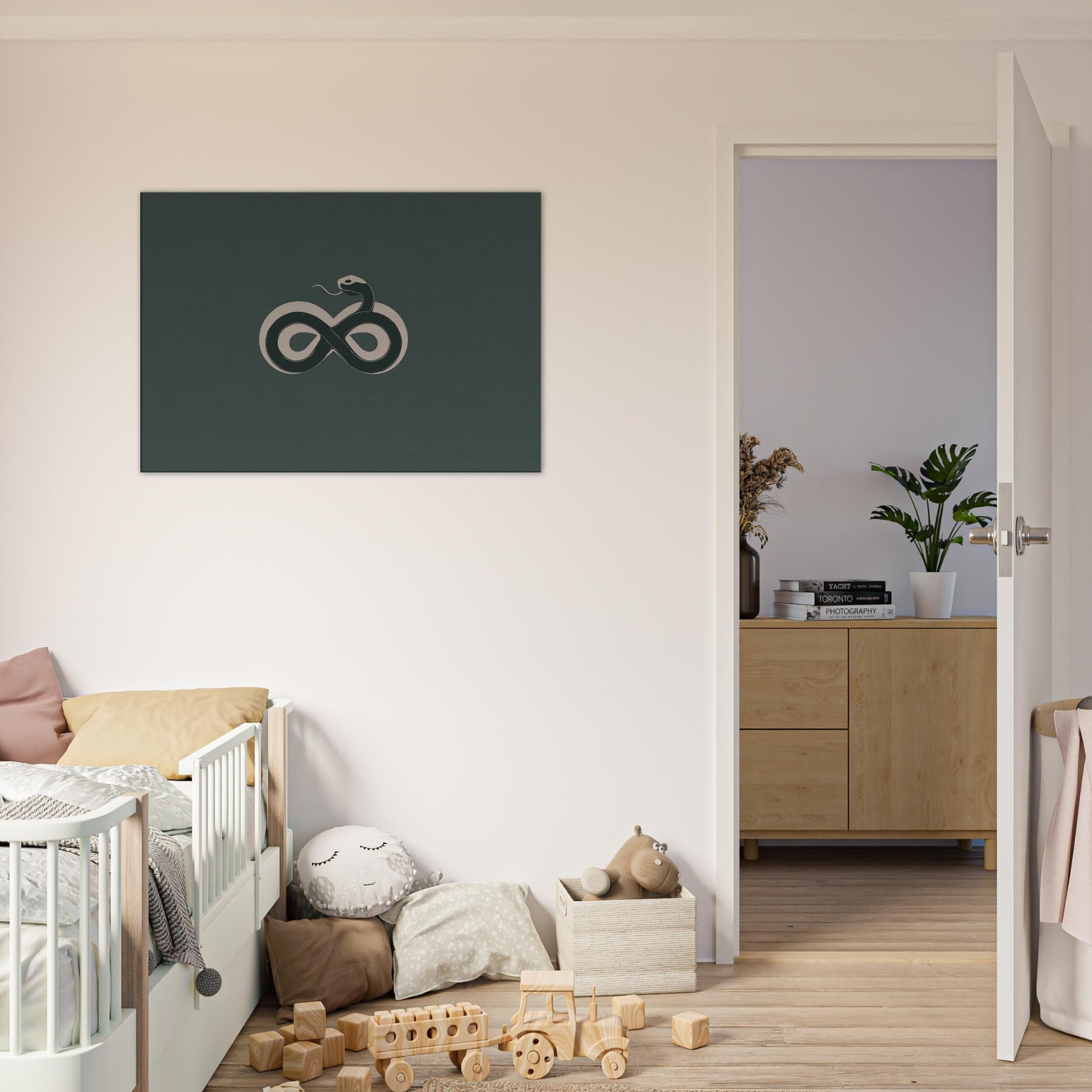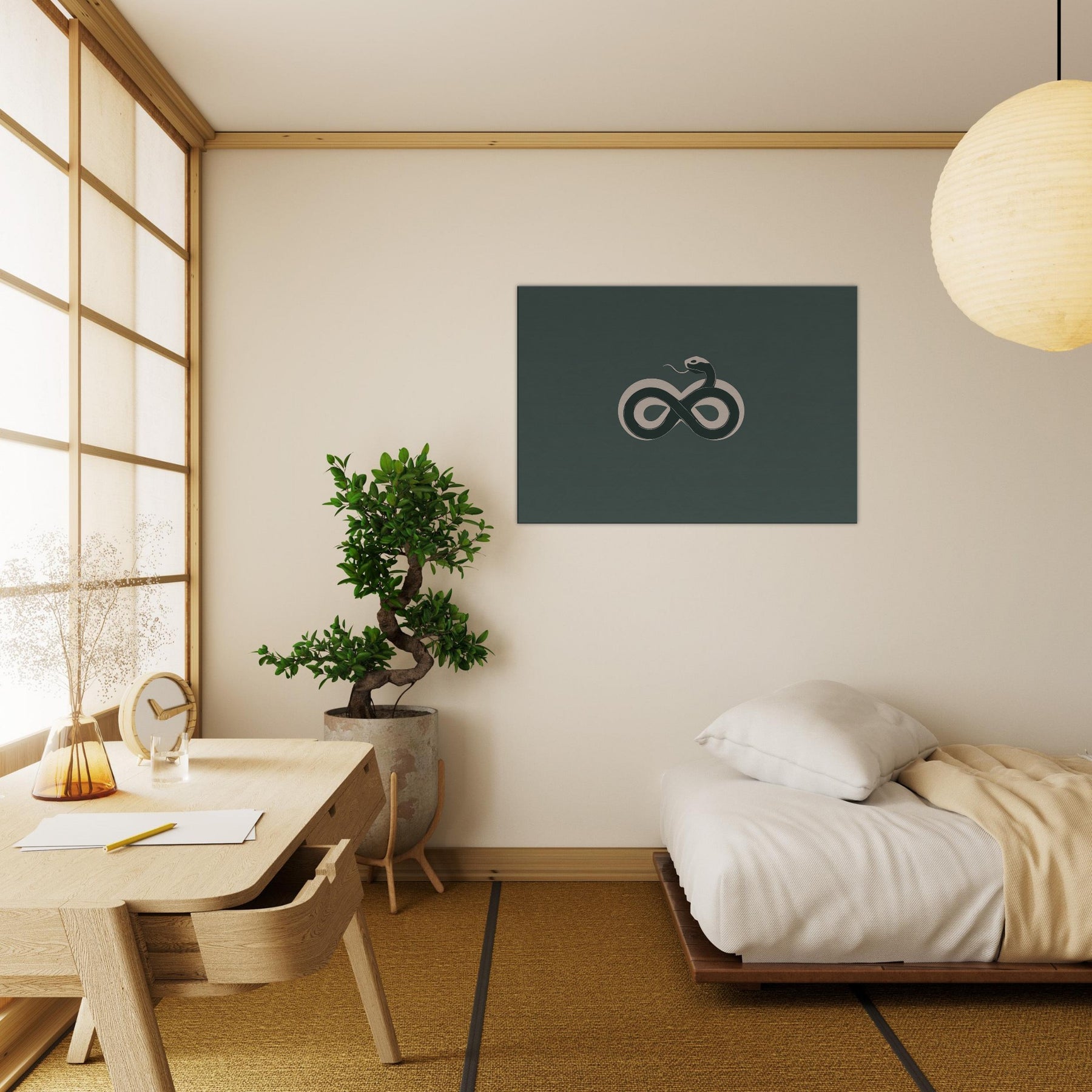 Immerse your space in a whisper of motion with the Infinity Serpent. A single, unbroken line loops into a gentle figure eight, suggesting eternity and renewal. Against a muted backdrop, the delicate contrast invites quiet contemplation, turning walls into a serene horizon where mysticism meets modern restraint. Perfect above a sofa or reading nook, it softens angles, invites calm, and harmonizes with warm woods and soft textiles.