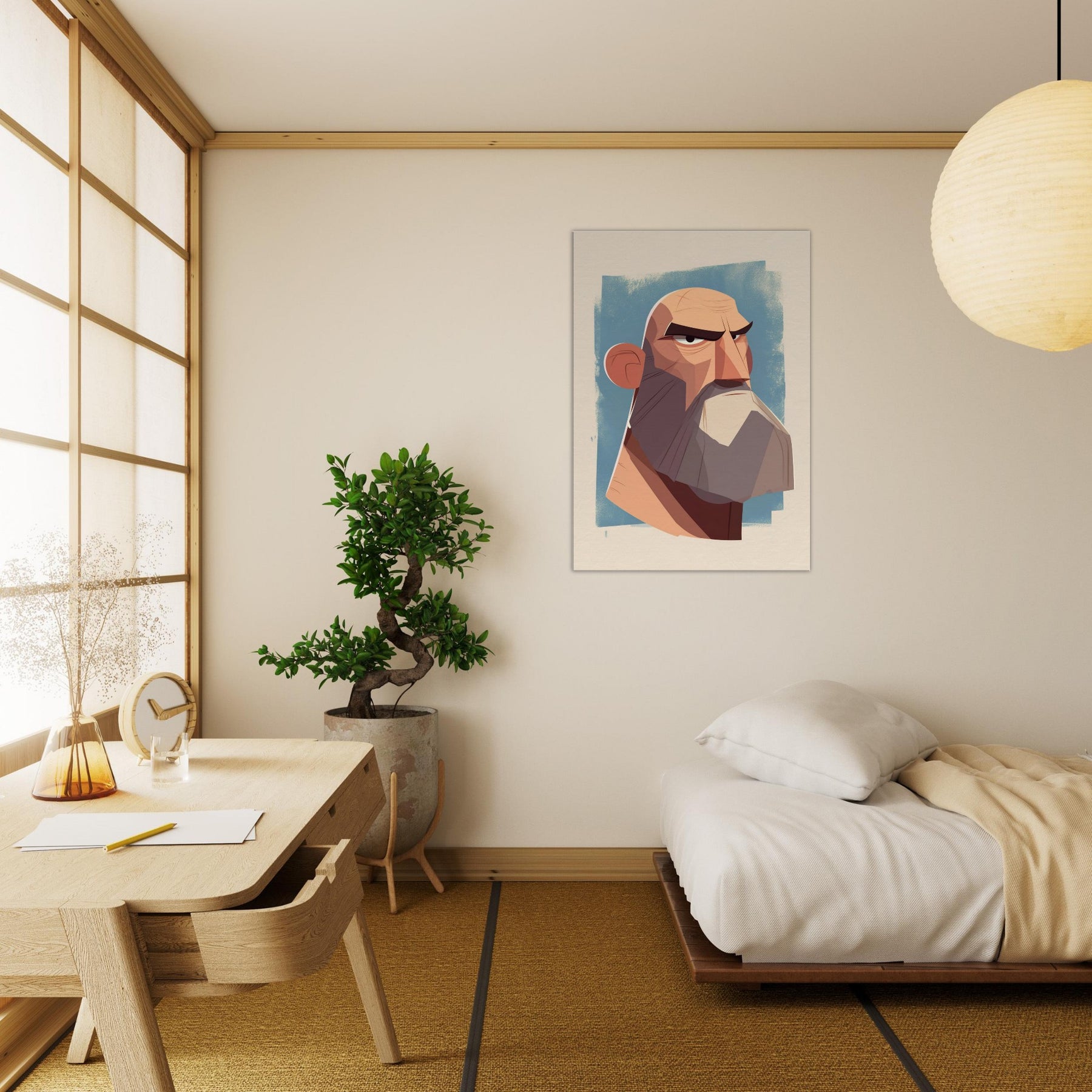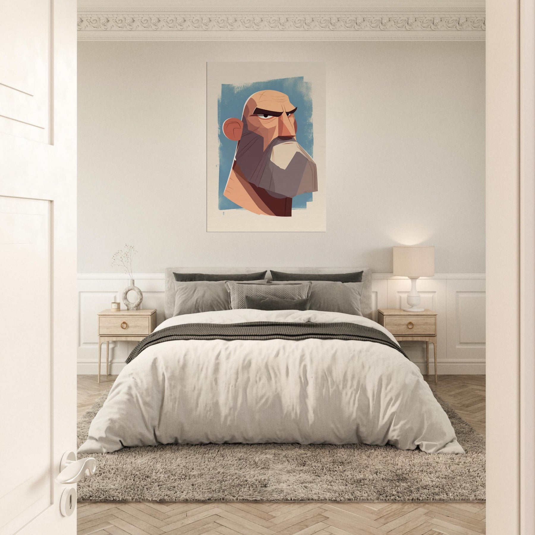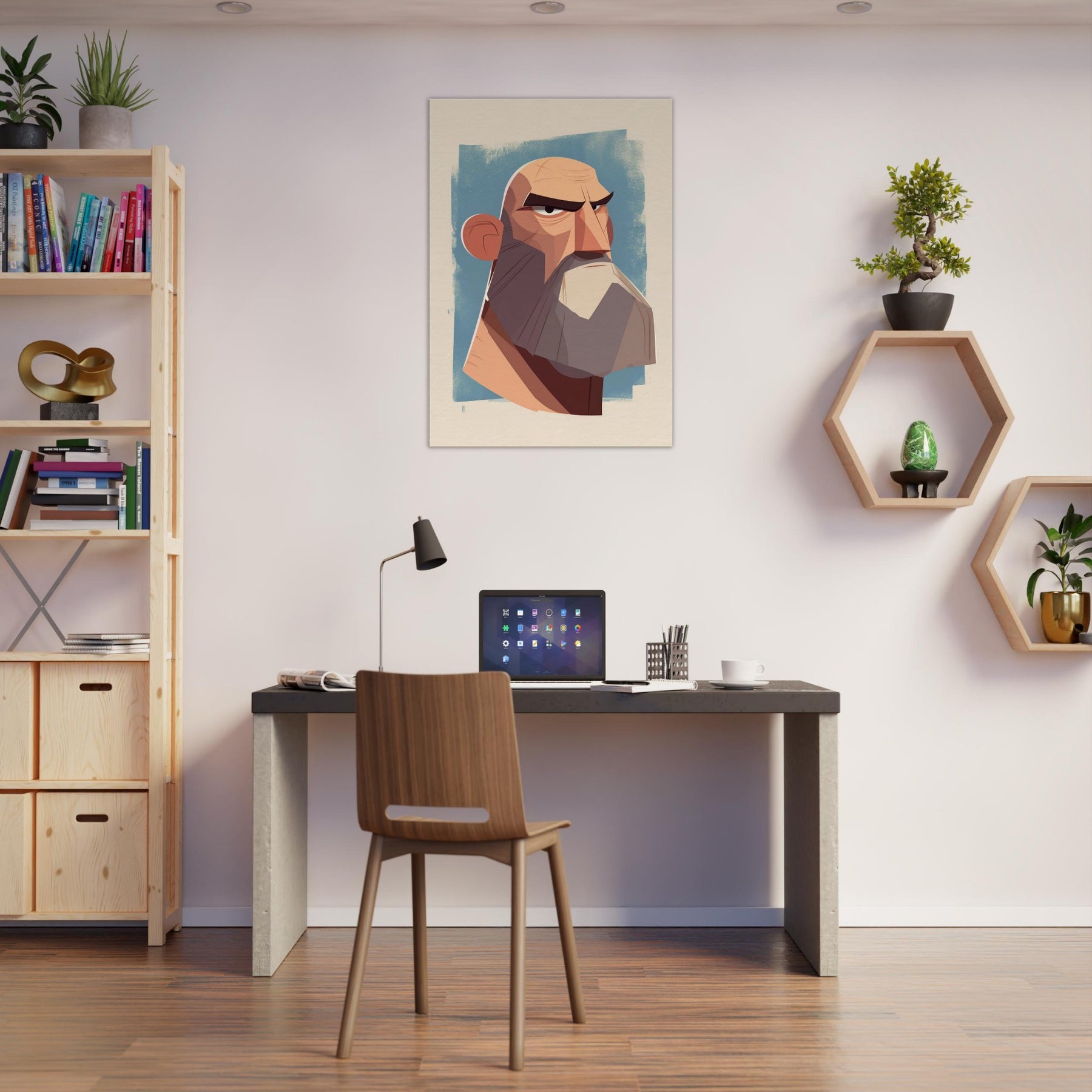 An arresting Male emerges in sculpted planes and warm earth tones, a bearded, tribal, bald presence captured in minimalist geometry. The composition radiates quiet strength, with crisp edges that catch soft light and cast subtle shadows across a textured canvas. Its restrained palette and confident profile invite a moment of reflection, turning a wall into a calm, cinematic backdrop. Perfect for a living room or study, this artwork breathes character into everyday spaces, elevating them with modern warmth and quiet, enduring presence. The central subject is Male (Bearded, Tribal, Bald).