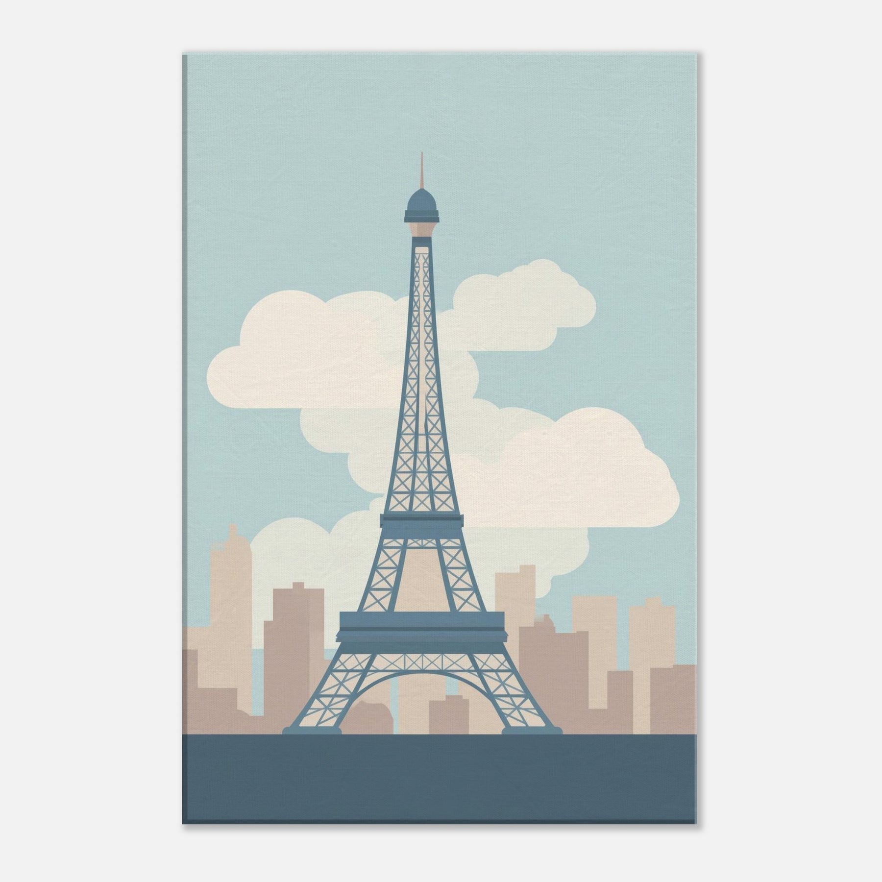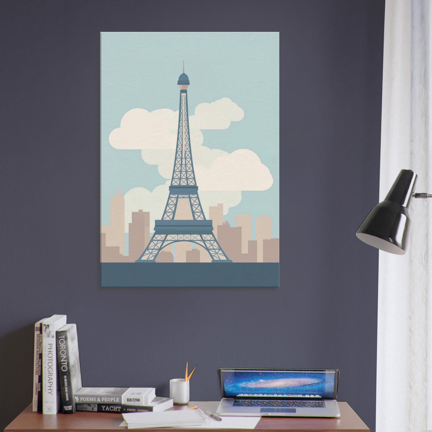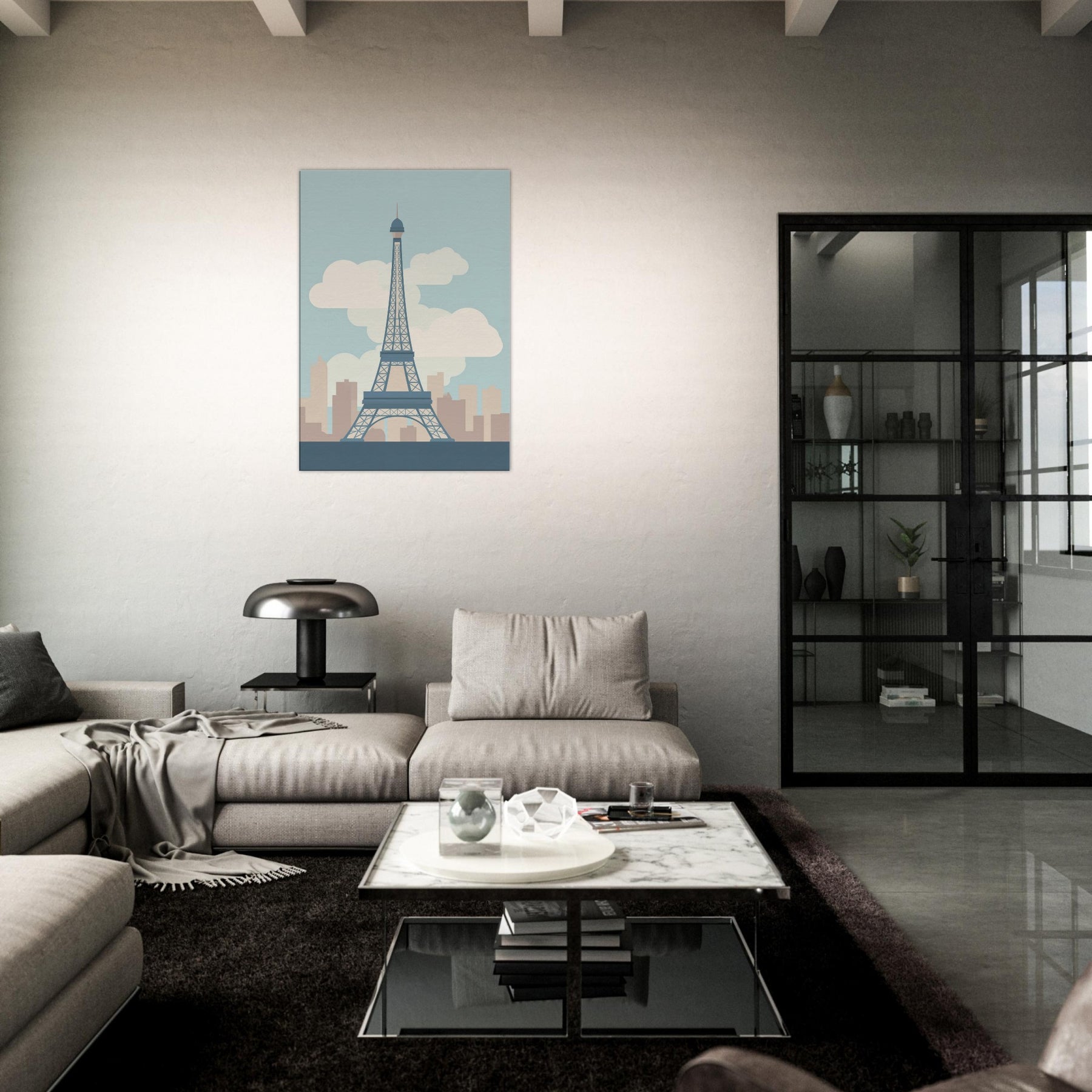 A quiet ode to light and distance, this minimalist interpretation renders the Eiffel Tower with clean lines that invite contemplation rather than detail. The soft blues and sandy neutrals create a tranquil cityscape that feels as if the dawn paused above your room. Imagine the tower peeking above a calm horizon, a sculptural reminder of travel, romance, and possibility. Perfect above a sofa or bed to anchor a quiet, modern living space.