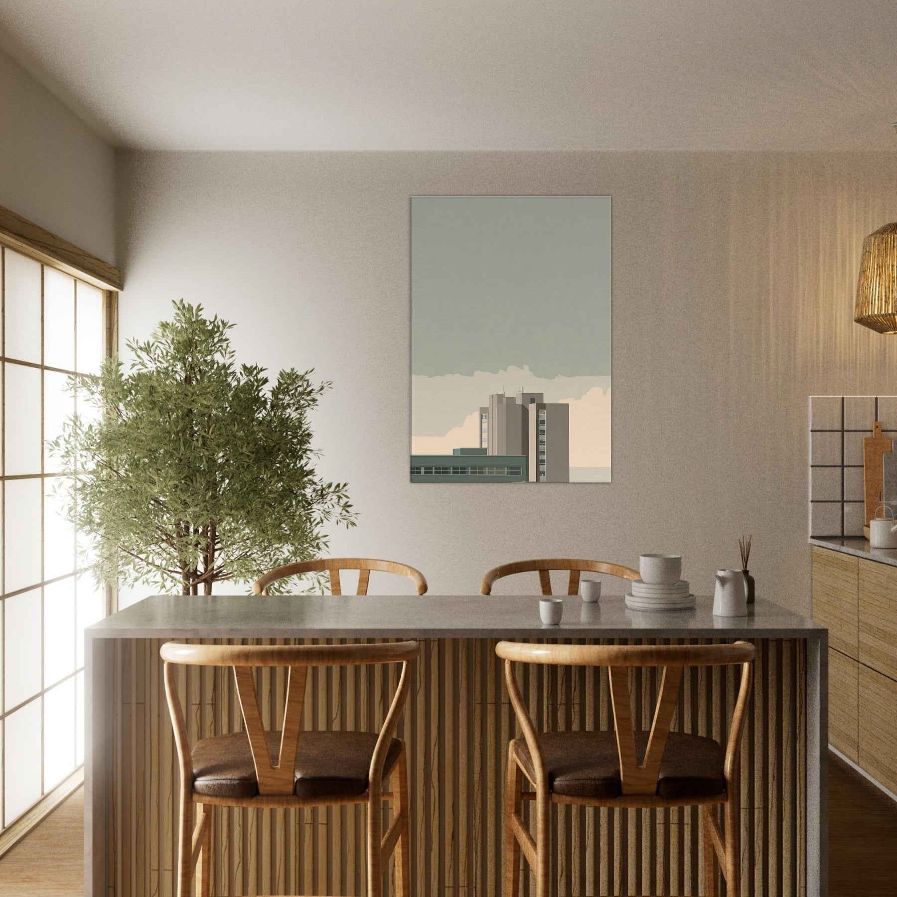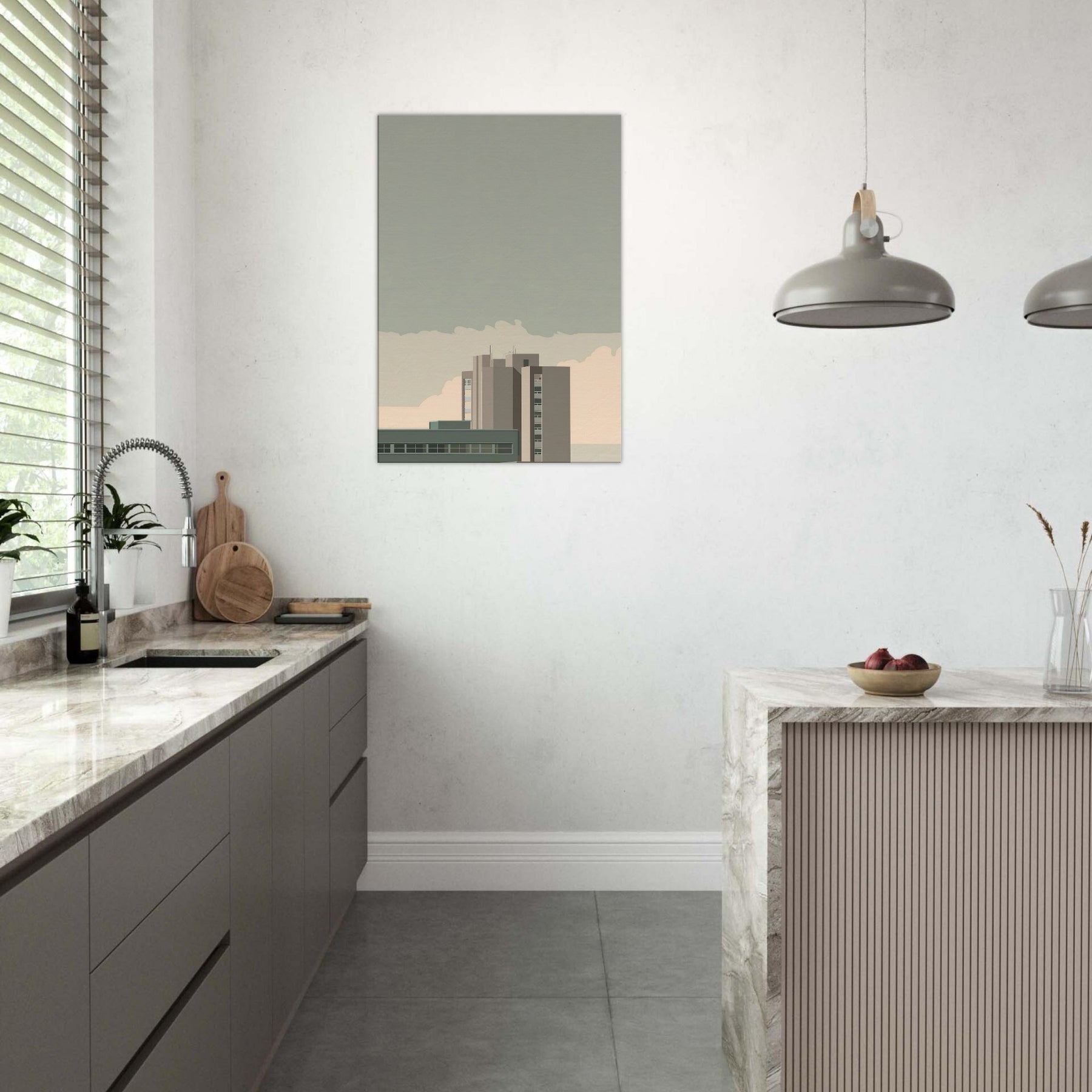 Immerse your space in the cool, restrained poetry of Istanbul through a minimalist skyline rendered in soft, architectural blocks. This piece captures the city's timeless balance of ancient nerve and modern form, with muted taupes, sage, and stony gray that wash over the walls like a quiet harbor. The composition invites reflective light and calm, turning a living room into a contemplative corridor between memory and morning. Perfect above a sofa or desk, it adds urban atmosphere without overpowering, letting conversation and stillness breathe together.