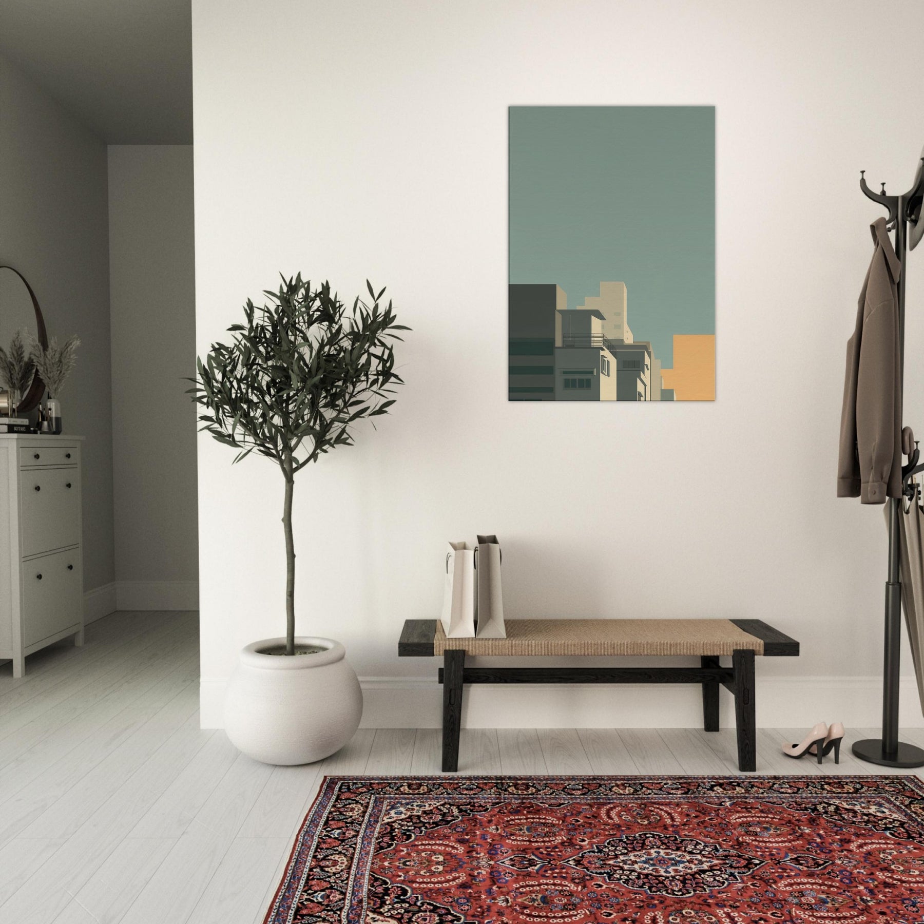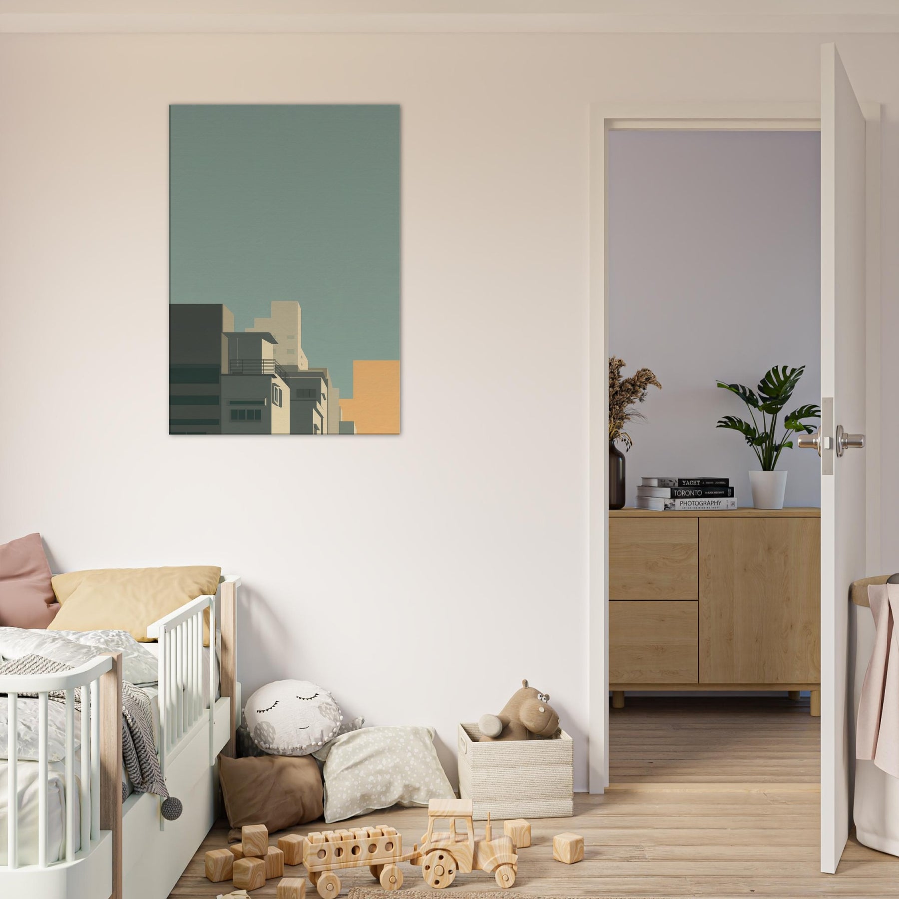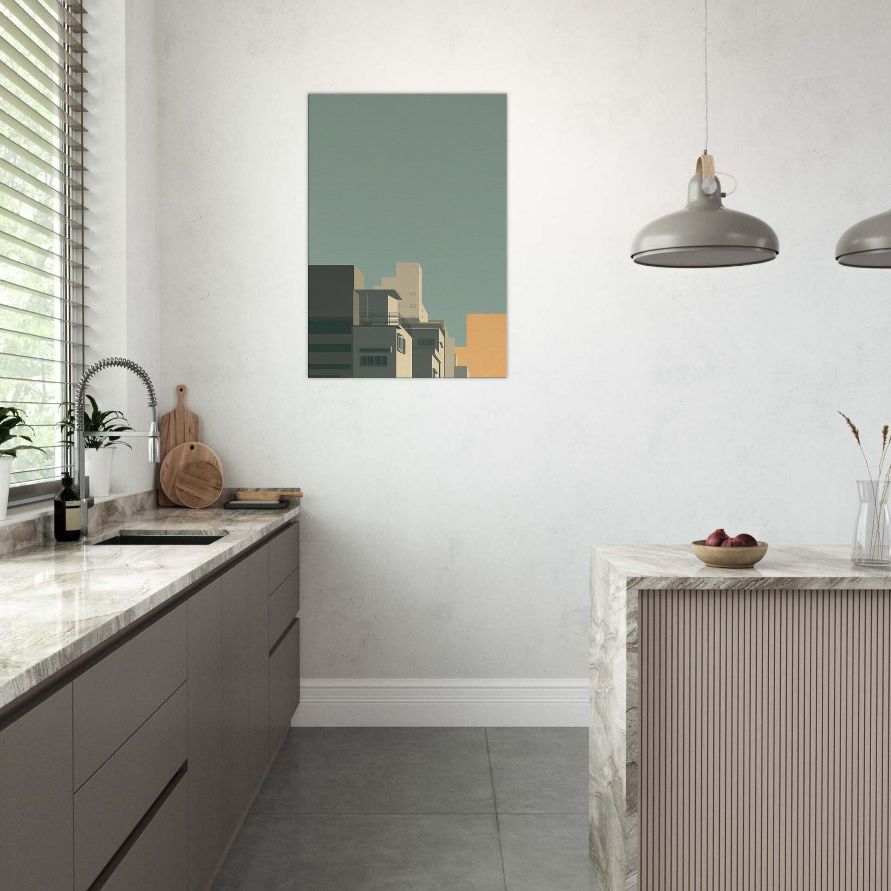 In this minimalist homage to Kyoto, the quiet geometry of blocks and soft, sun warmed tones breathe calm into any room. The architecture becomes a patient lullaby, the balance of shadow and light, the subtle rhythm of balconies and stairwells, inviting stillness as you pause to watch it unfold. This serene cityscape enhances a living space by guiding the eye, softening walls with gentle color, and turning a hallway or lounge into a contemplative moment. A refined, modern anchor for everyday rituals.