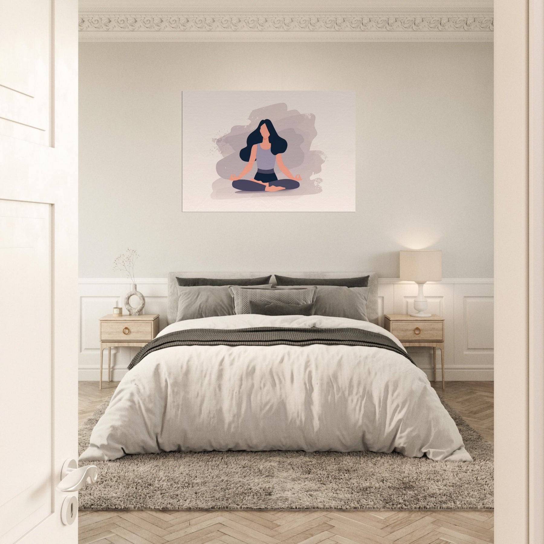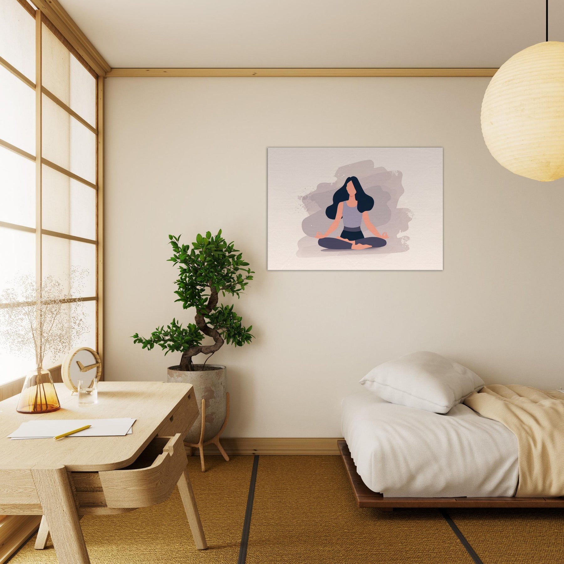 In this minimalist study, the Yoga Lotus Pose appears as a quiet, floating presence. Clean lines, soft lavender hues, and a warm peach backdrop conjure calm, focus, and stillness. The restrained palette and gentle form invite slow breaths, turning a living wall into a sanctuary of mindful pause. Ideal for any serene corner living rooms, bedrooms, or studios the artwork elevates space with subtle elegance and tactile serenity.