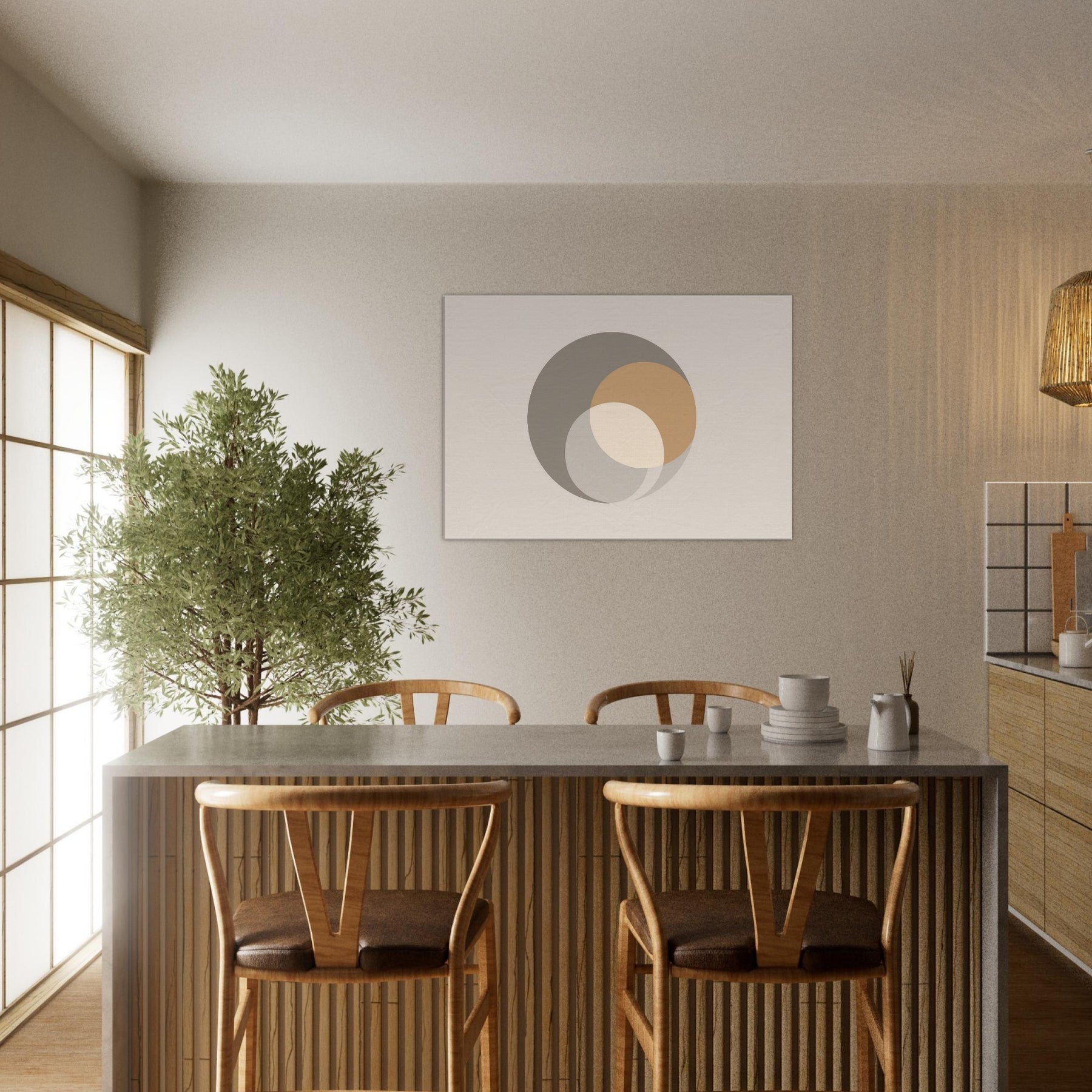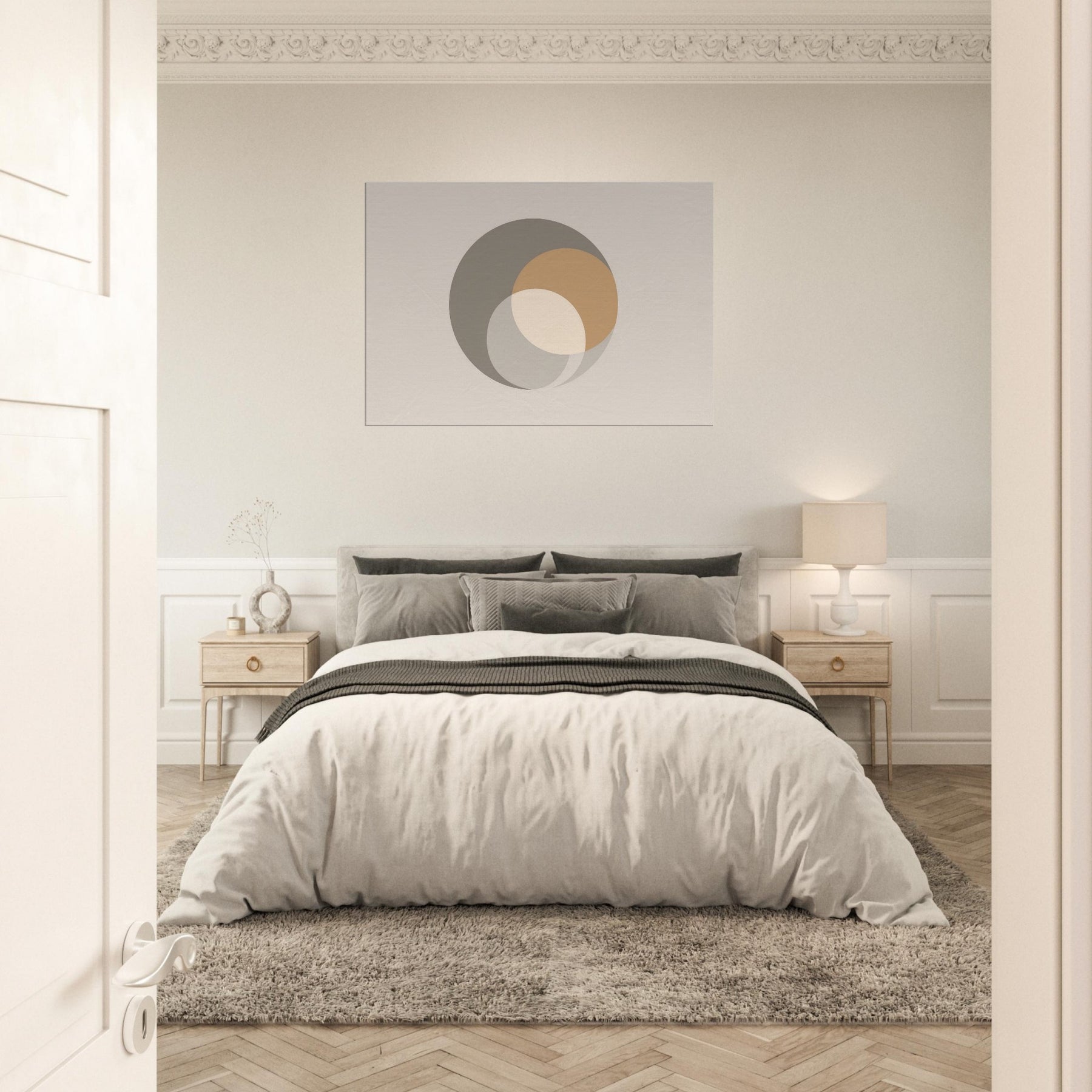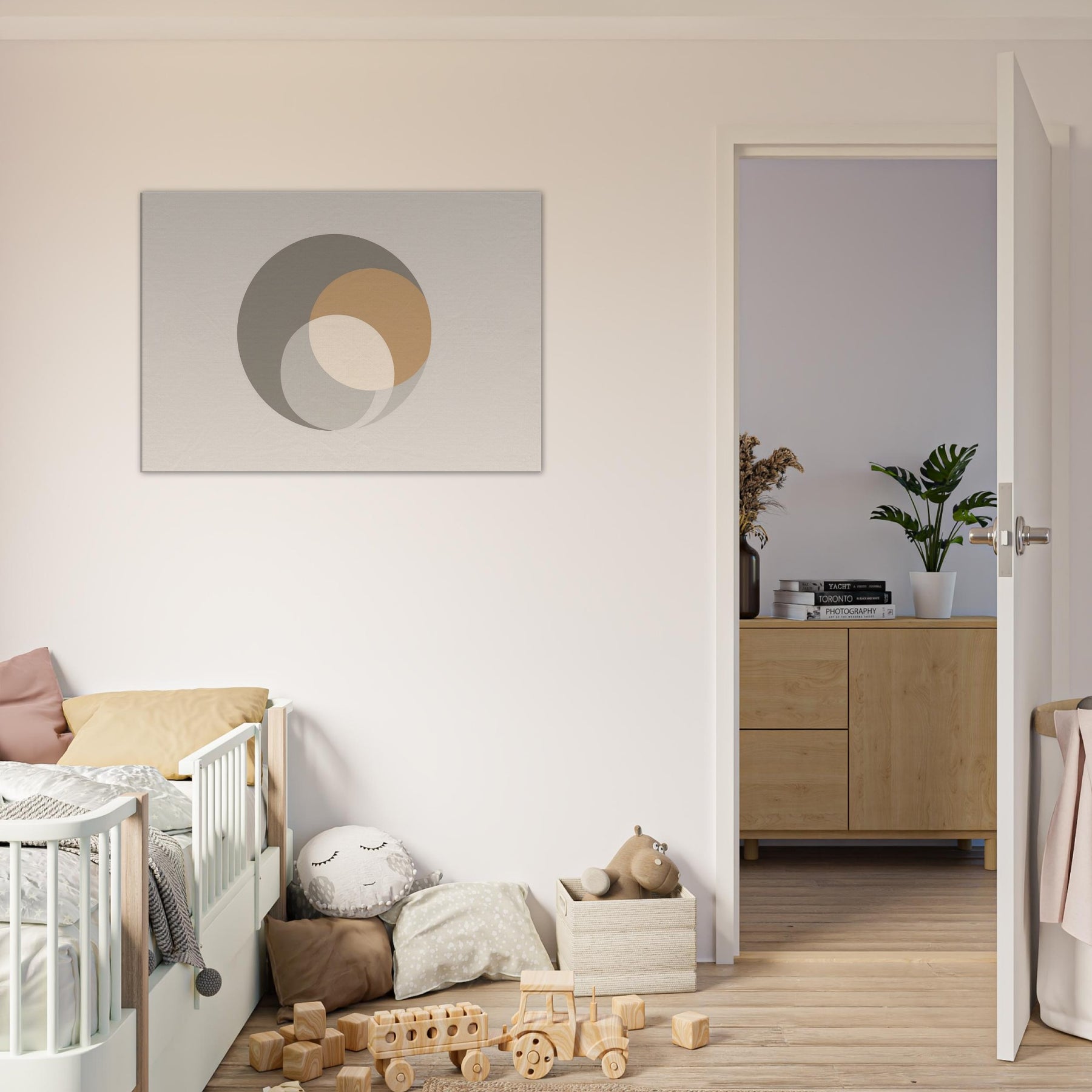 An intimate study of crescent and circle, this piece bathes a room in quiet, moonlit air. The Moon surfaces as soft, alternating rings of taupe, ivory, and clay, overlapping in a serene choreography that feels like a breath between night and dawn. Clean lines, generous negative space, and tactile warmth invite stillness, making it a focal point in living spaces from a reading nook to a sunlit corridor. Let it drift over your everyday moments, turning walls into a gentle harbor of mystery.