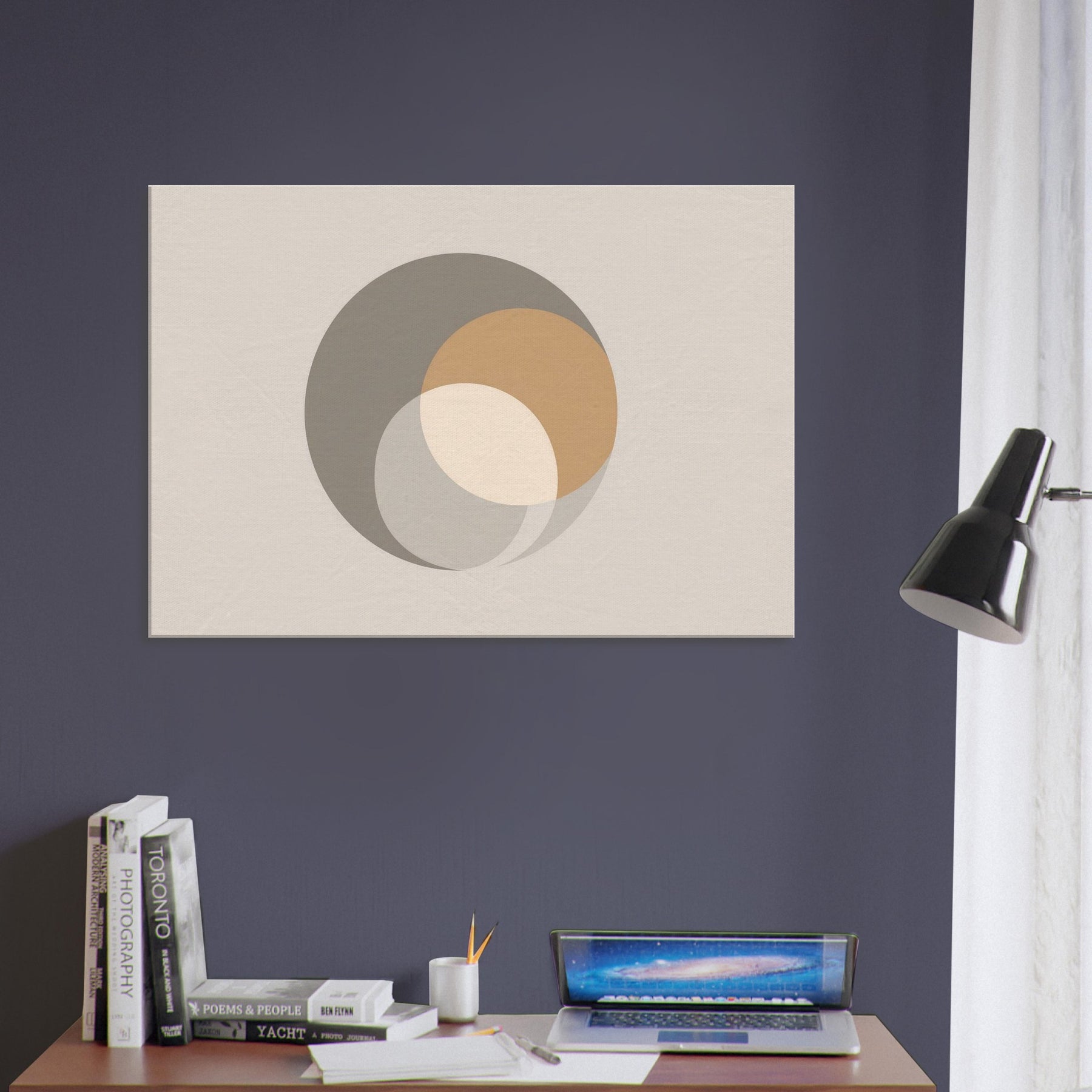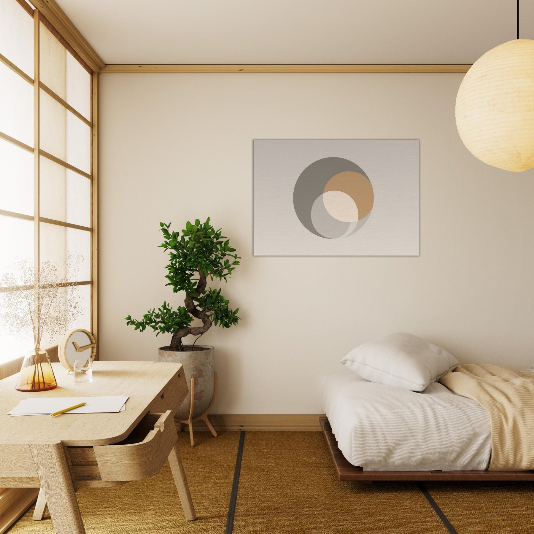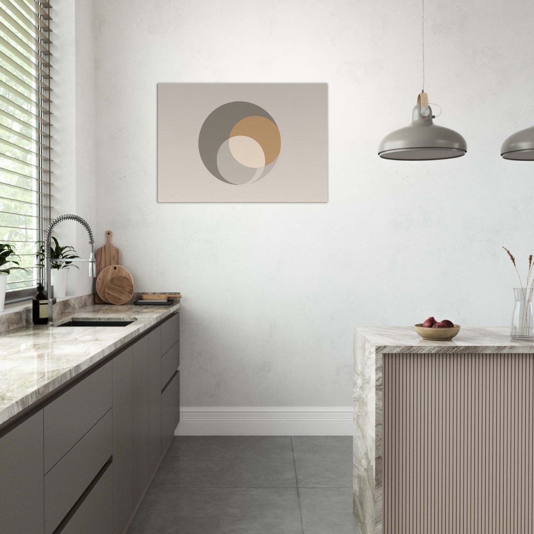 An intimate study of crescent and circle, this piece bathes a room in quiet, moonlit air. The Moon surfaces as soft, alternating rings of taupe, ivory, and clay, overlapping in a serene choreography that feels like a breath between night and dawn. Clean lines, generous negative space, and tactile warmth invite stillness, making it a focal point in living spaces from a reading nook to a sunlit corridor. Let it drift over your everyday moments, turning walls into a gentle harbor of mystery.