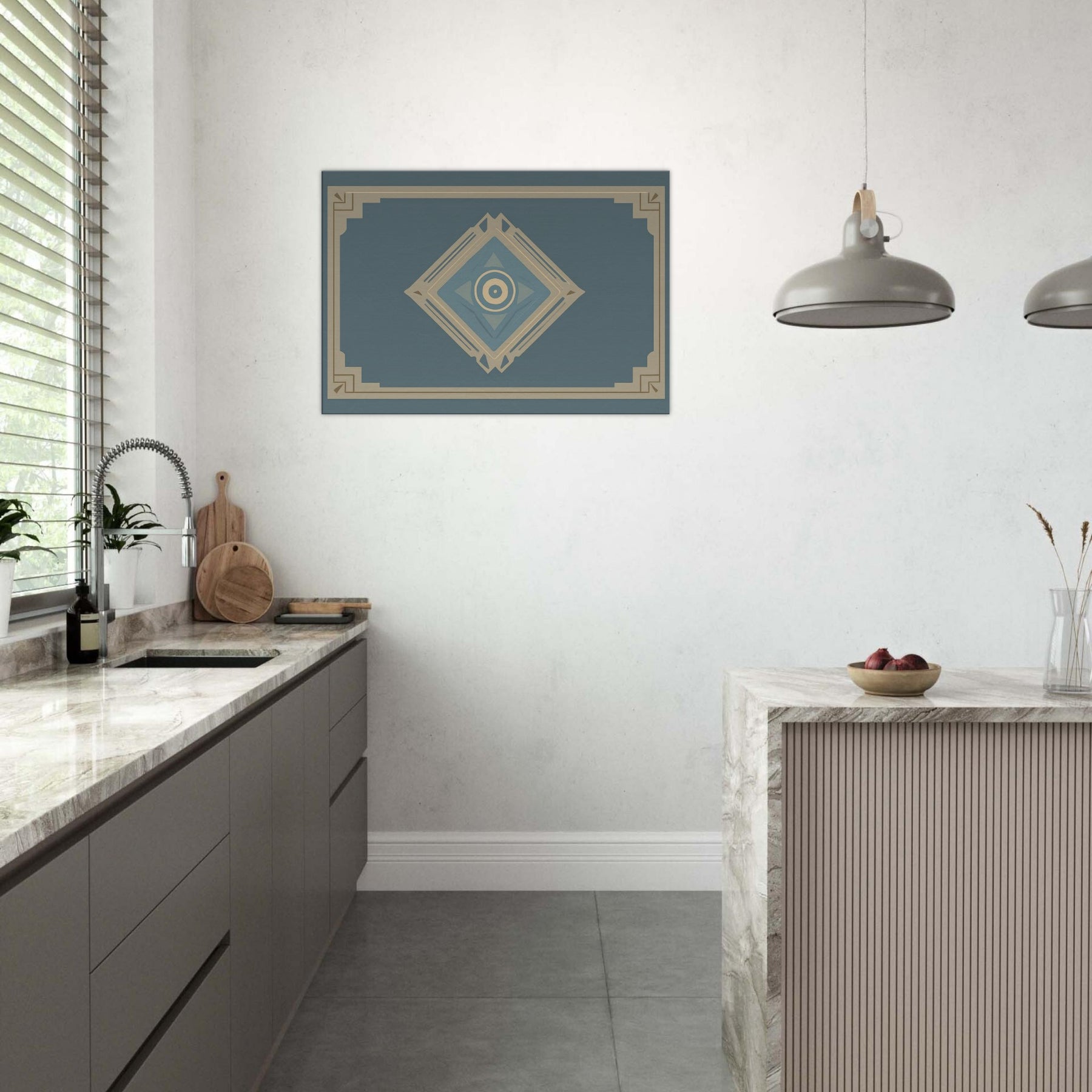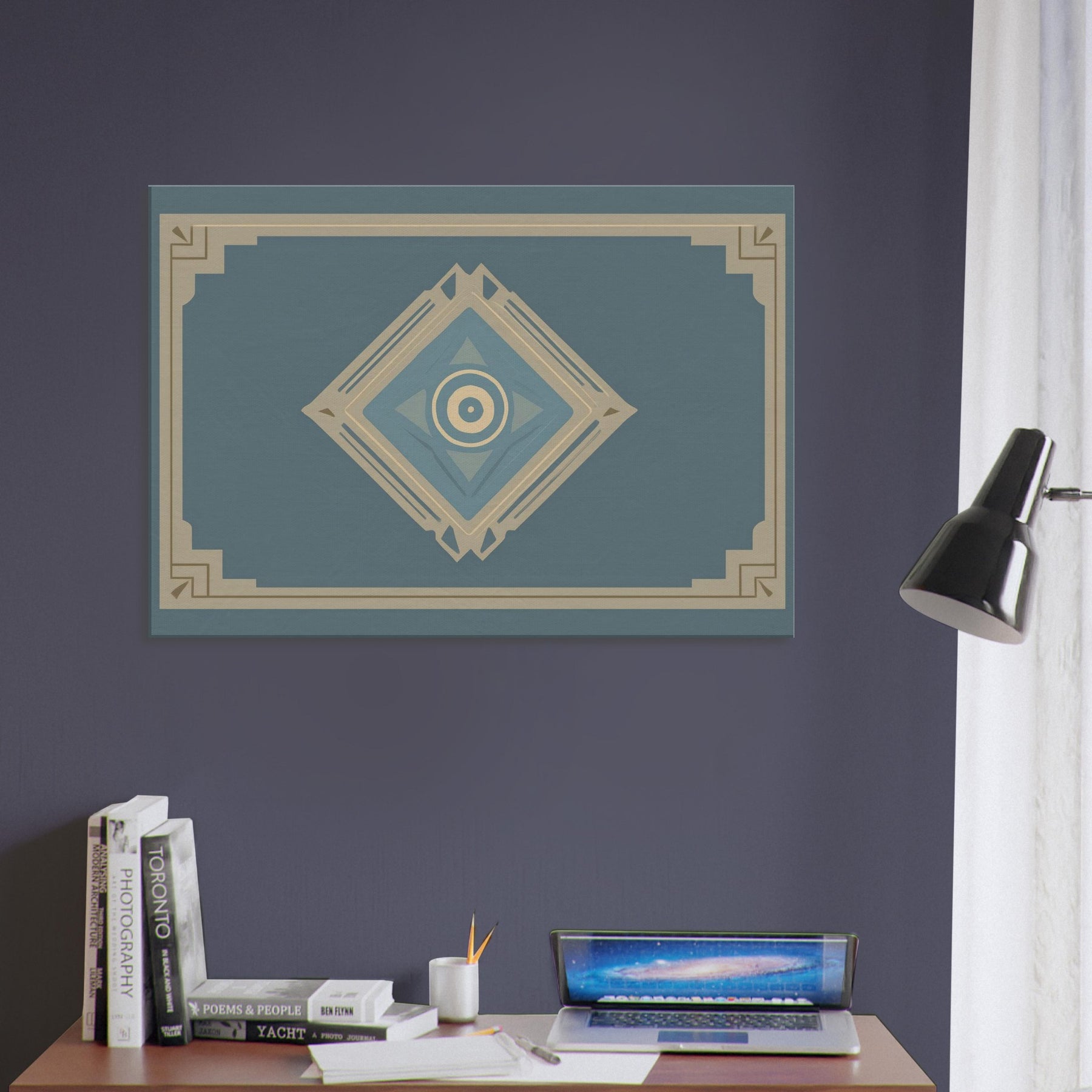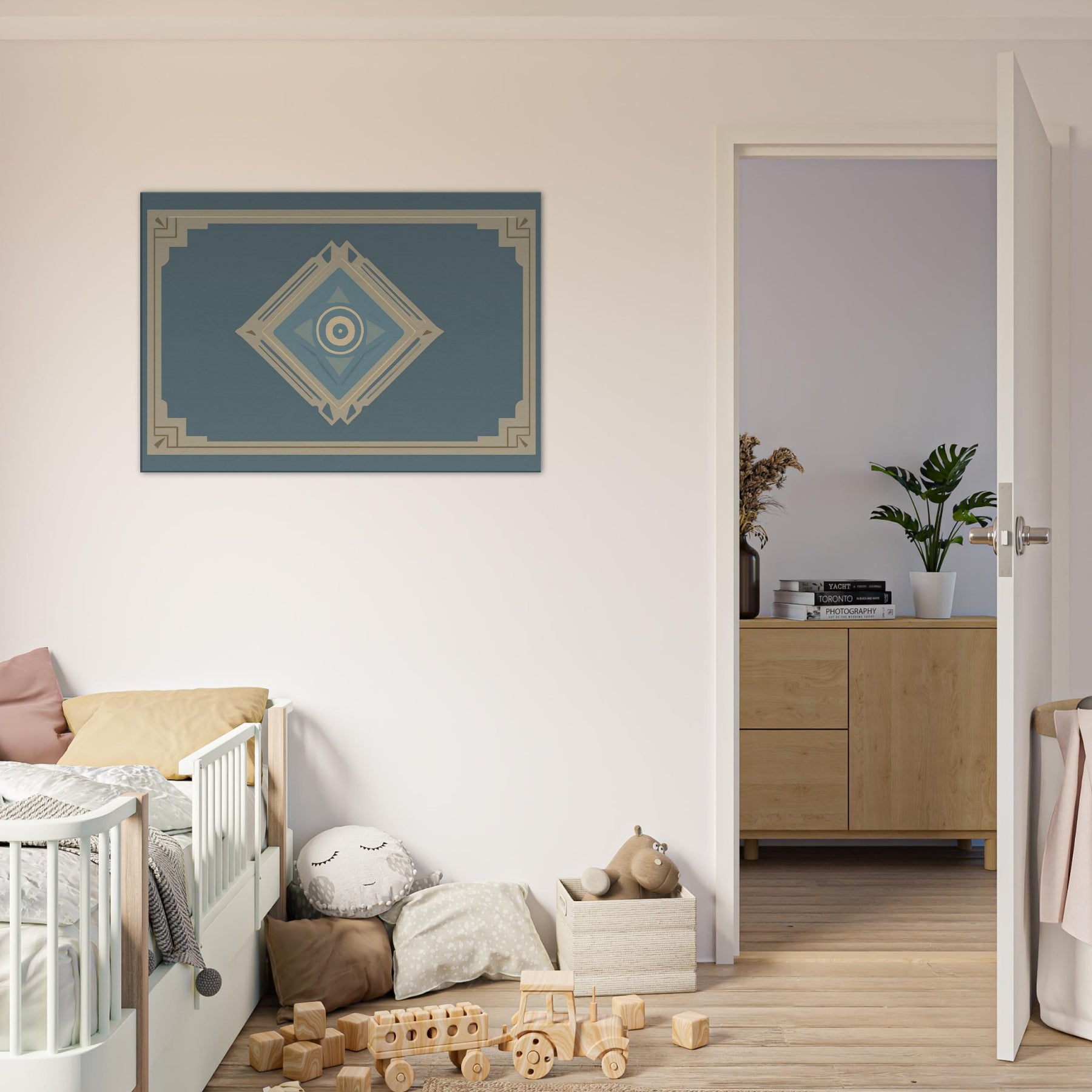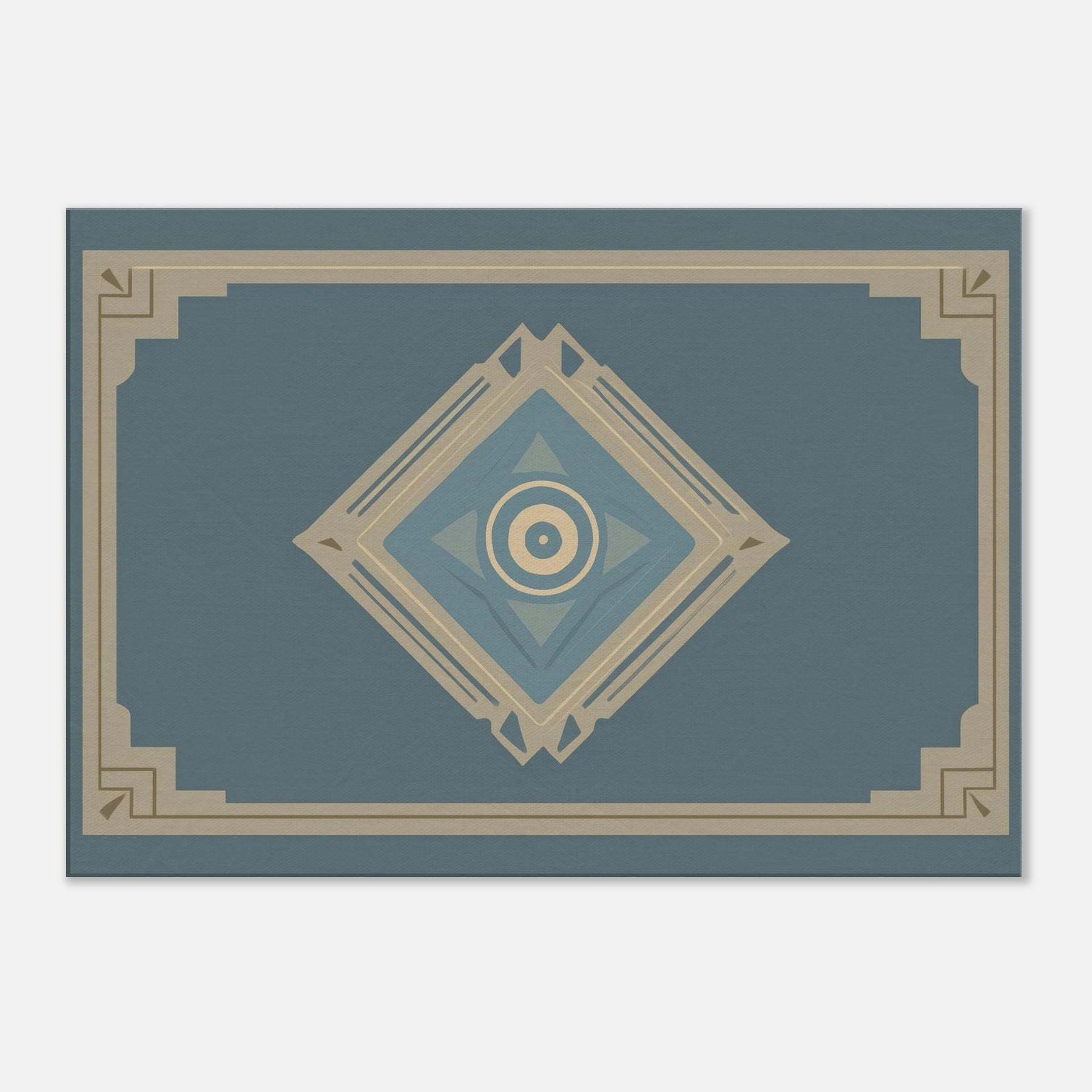 A refined meditation for any room, this piece distills Tarot Cards into clean, breathing lines. The central diamond unfurls with concentric circles, inviting a calm, almost whispered focus, while the surrounding frame suggests a doorway to quiet contemplation. The restrained palette sage blue and warm beige feels airy, modern, and timeless. Hang it where morning light or evening lamp glow can play across the subtle geometry, turning a living space into a sanctuary of stillness, imagination, and subtle mysticism.