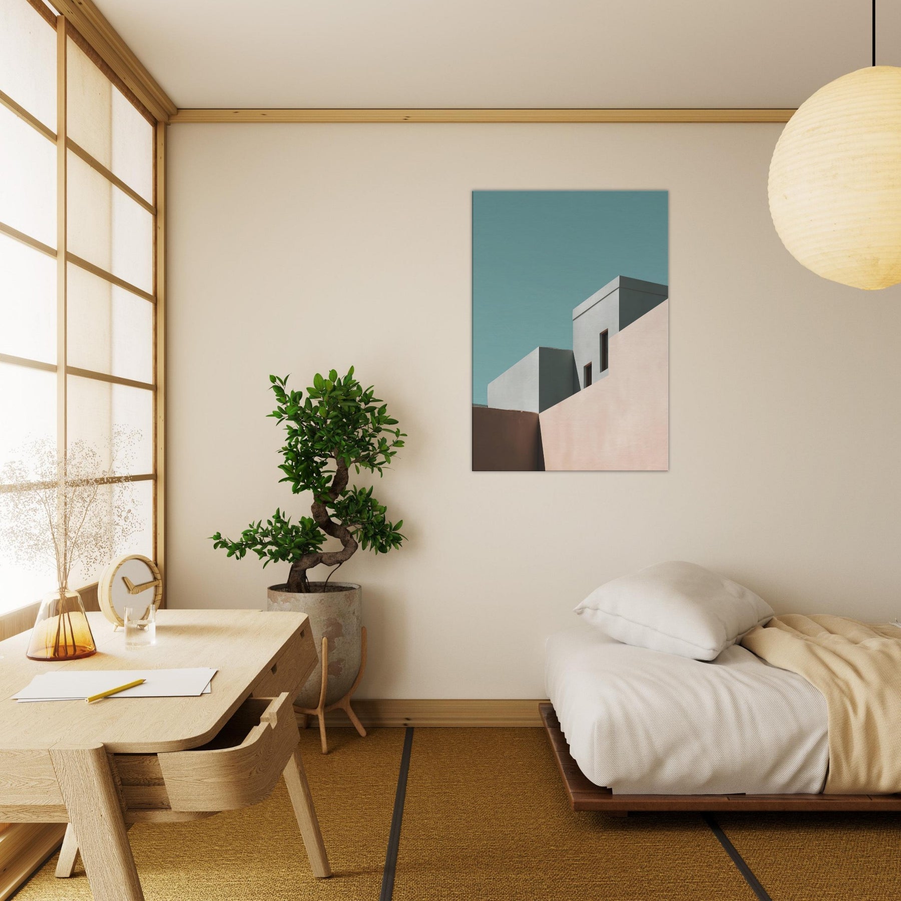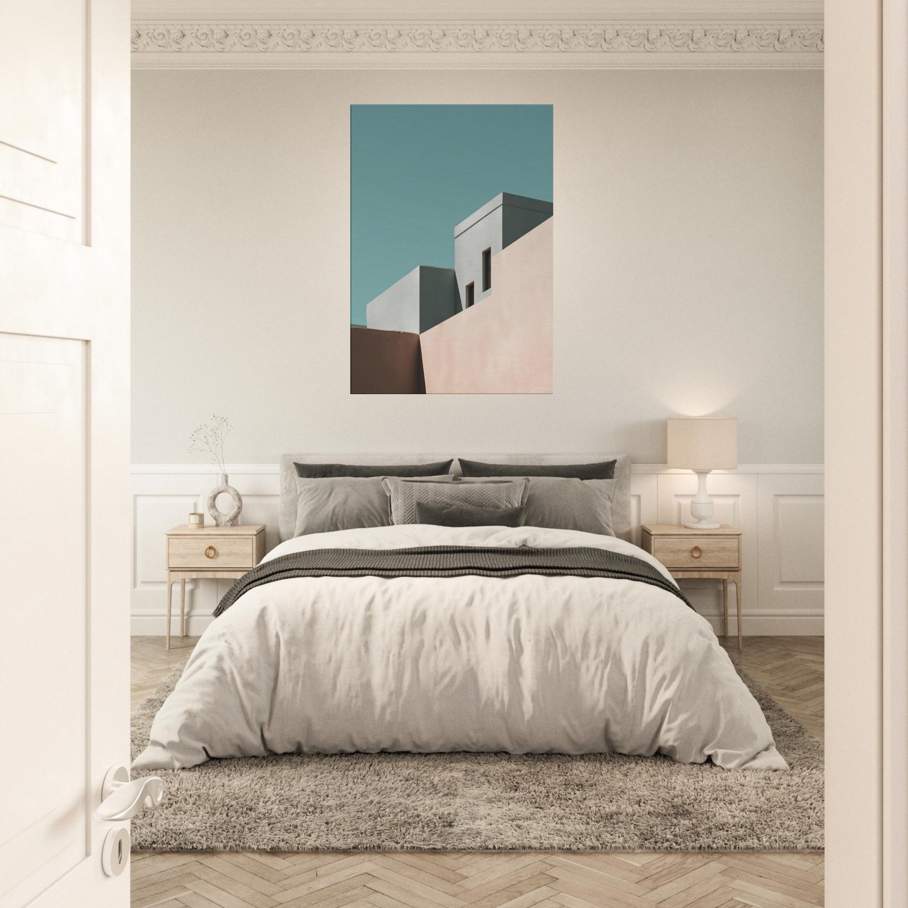 Like a quiet breeze over sun warmed walls, this piece captures Marrakech through a language of clean planes and precise edges. The composition rests in spacious negative space, inviting the eye to wander the soft curves of architecture and the pale, merciful colors of dawn. It breathes calm into a living room, pairing with earthy tones and white furnishings to create a sanctuary of serenity. Hang it where the day's bustle dissolves into stillness, and let light, shadow, and memory reside in the same frame.