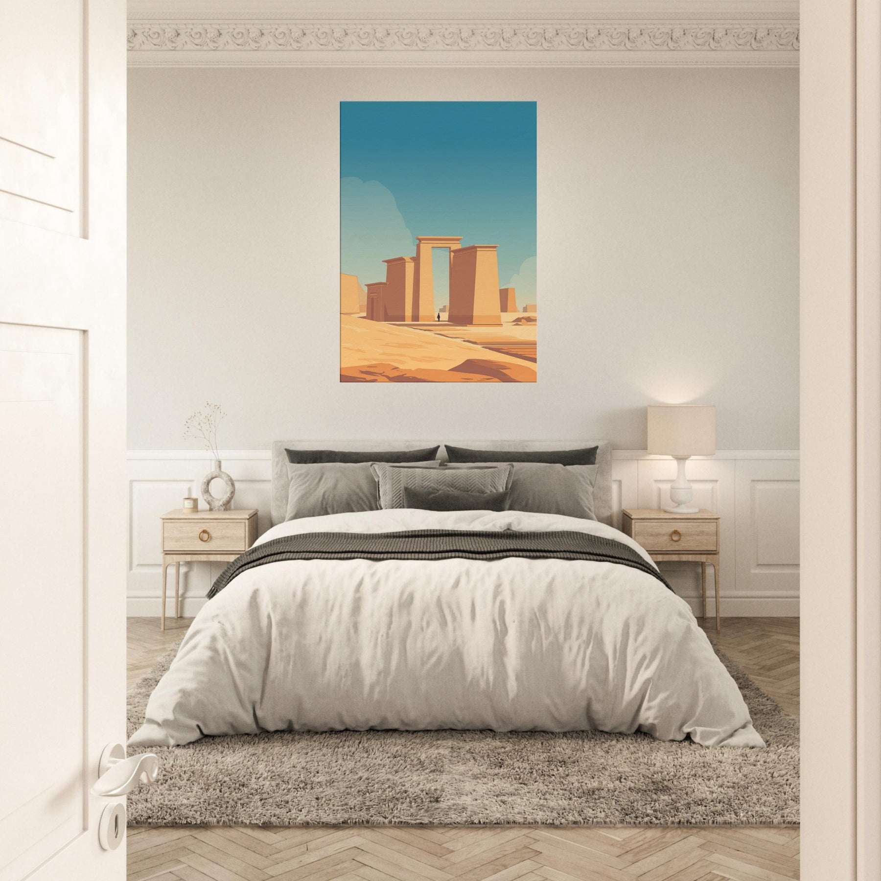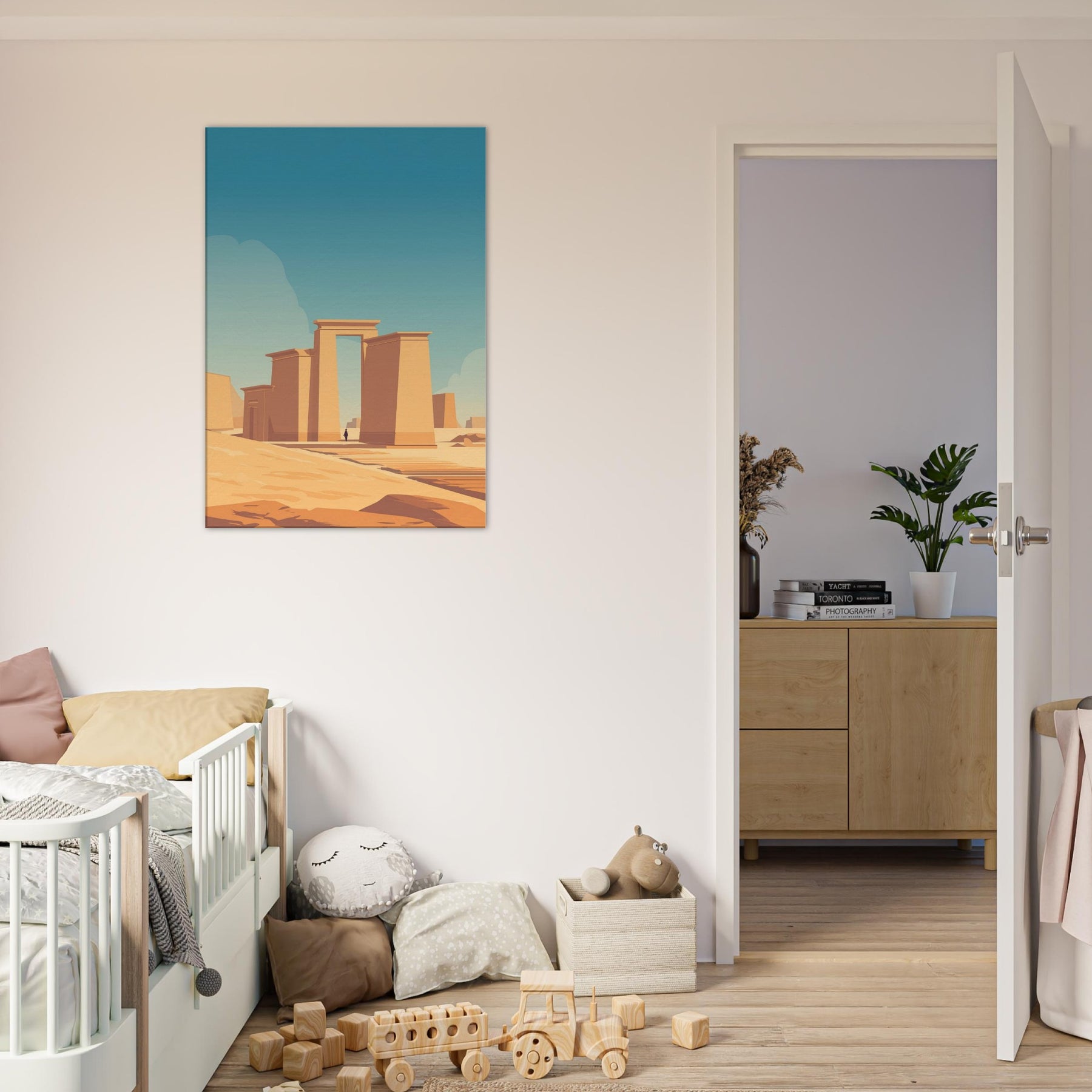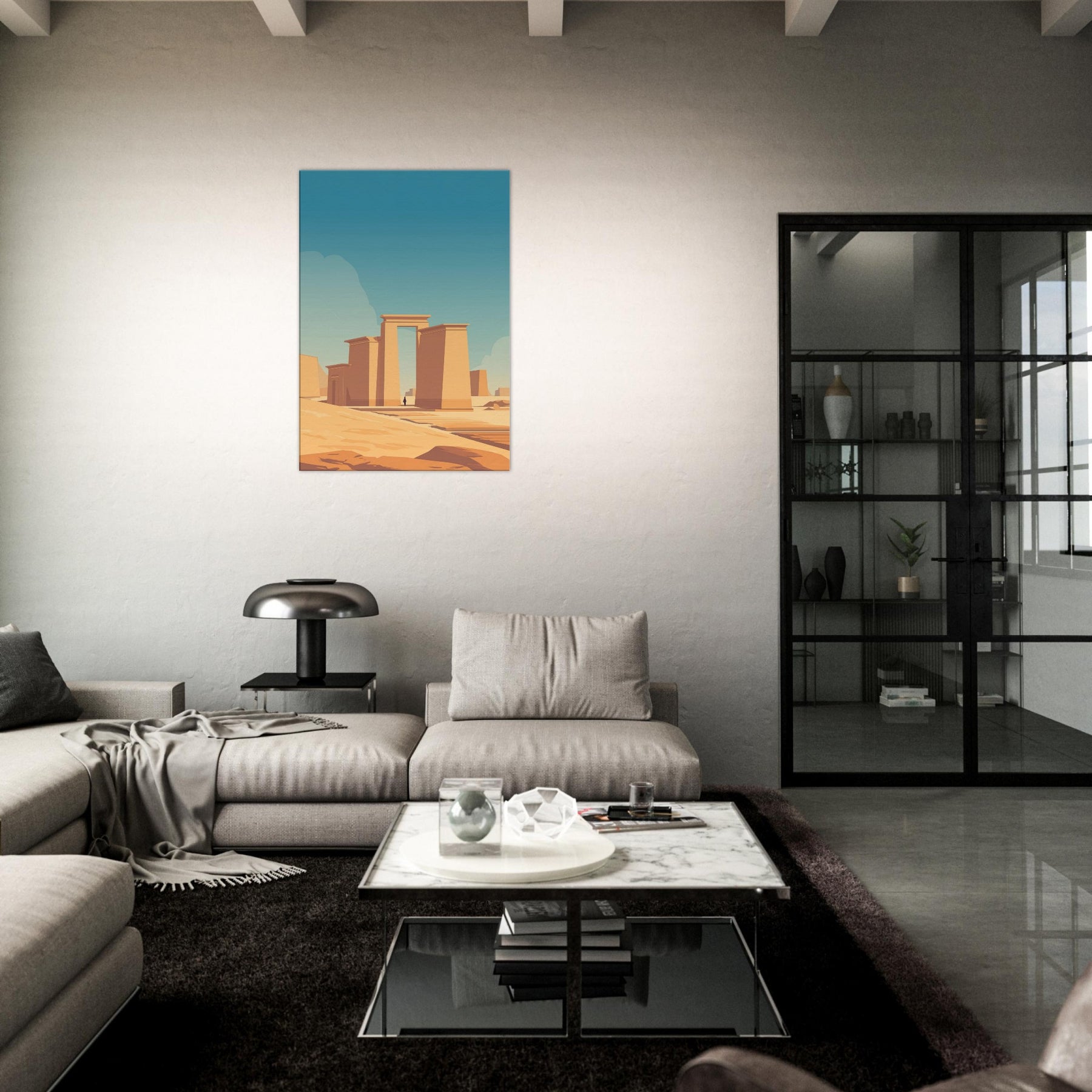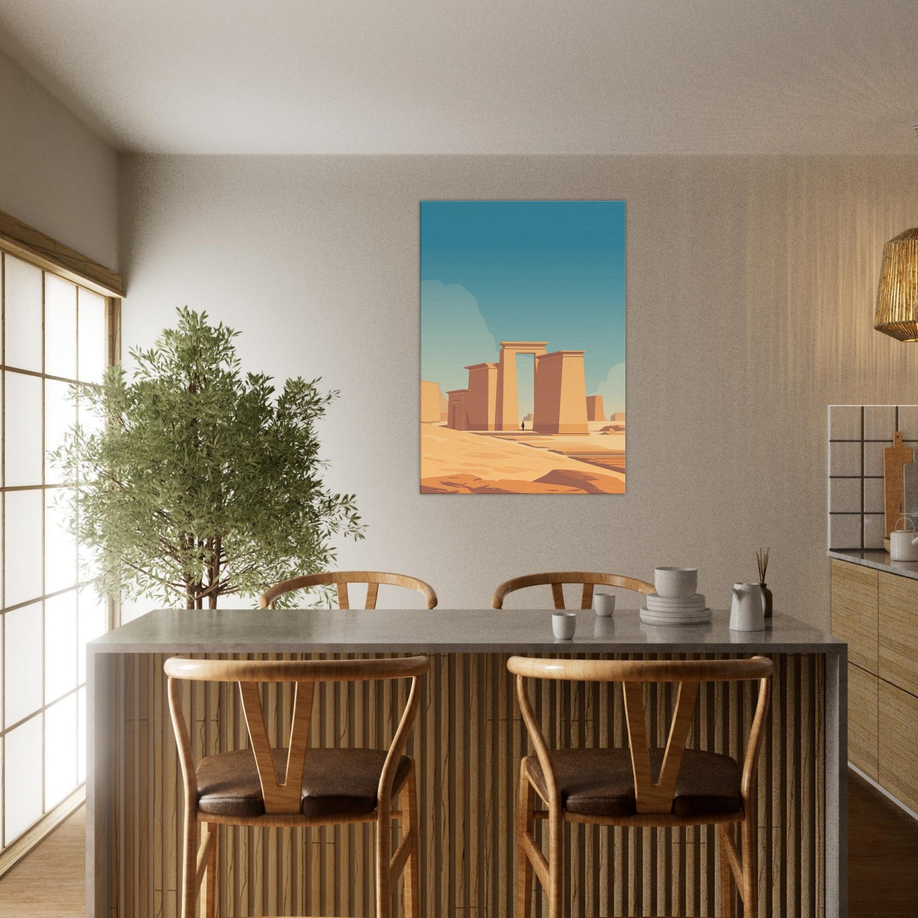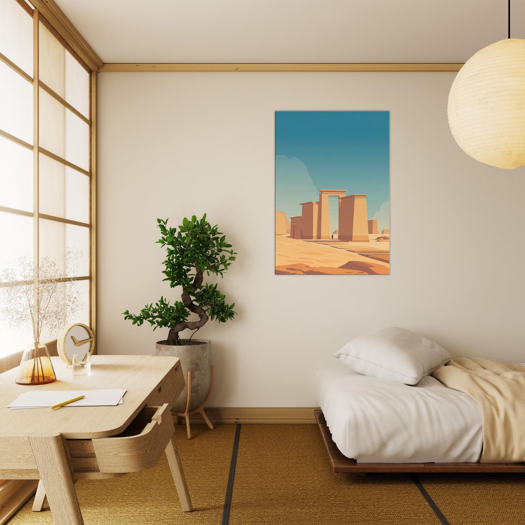 Step into a sun washed where ancient lines rise from the sand. This minimalist interpretation of Mayan Temples distills history into clean, monumental forms, inviting a quiet breath of wonder. The soft terracotta palette and expansive negative space create a calm focal point that expands a room rather than crowding it. Perfect for a living space or study, it pairs with warm woods and cool neutrals, turning walls into a serene corridor of memory and imagination.