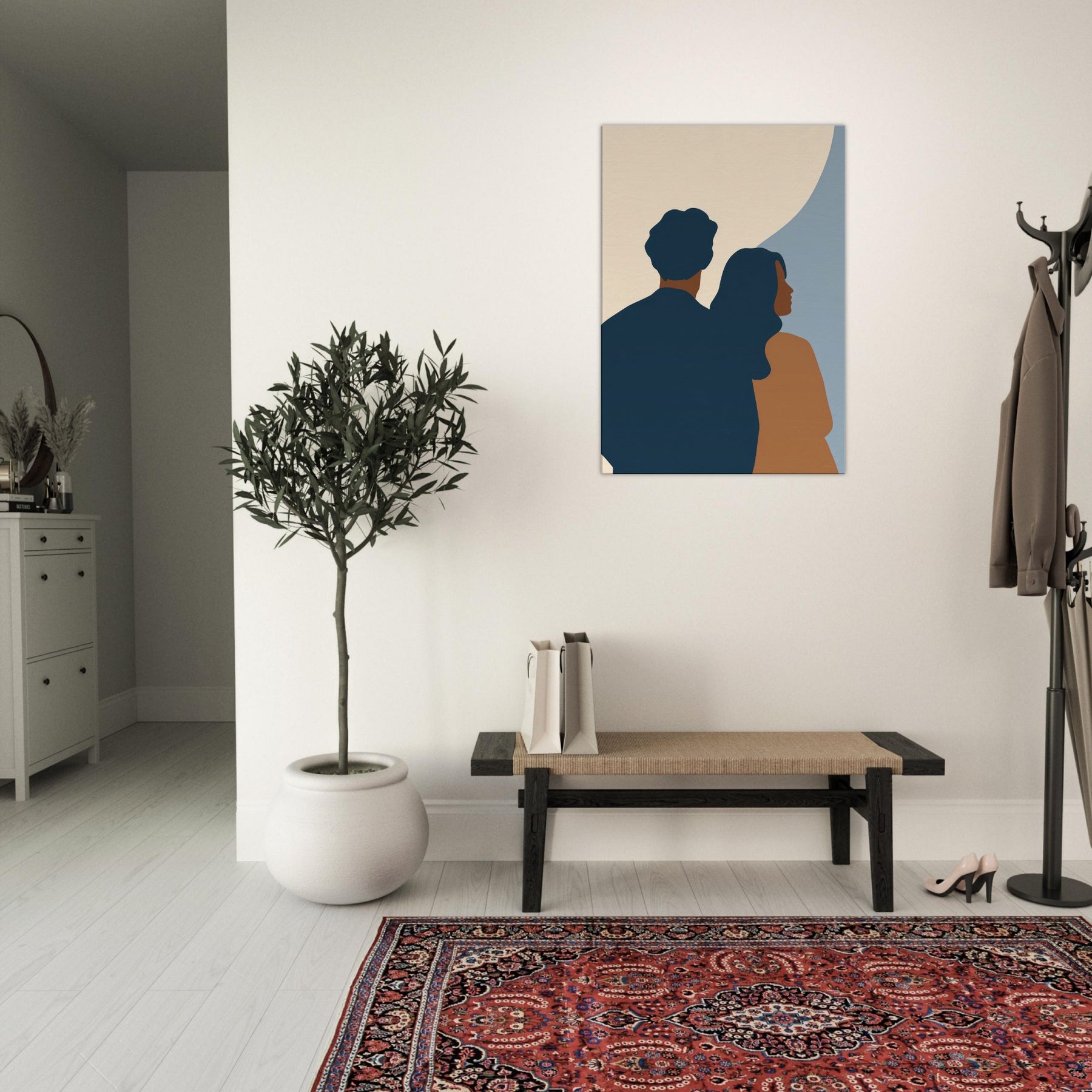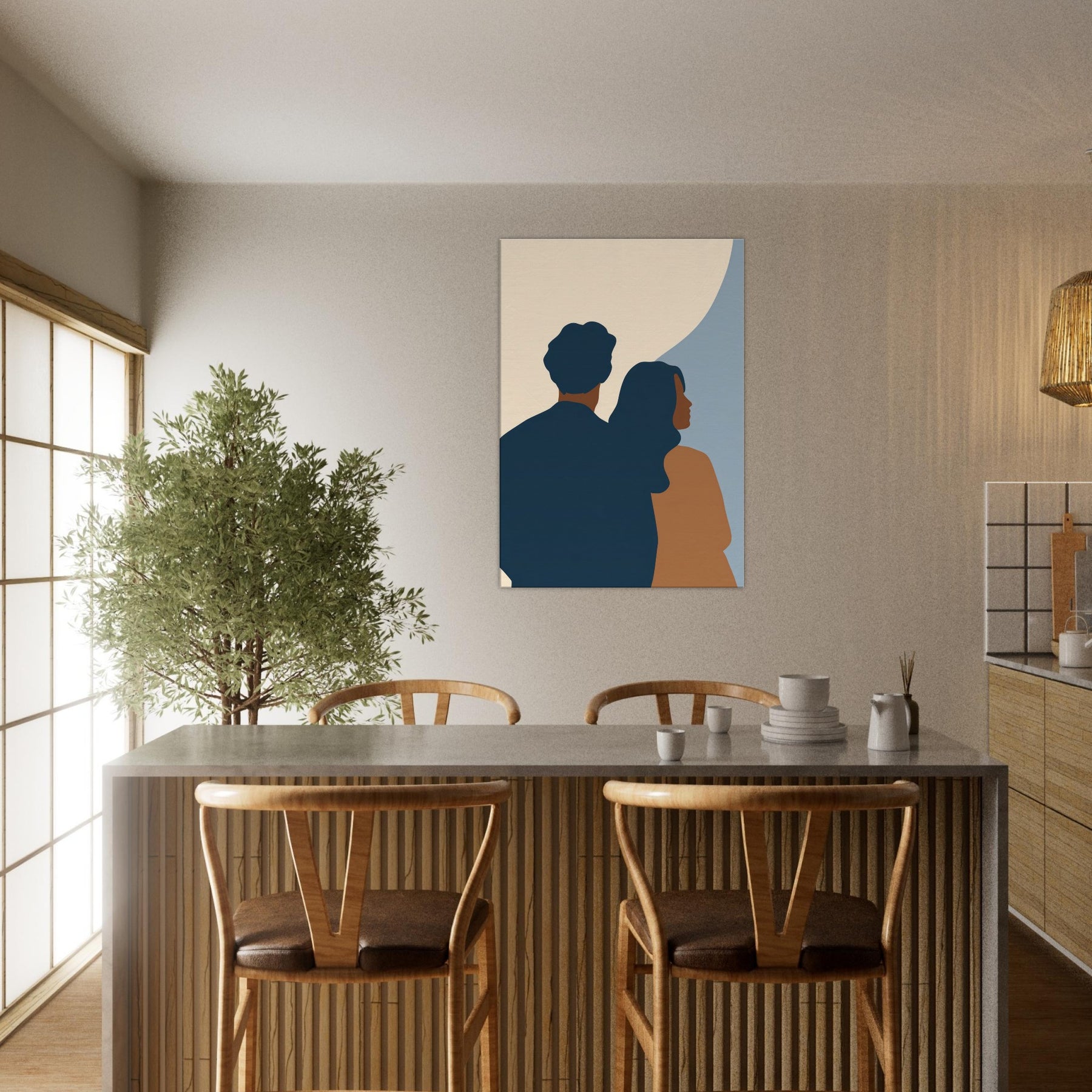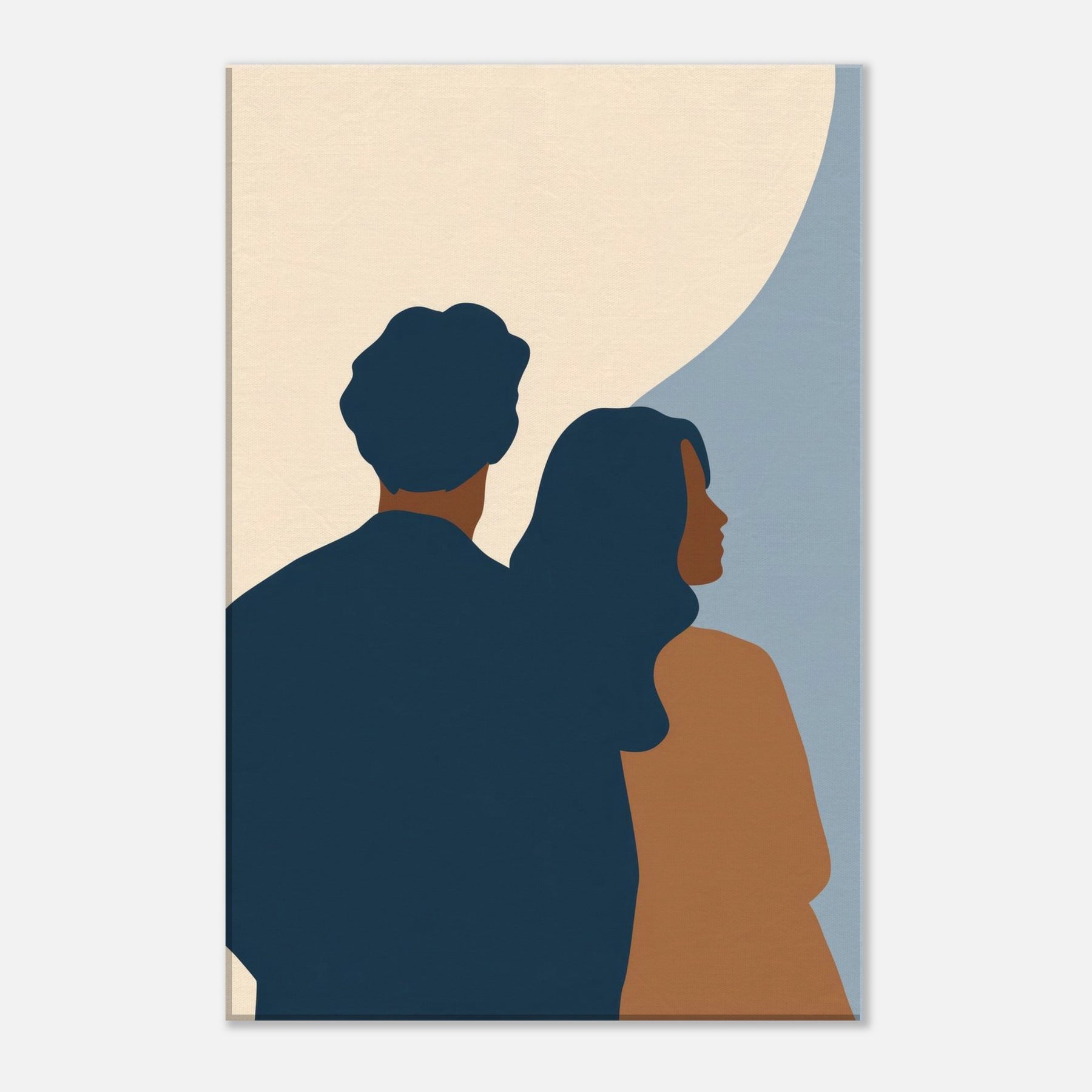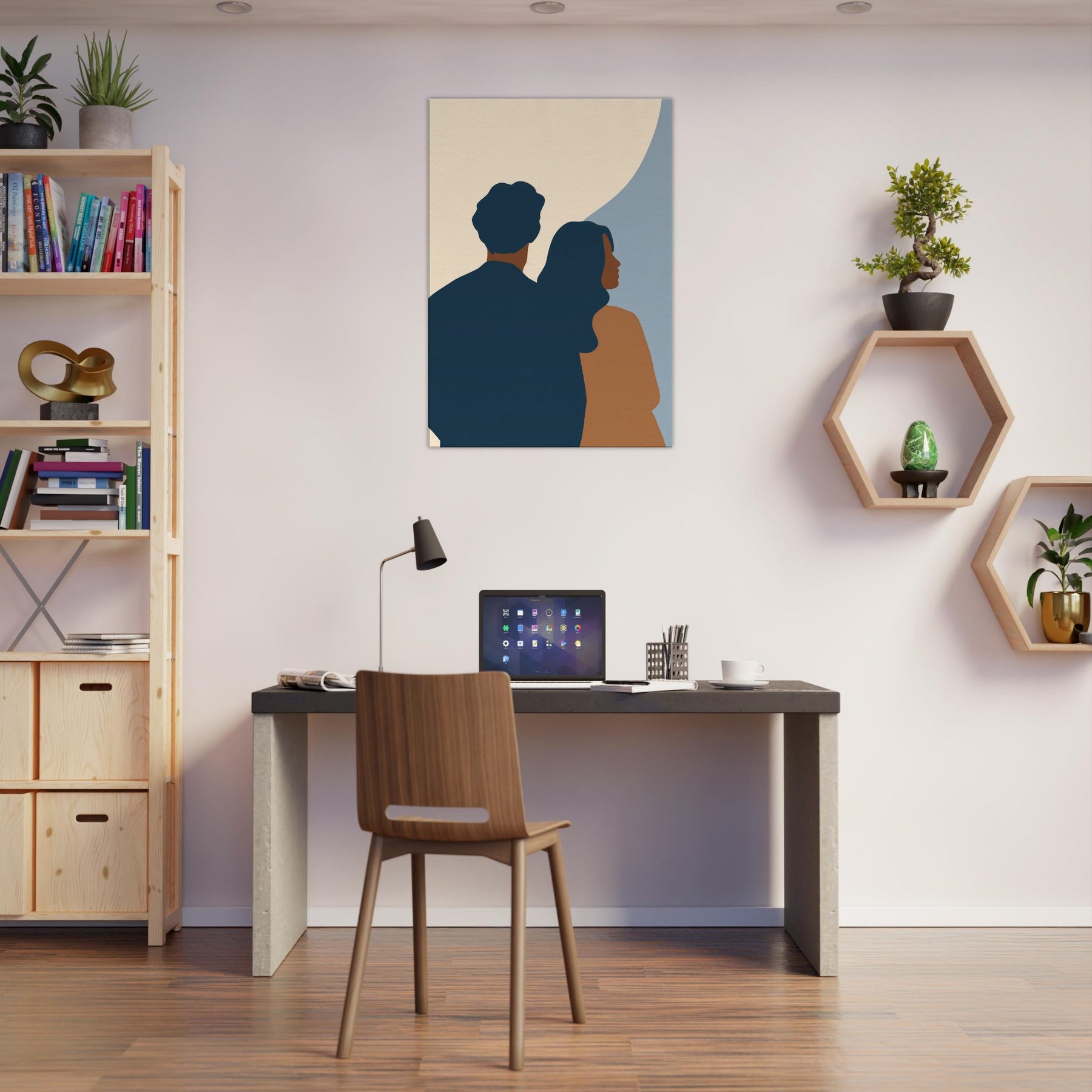Two figures fuse into a single silhouette, inviting quiet conversation without a single word. In this Couple Silhouette study, negative space breathes softly, casting a serene glow that warms any room. The minimalist palette deep navy, earthy terracotta, and pale sand creates a timeless mood, perfect for a living room or bedroom where reflection and tenderness linger. Let this artwork hold space for memories, quiet evenings, and the swift tick of a clock, turning walls into a sanctuary.