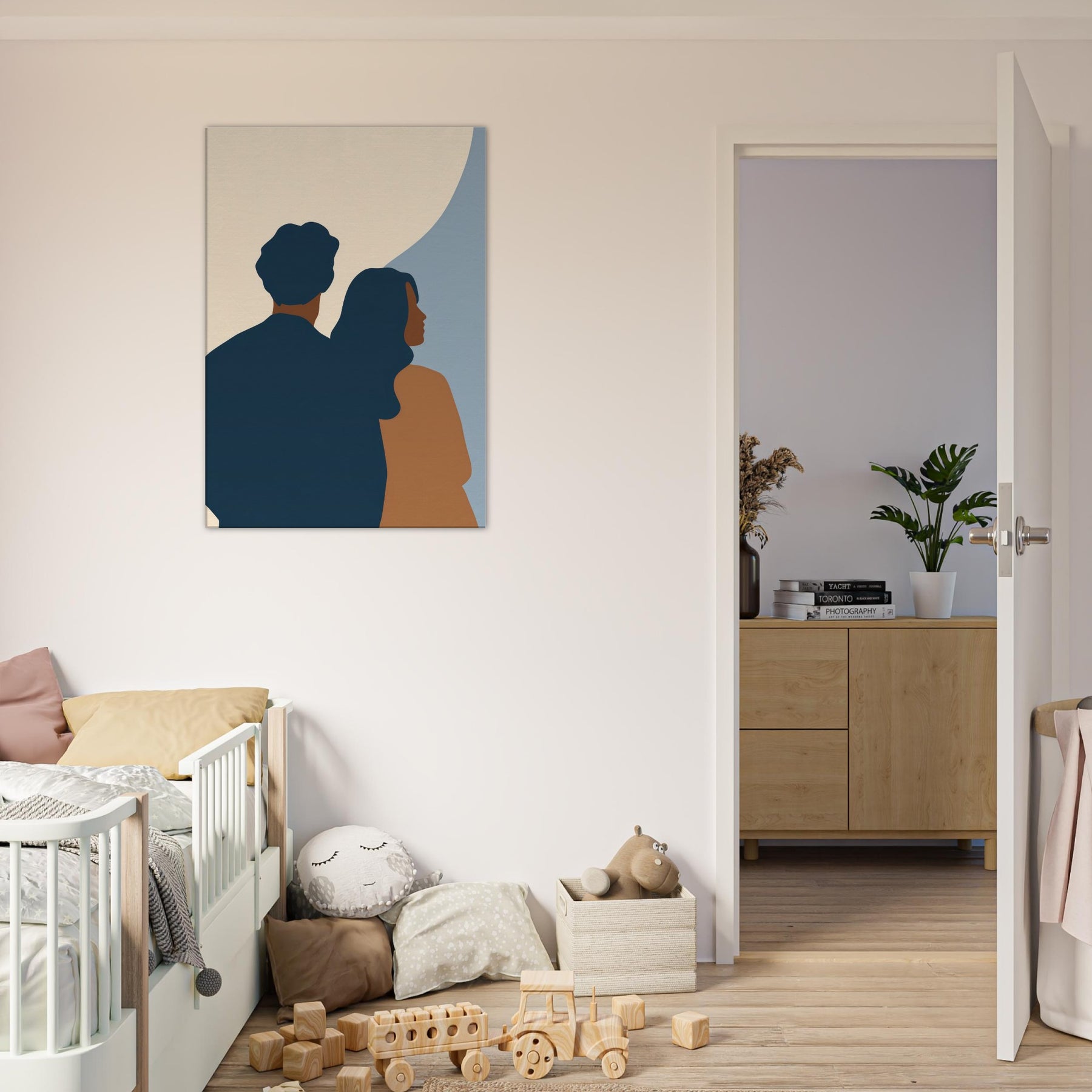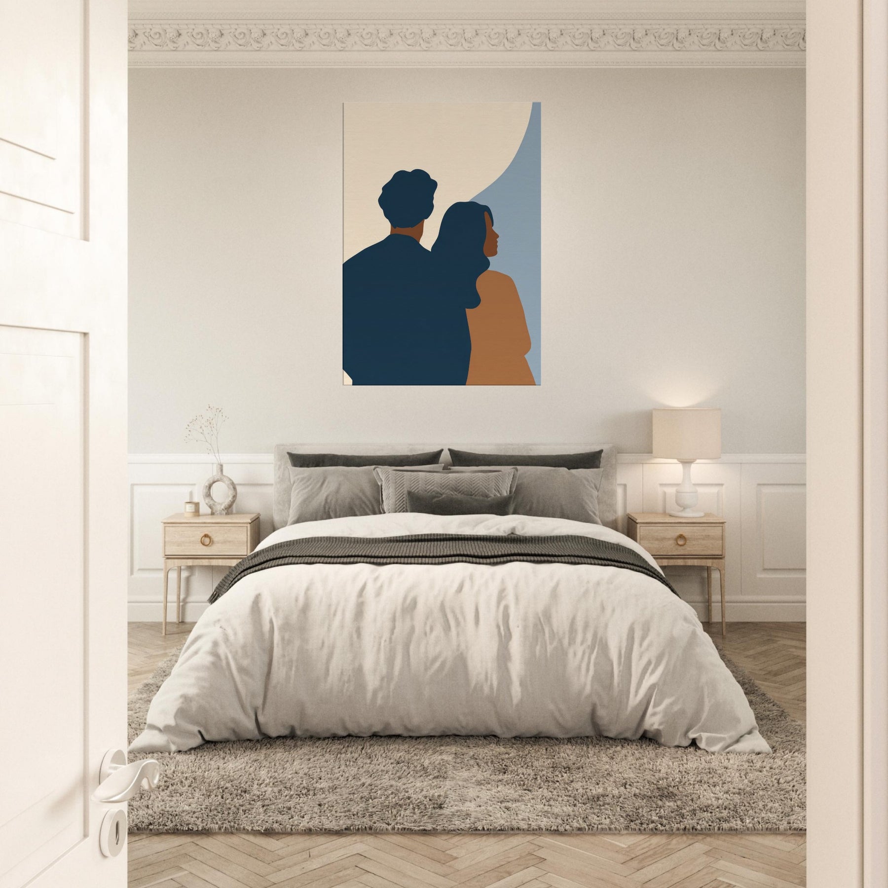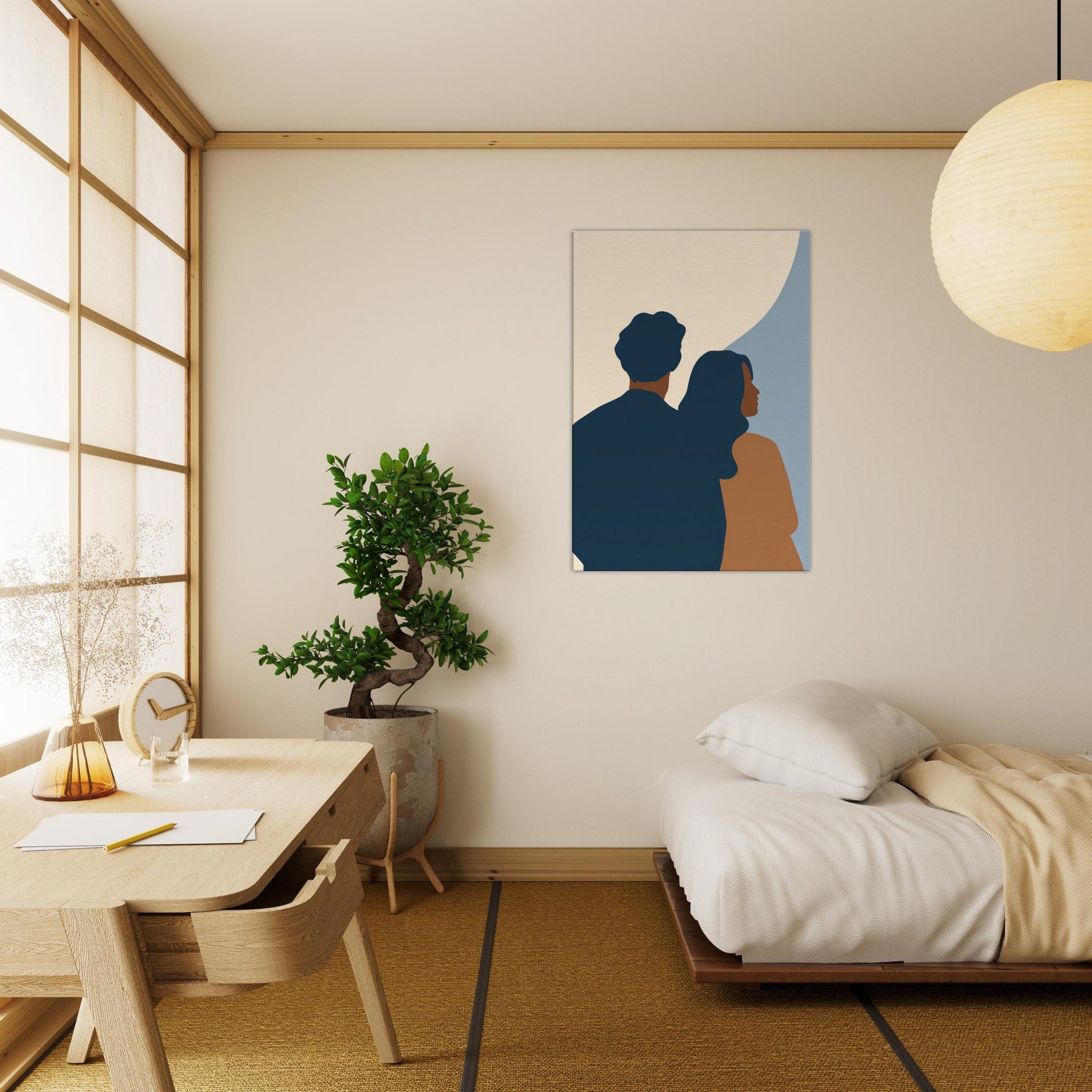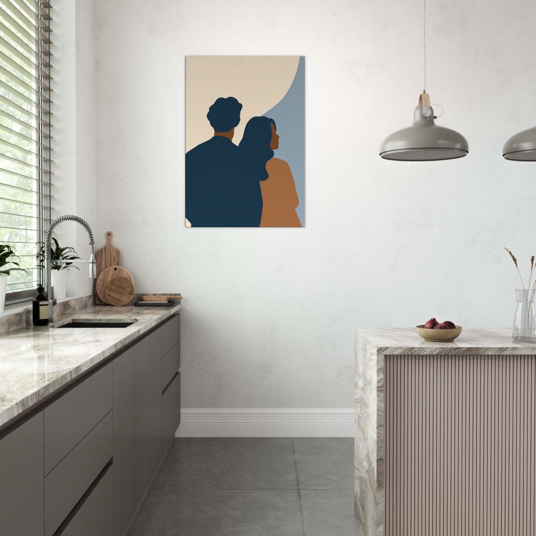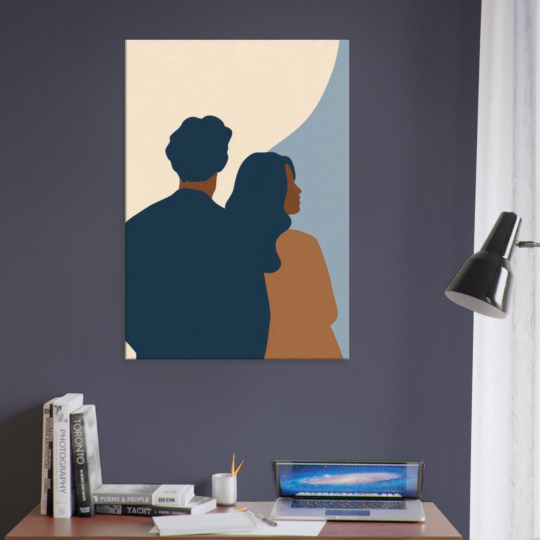 Two figures fuse into a single silhouette, inviting quiet conversation without a single word. In this Couple Silhouette study, negative space breathes softly, casting a serene glow that warms any room. The minimalist palette deep navy, earthy terracotta, and pale sand creates a timeless mood, perfect for a living room or bedroom where reflection and tenderness linger. Let this artwork hold space for memories, quiet evenings, and the swift tick of a clock, turning walls into a sanctuary.