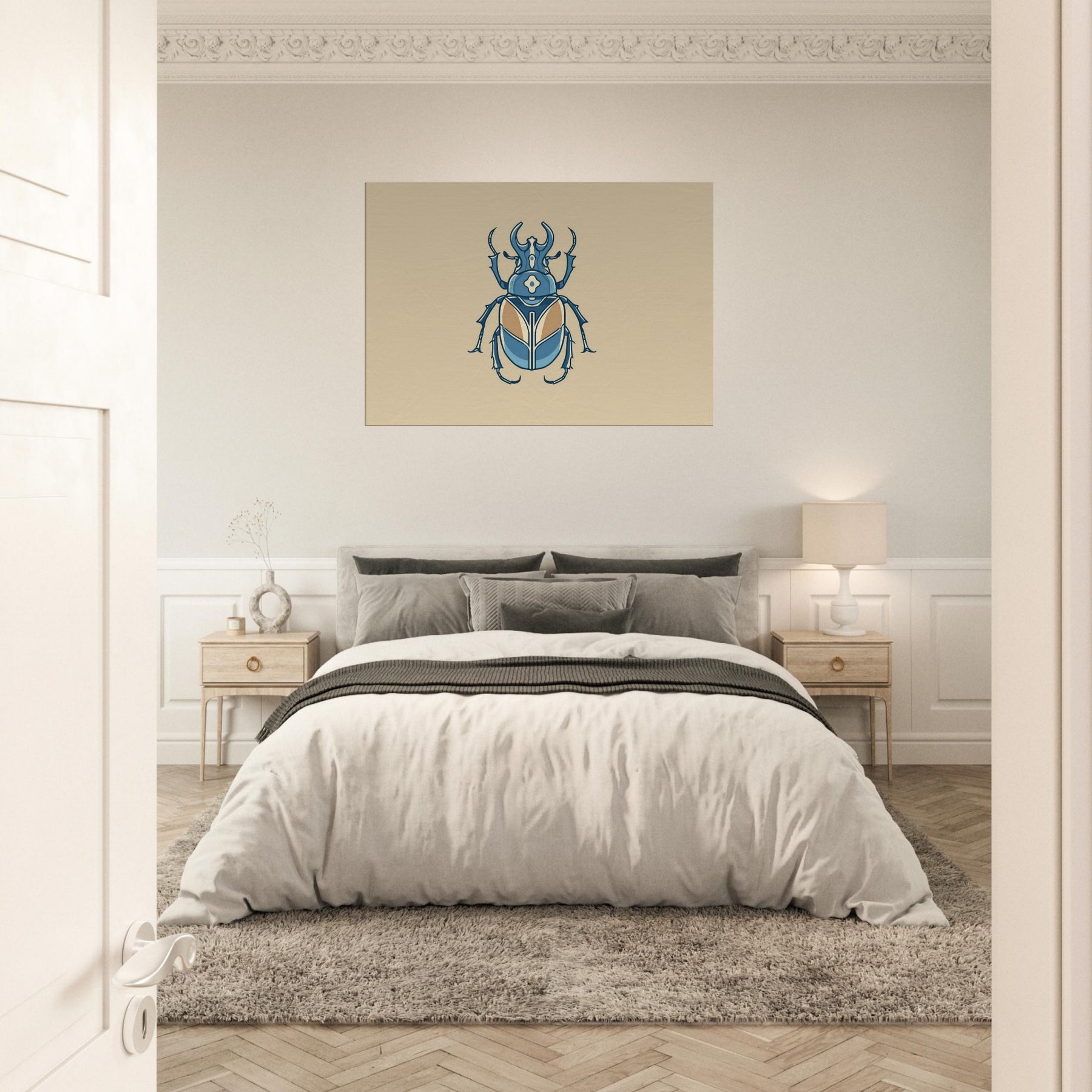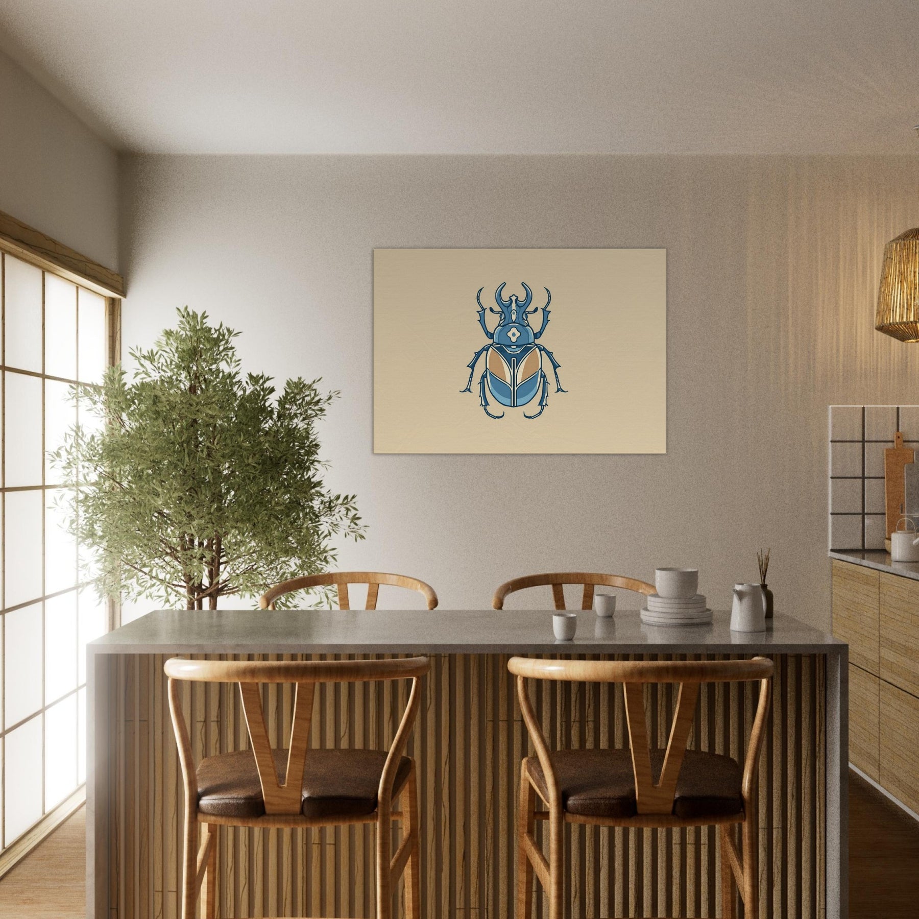 A serene study in geometry, the Scarab unfolds in restrained blue tones against a warm sand field. Its minimalist lines feel carved from quiet air, offering a meditative focal point that invites contemplation. The careful balance of shape and negative space casts soft shadows, warming a room with understated elegance. Hang it where daylight softens toward evening, and let the Scarab's mystical presence cultivate calm, curiosity, and a refined, modern atmosphere in your living space.