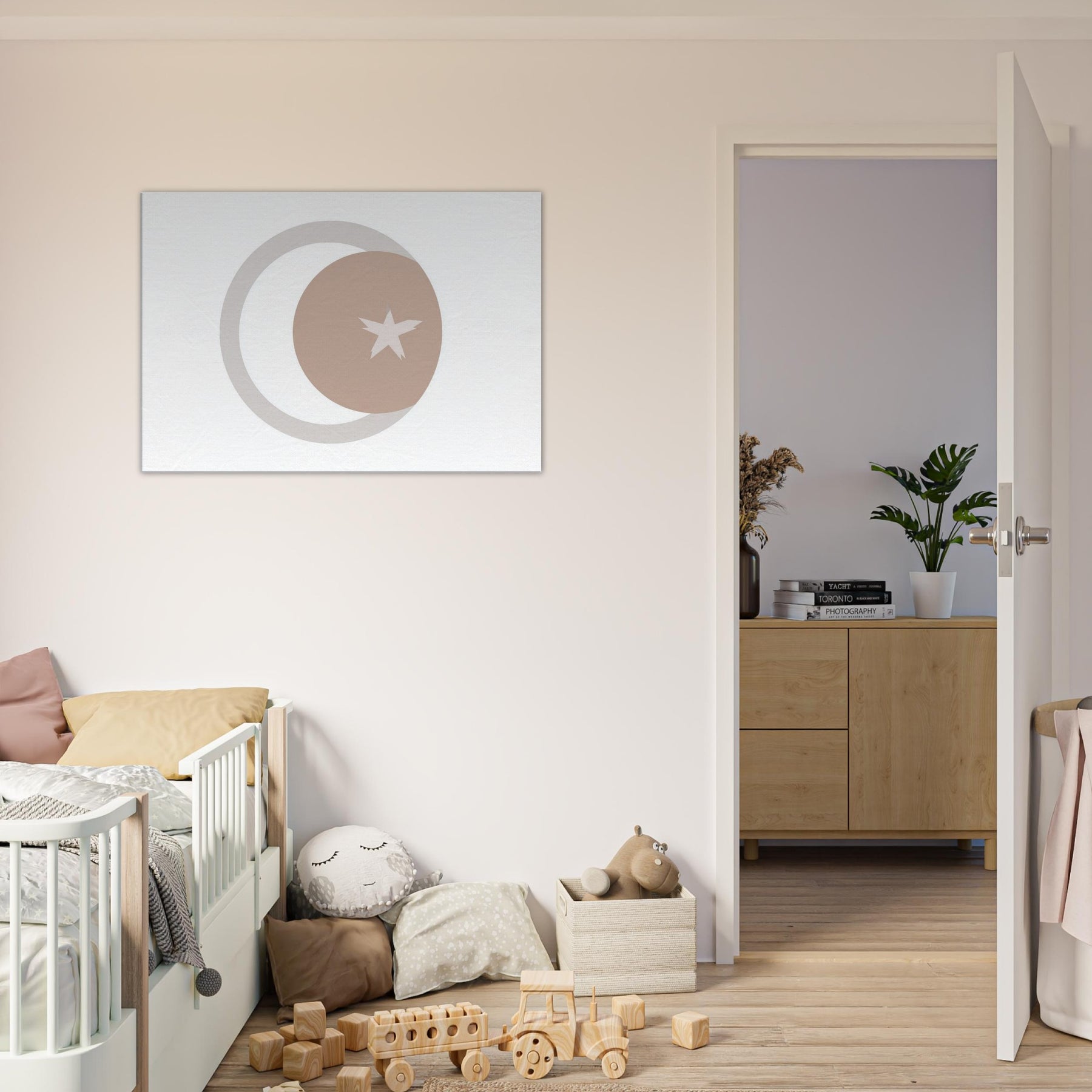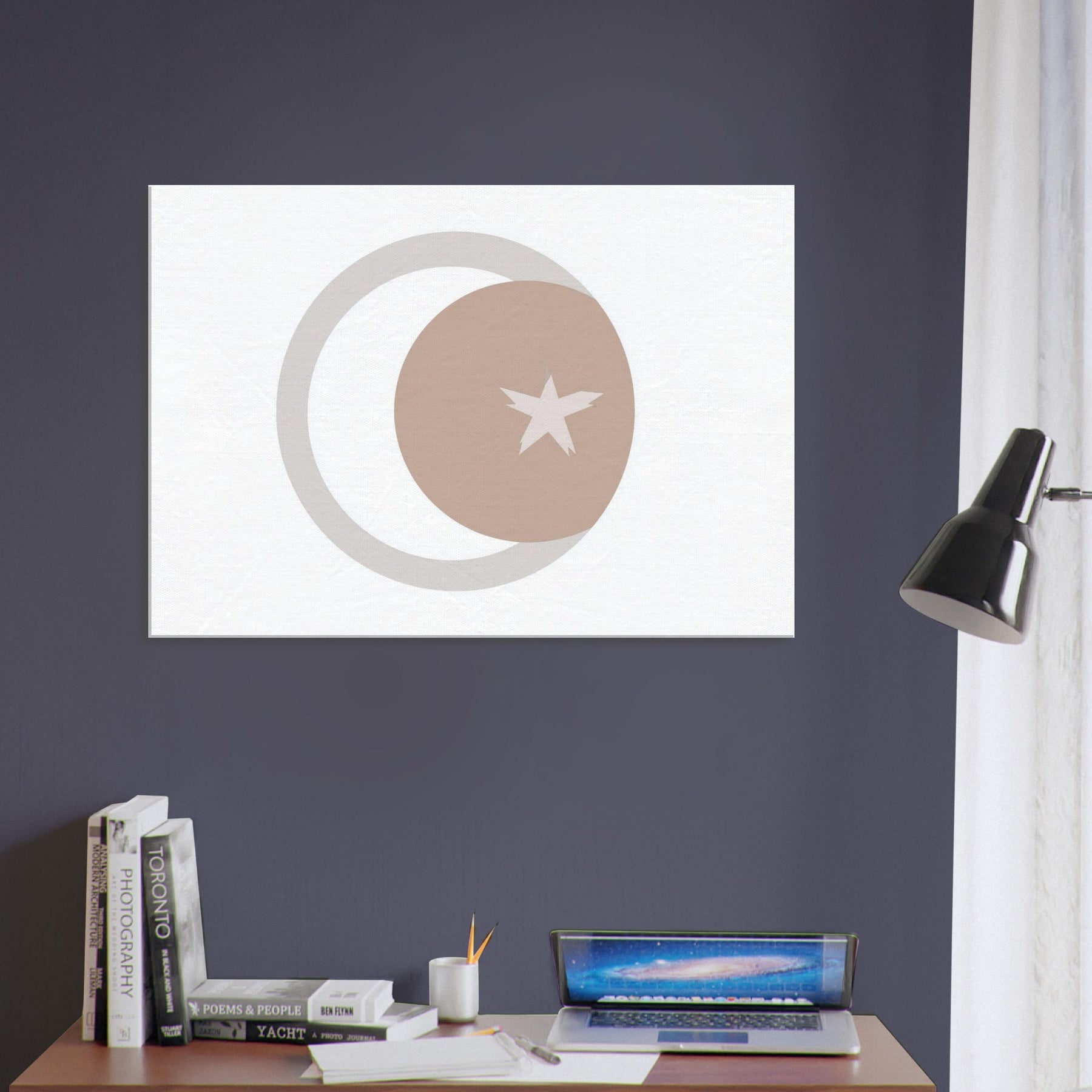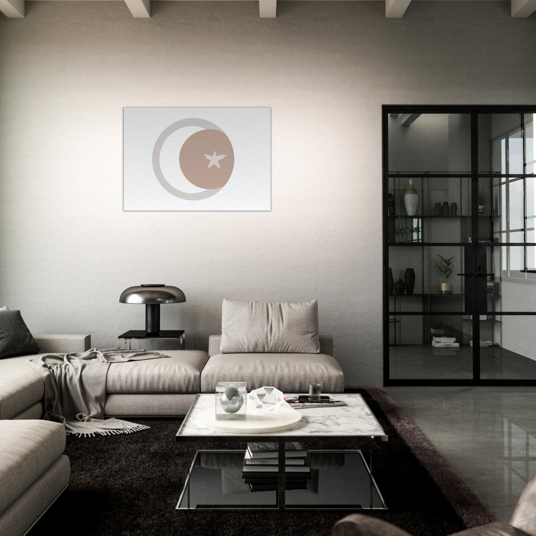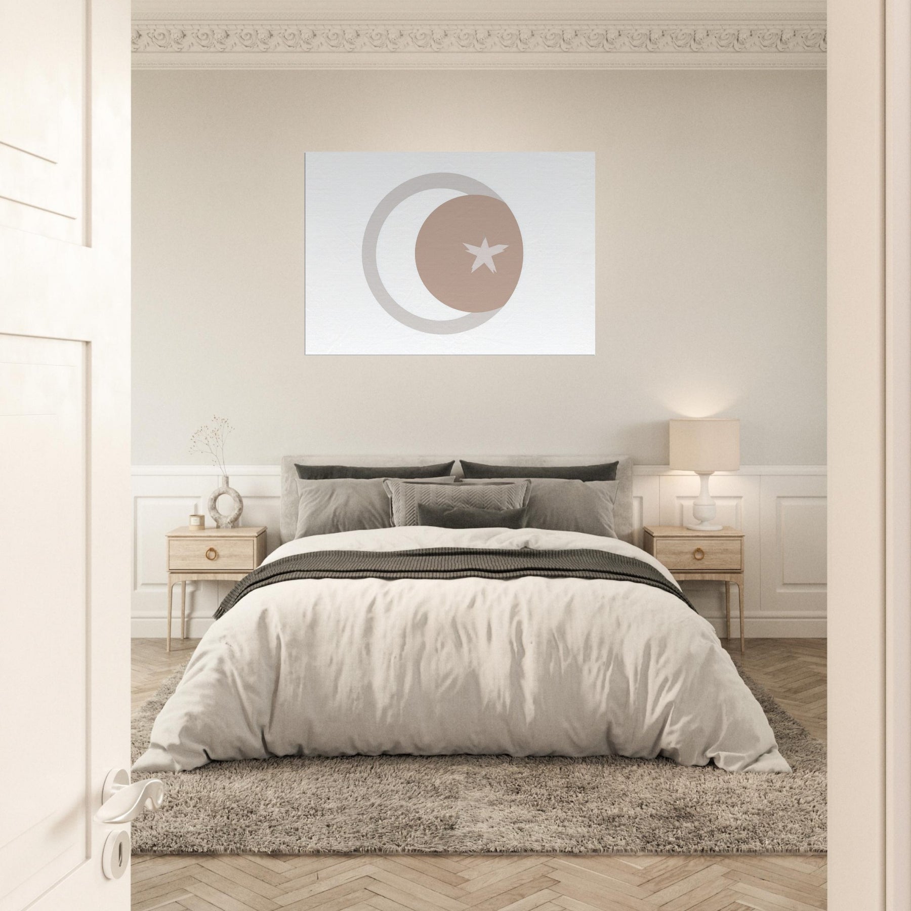 Let the eye drift in a quiet orbit as Crescent & Star unfolds in soft taupe and creamy ivory. This minimalist, mystical composition casts a serene ambiance that invites calm rather than distraction, turning walls into a sanctuary. The crescent cradles a gentle circle, while a subtle star adds a focal glimmer enough to spark reflection without shouting. Place it above a sofa or bed, and watch how the room breathes: lighter, more contemplative, and suddenly more yours. The central subject is Crescent & Star (Minimal).