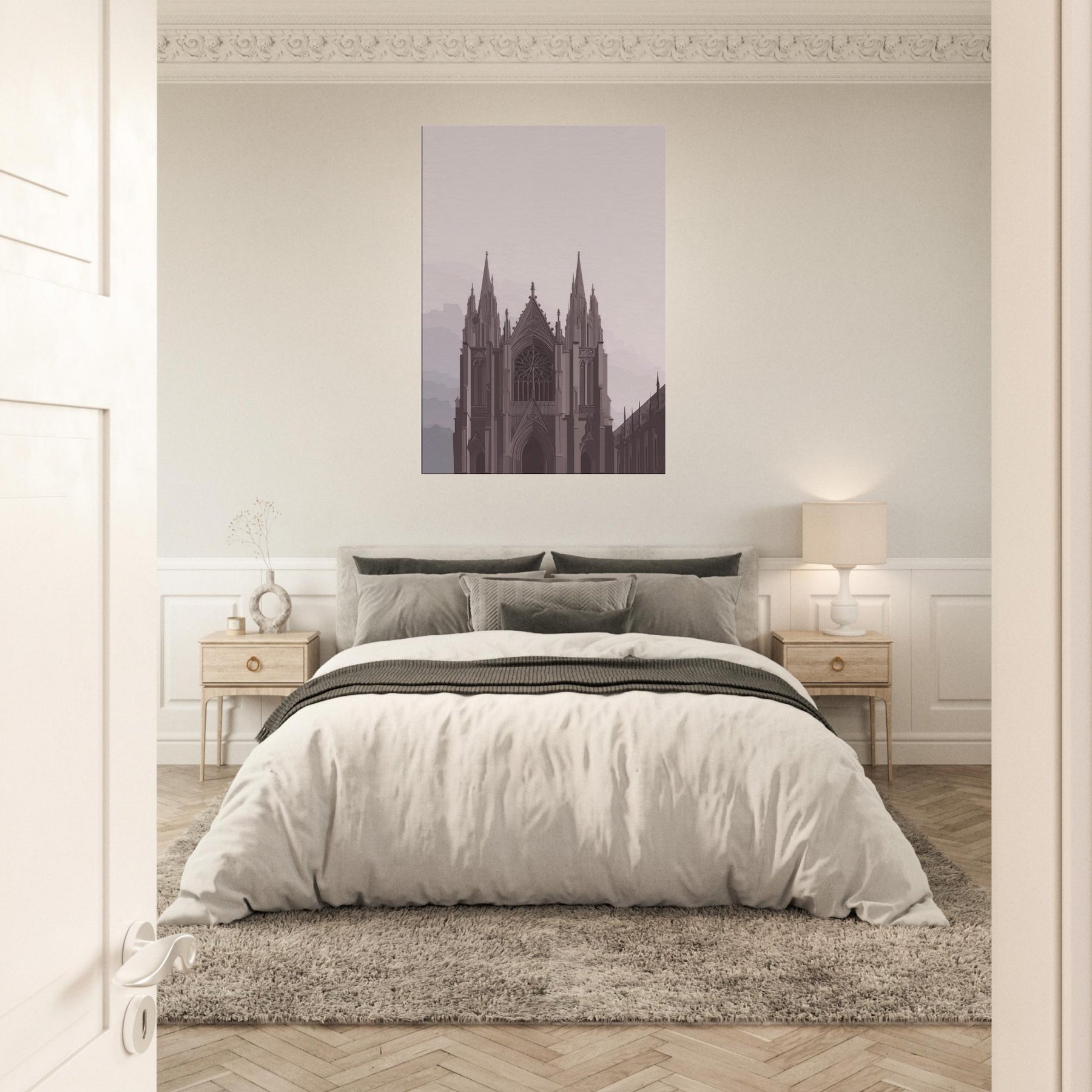 Step into a hush of stone and light with this minimalist portrayal of a Gothic Cathedral. The lines rise in quiet precision, inviting calm and contemplation as if you stood beneath soaring arches at dawn. The subtle haze of color softens every silhouette, turning architecture into a meditative moment that graces your living space with sophistication. Perfect above a sofa or in a hallway nook, it adds architectural gravity, timeless elegance, and a whisper of sacred stillness to your home.