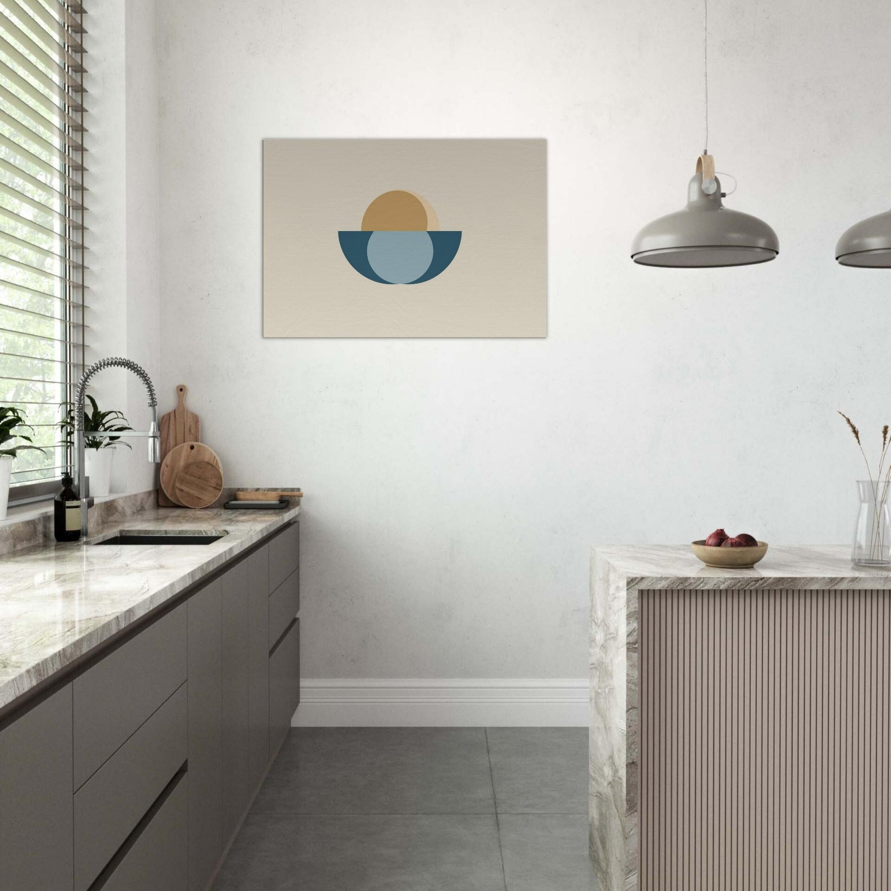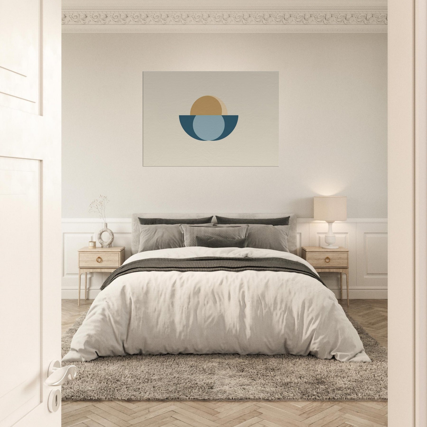 In a quiet balance of light and shape, this piece offers a contemplative meditation on Moon Phases. Minimalist forms drift across a soft, sand toned backdrop, where dawn and night meet in a hush of color. The geometry feels timeless, inviting a serene focus that lingers beside you as you unwind, read, or dream. Its mystical mood enriches a living space with a sense of orbit and ease, turning everyday walls into a quiet horizon of reflection.
