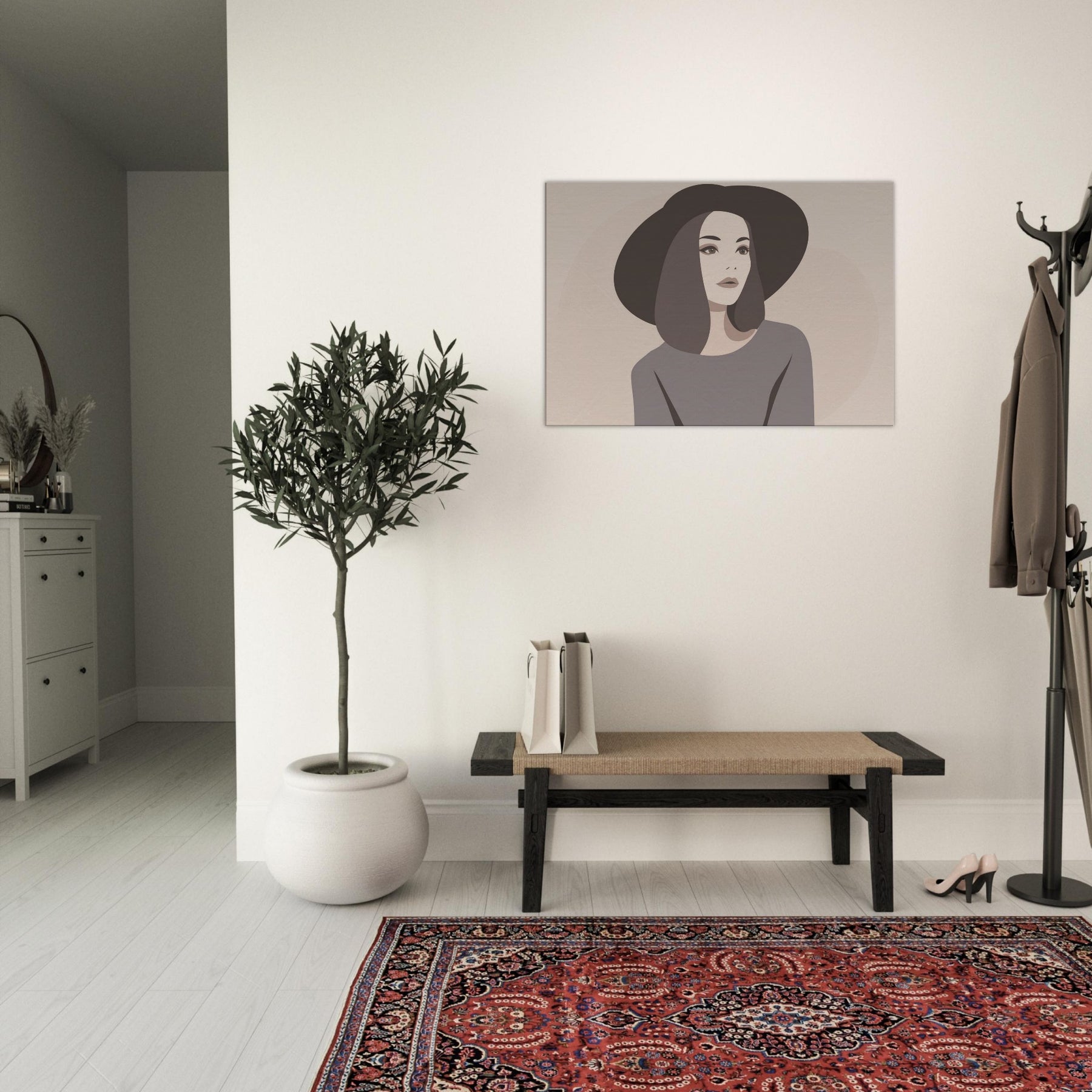 Immerse your space in a quiet, confident moment with this minimalist study of a Woman with Hat. Subtle, fluid shapes and a restrained, sand toned palette create a soft, ambient presence that feels both intimate and grand. The calm atmosphere invites reflection, while the hat's silhouette adds a gentle drama that anchors a room without shouting. Ideal for living rooms or bedrooms, this artwork brings refined serenity, tactile warmth, and a timeless focal point that elevates everyday moments into a ritual of style.