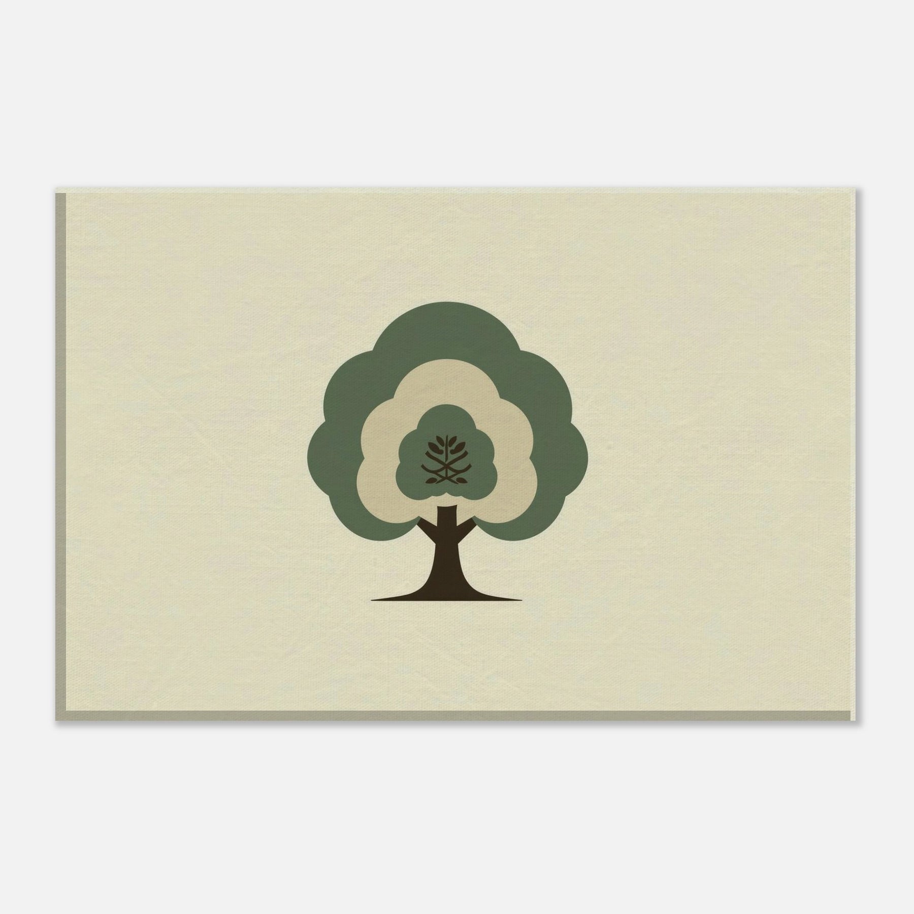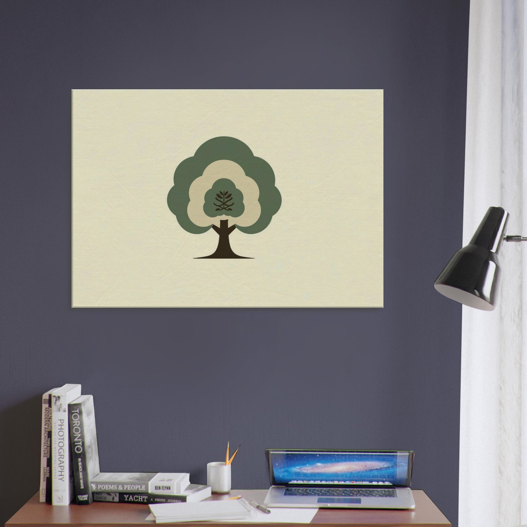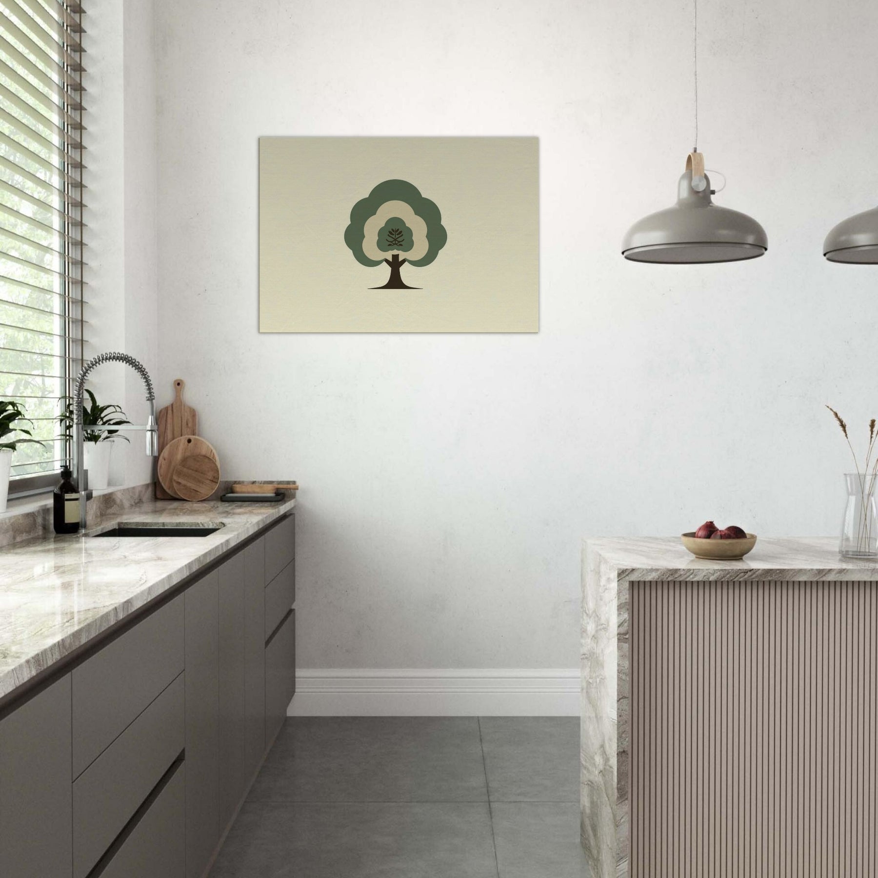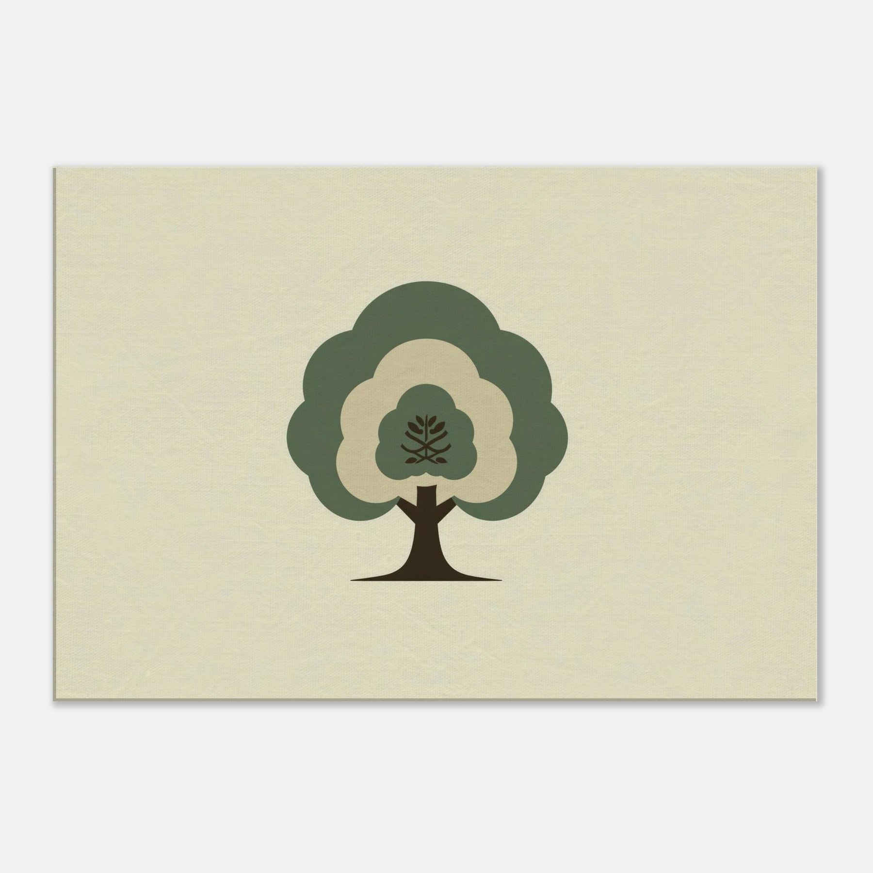 Delicate yet deeply resonant, this minimalist Tree of Life invites quiet reflection. The design traces growth through gentle, concentric forms and earthy greens that echo forest light, while a warm brown trunk anchors the scene. It evokes mystery and wonder, transforming a living room into a sanctuary where every glance feels a breath slower and more sure. Perfect for walls that crave balance, it pairs with natural textures to cultivate a serene, contemplative ambiance.