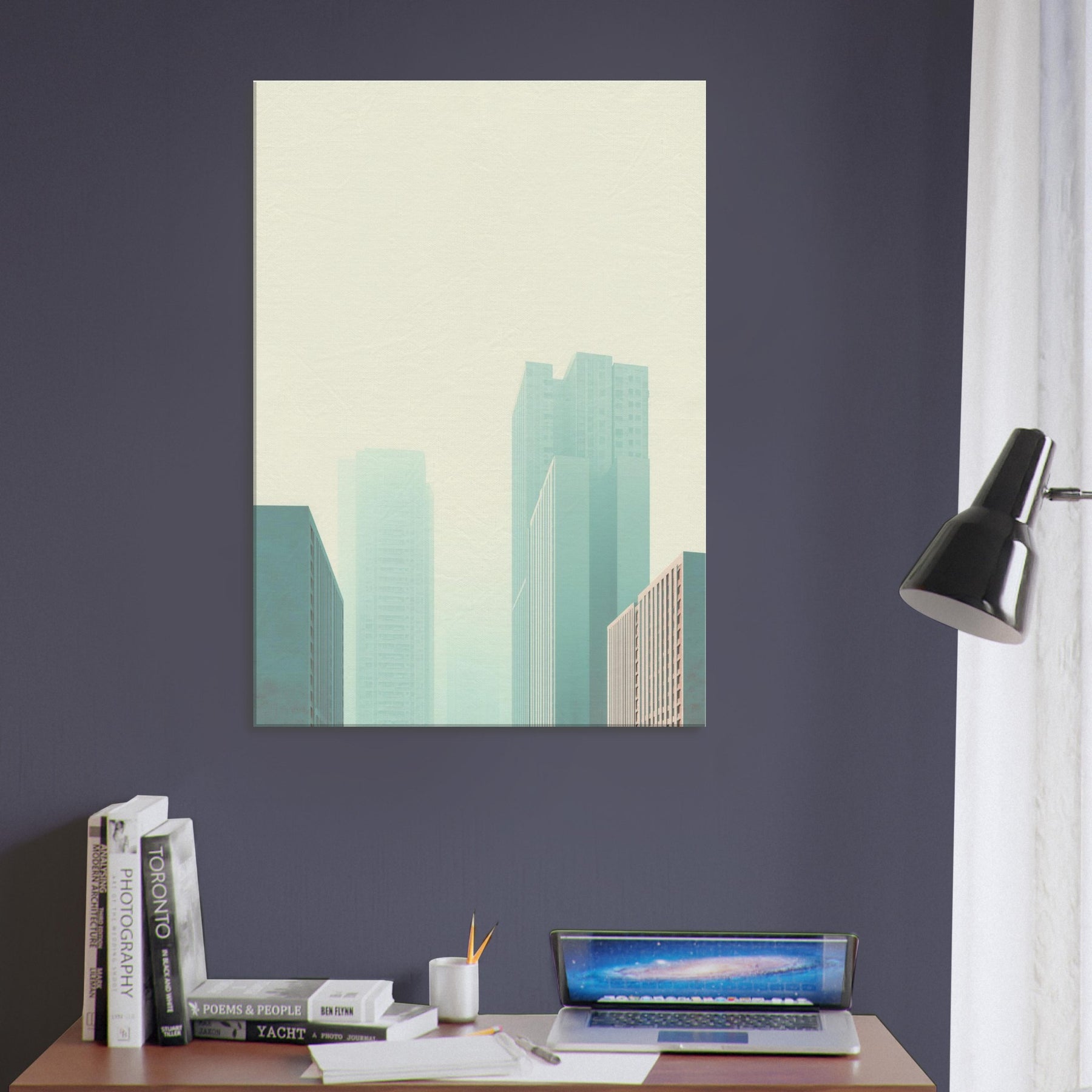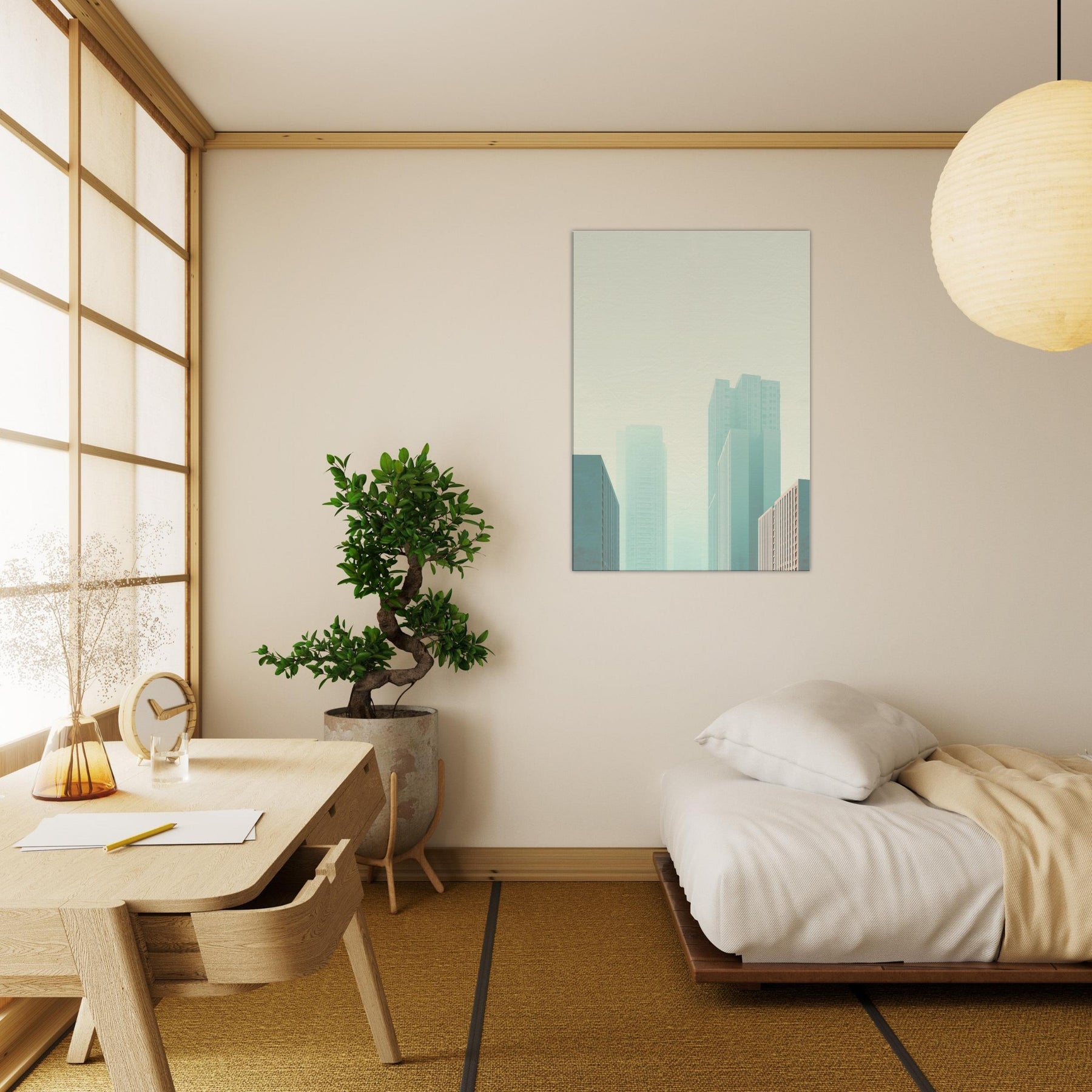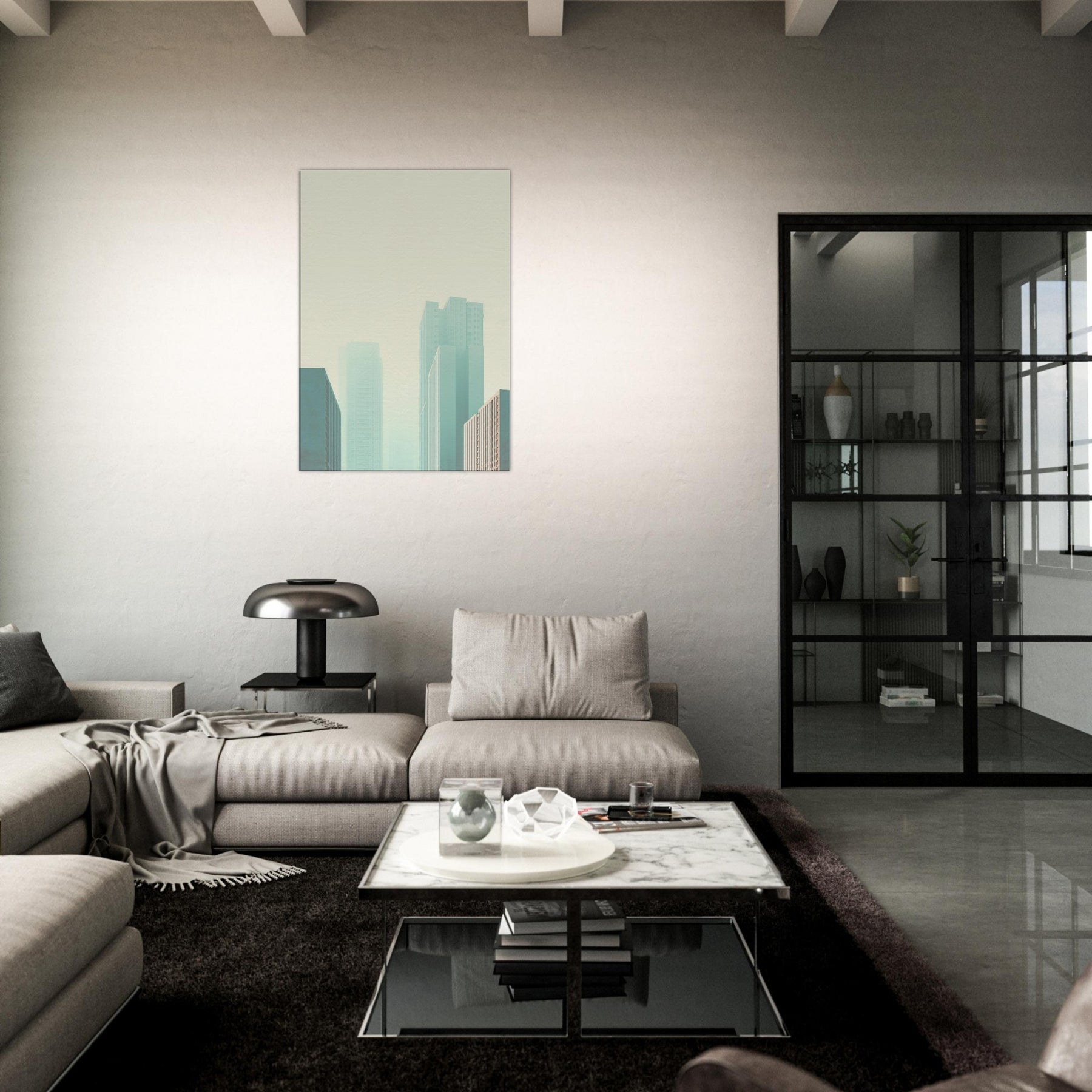 A minimalist vision of a Cyberpunk City unfolds in cool, luminous tones, inviting the eye to drift along sleek towers and pale reflections. The piece breathes quiet futurism, where neon edges glow with restraint rather than riot, creating atmosphere rather than noise. Hang this in a living room or study to conjure a serene urban horizon an ambient soundtrack in still image form, shaping mood, light, and conversation. A refined anchor for modern interiors.