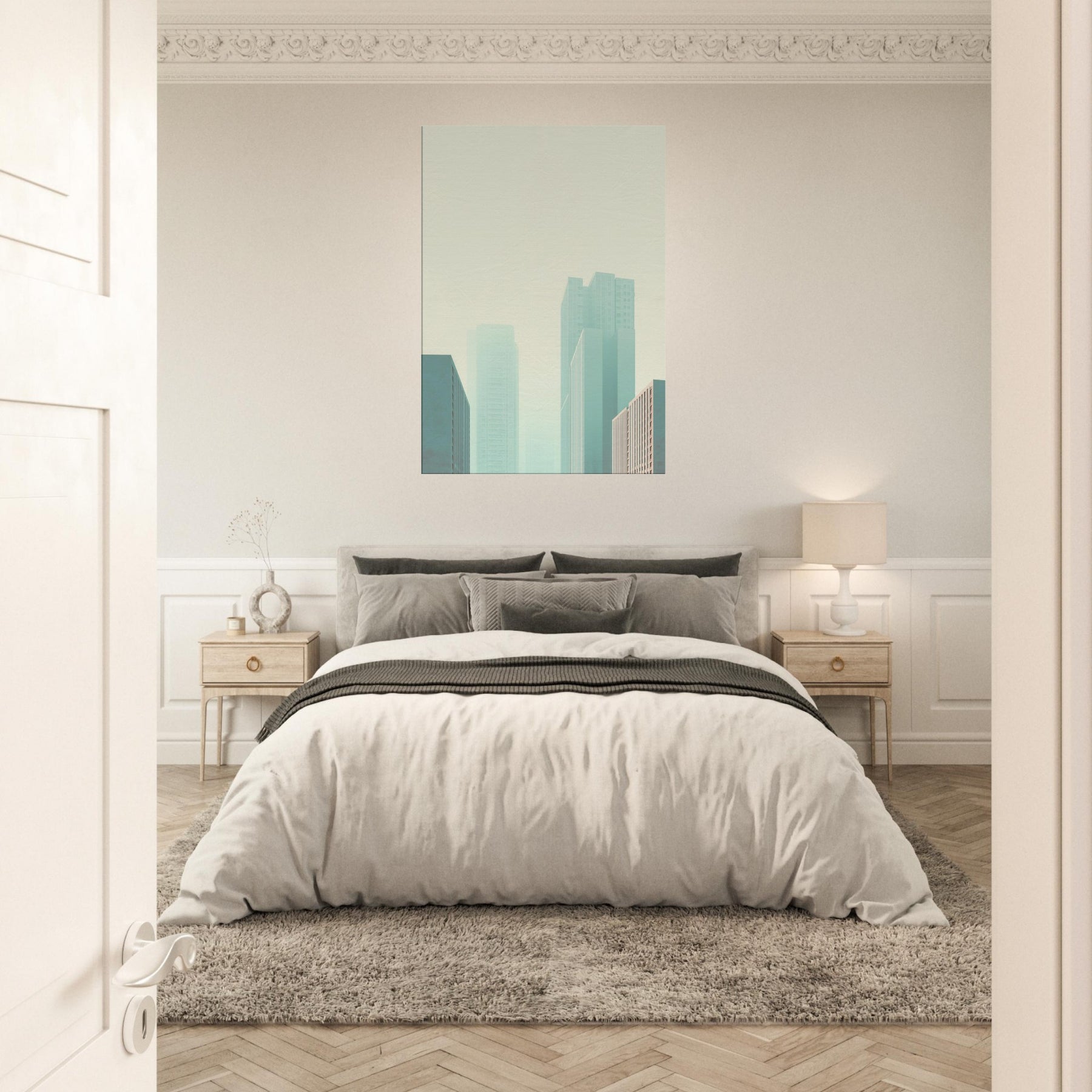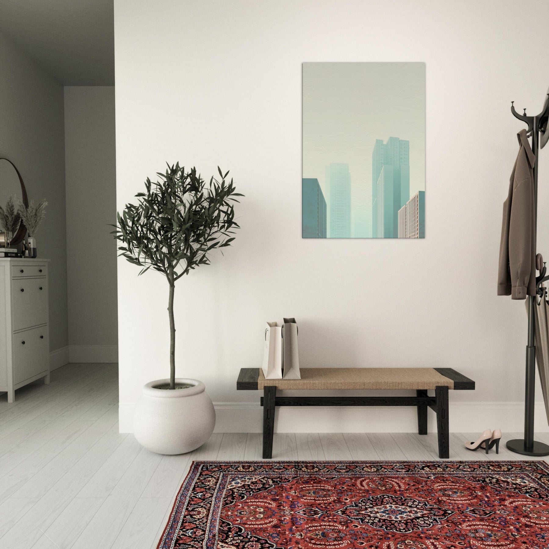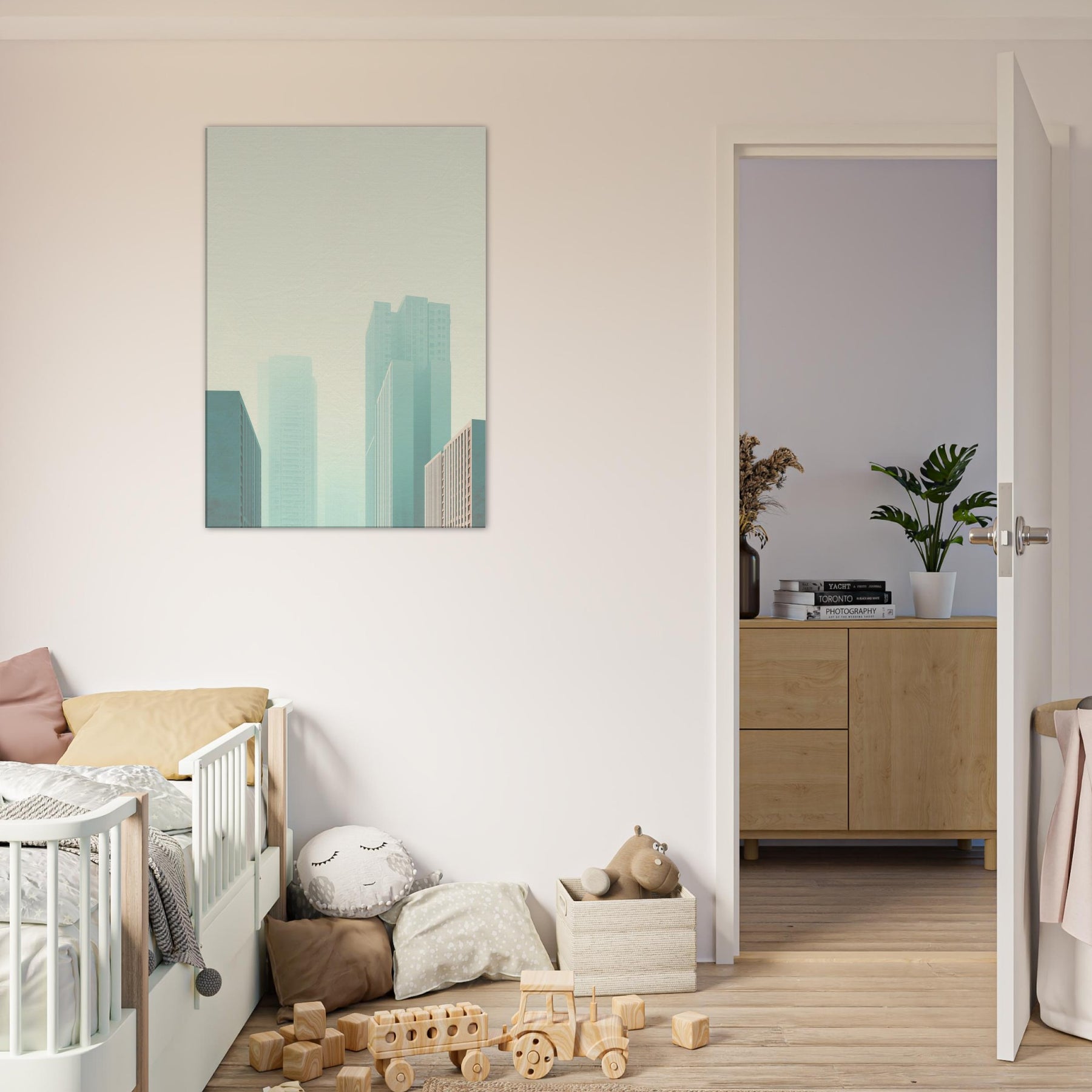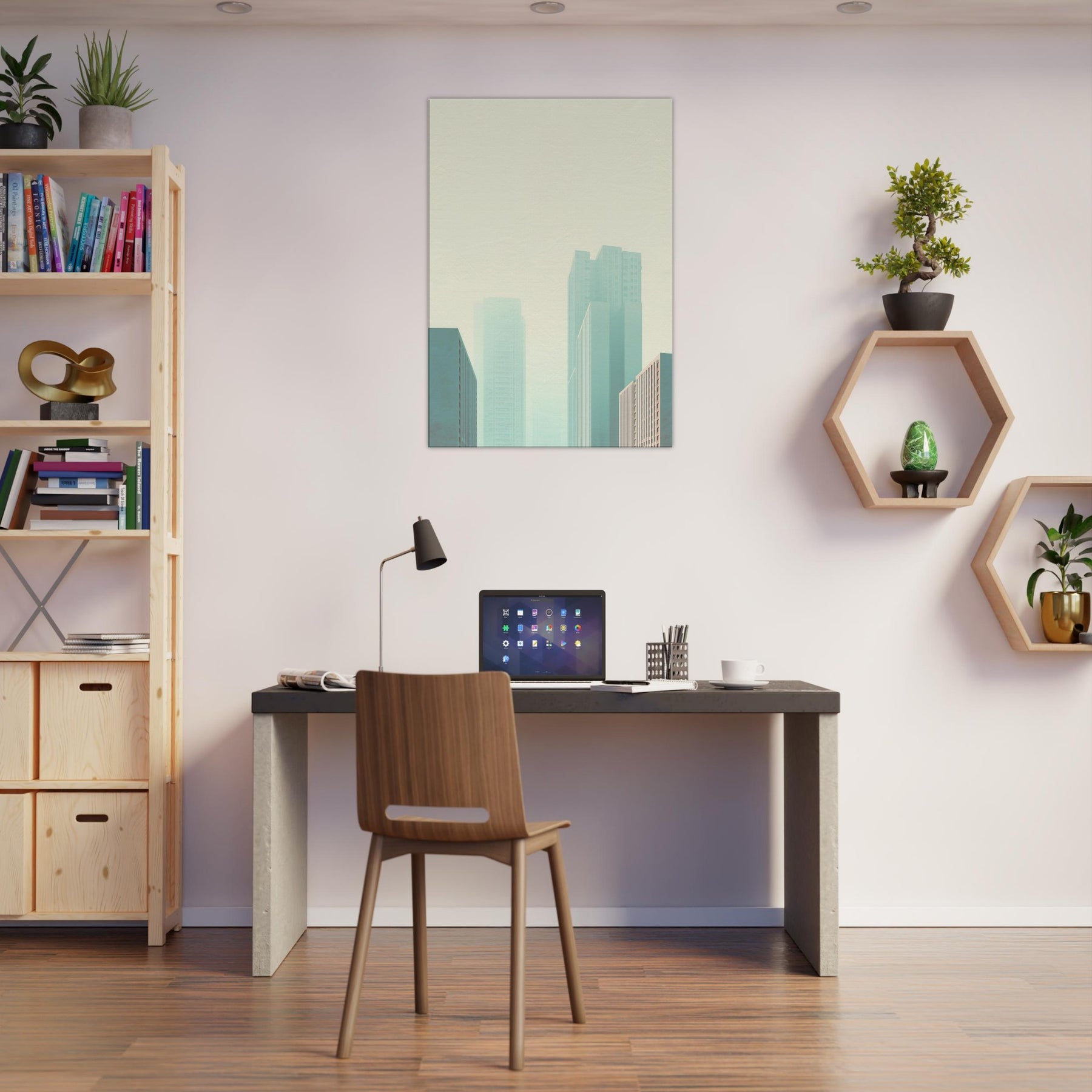 A minimalist vision of a Cyberpunk City unfolds in cool, luminous tones, inviting the eye to drift along sleek towers and pale reflections. The piece breathes quiet futurism, where neon edges glow with restraint rather than riot, creating atmosphere rather than noise. Hang this in a living room or study to conjure a serene urban horizon an ambient soundtrack in still image form, shaping mood, light, and conversation. A refined anchor for modern interiors.