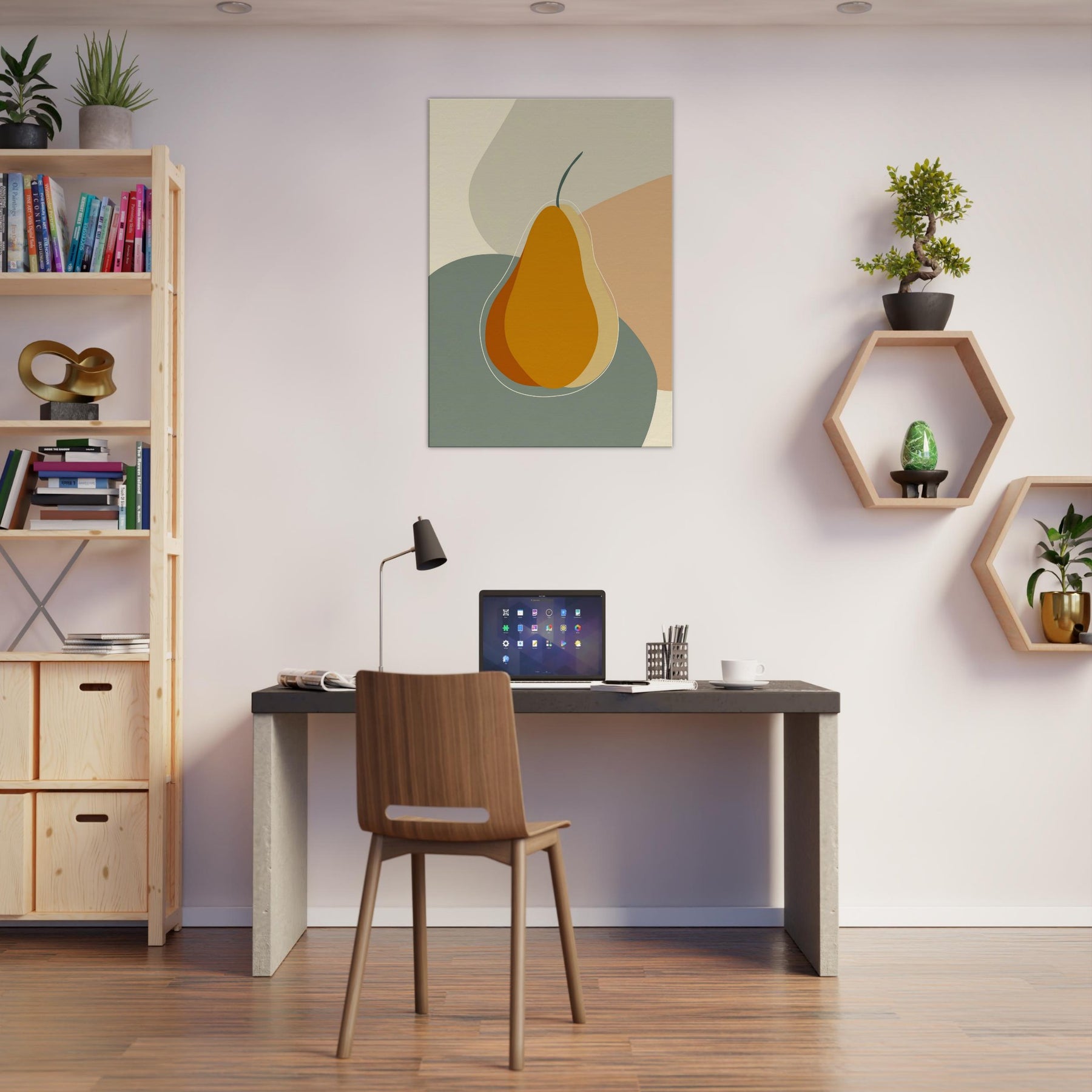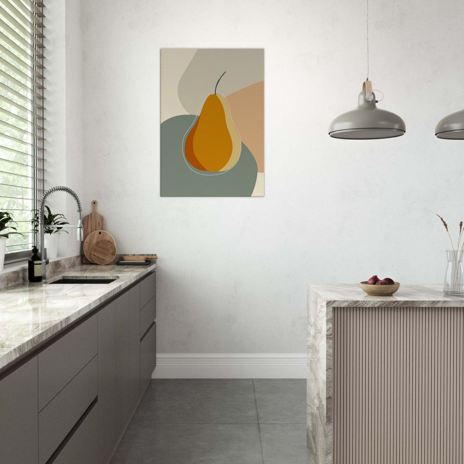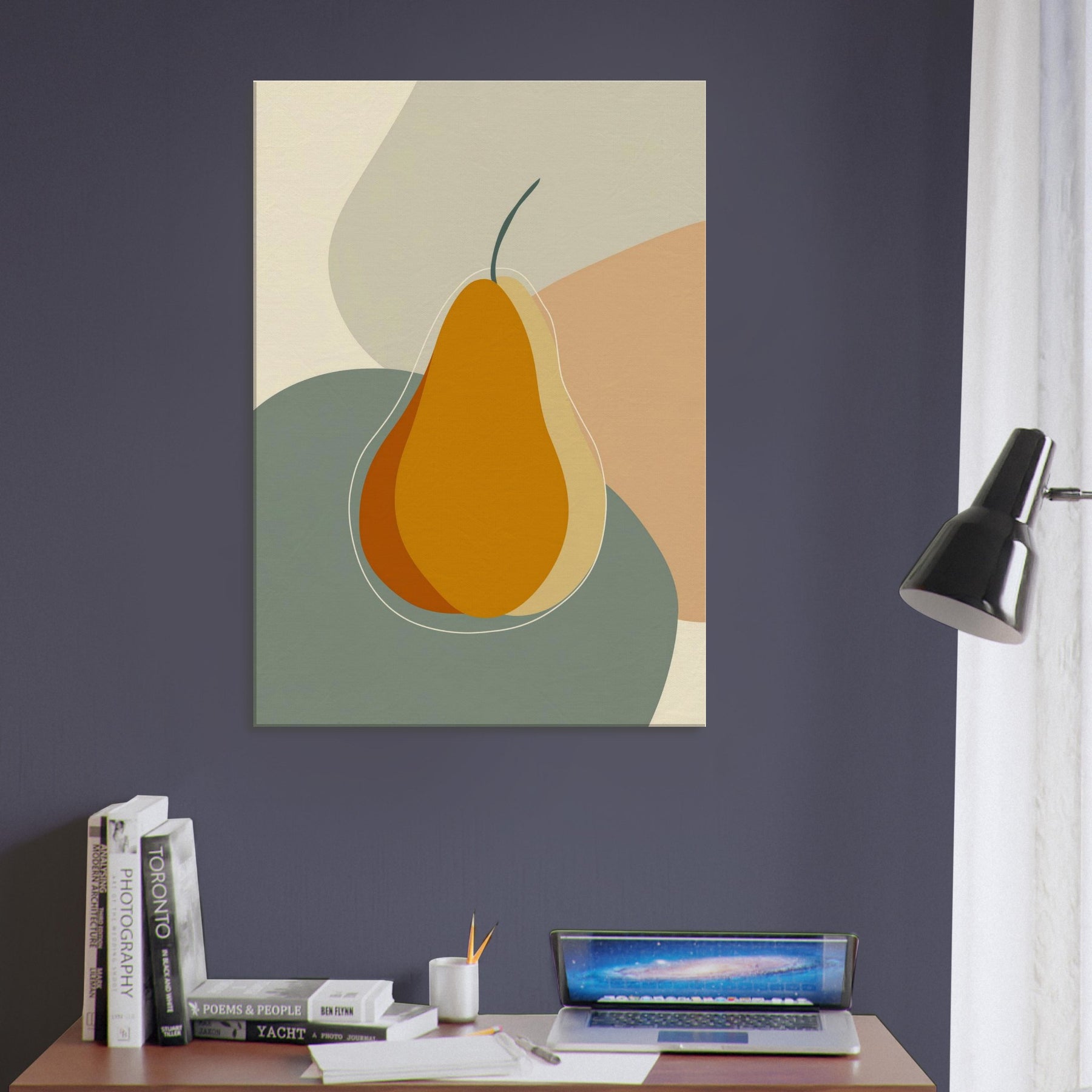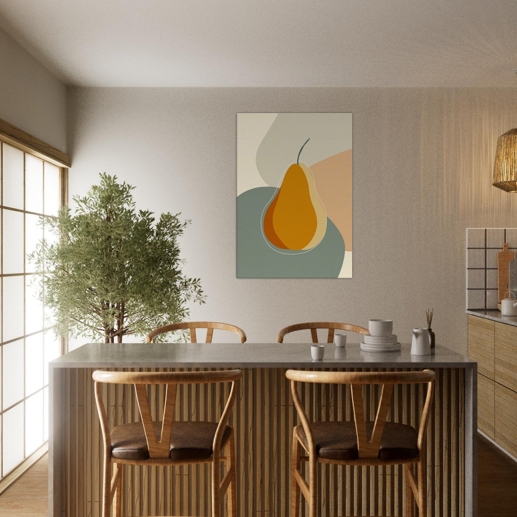 Pears on Plate rests in a quiet, sunlit corner of the room, where soft shapes meet clean lines. This minimalist composition invites a slow breath as color blocks drift around a single pear, its warm amber glow anchoring the scene. The balance of muted beiges, greens, and clay tones creates a serene backdrop that enhances kitchen counters and living nooks alike. A subtle, refined focal point, it elevates everyday moments with timeless, unhurried charm.