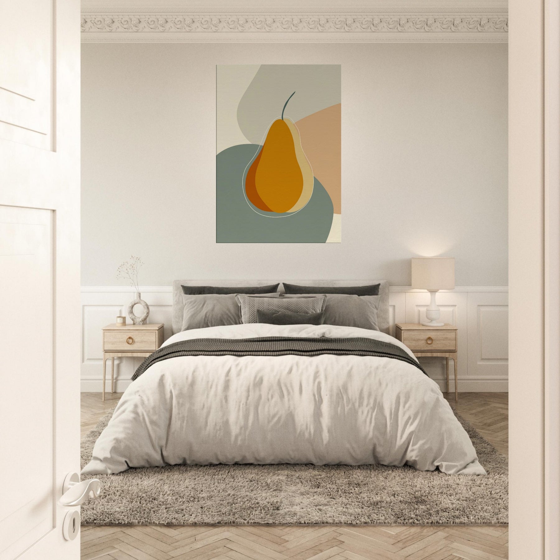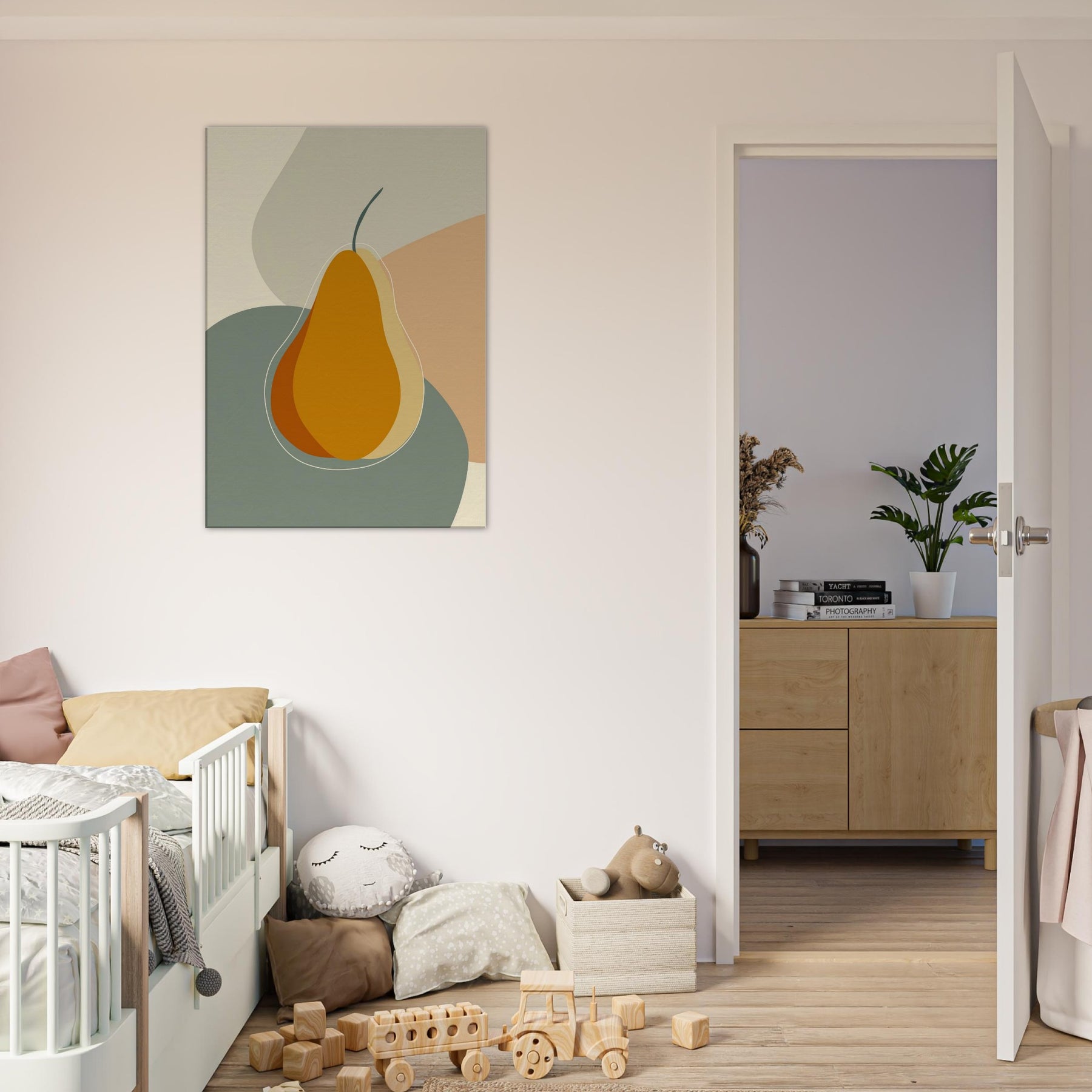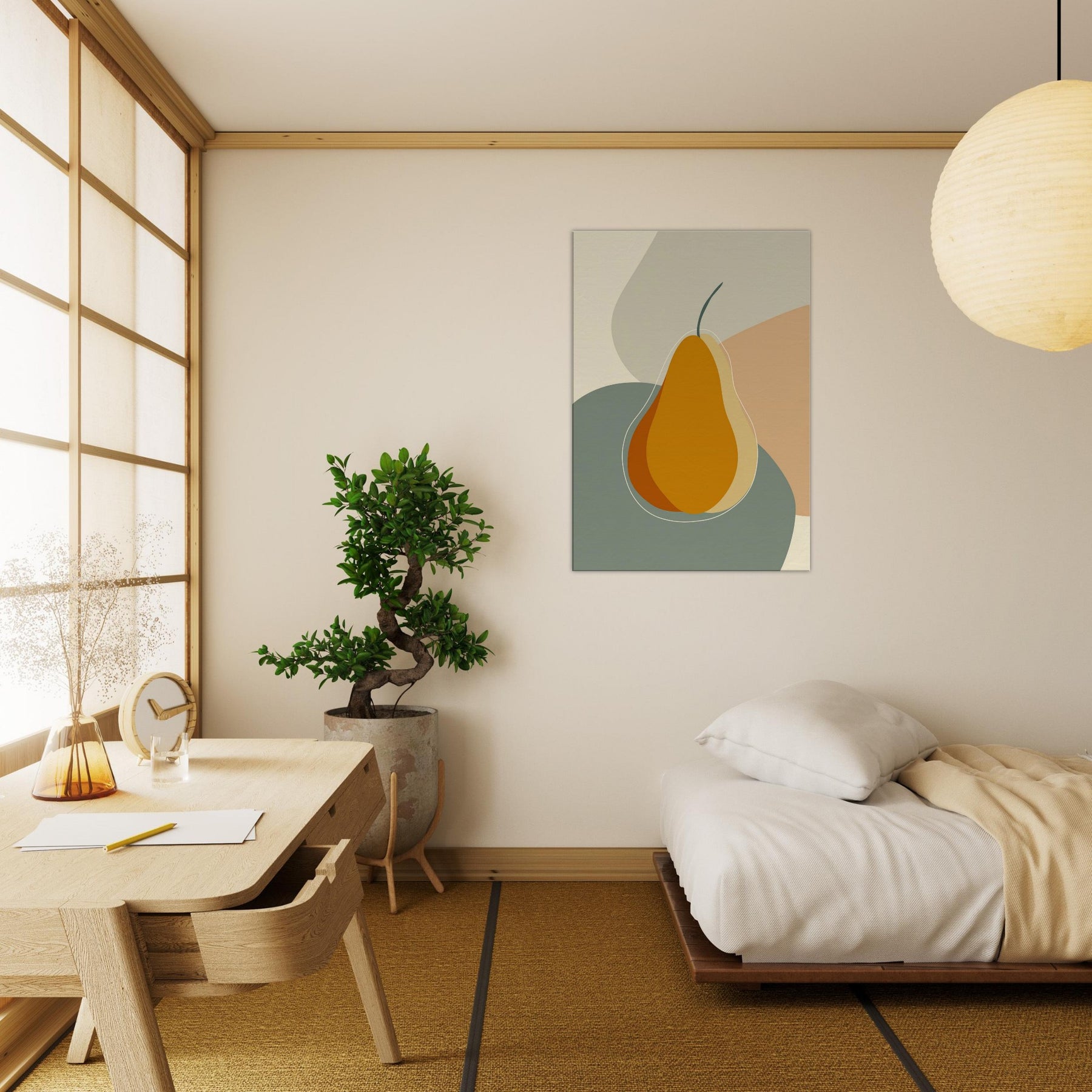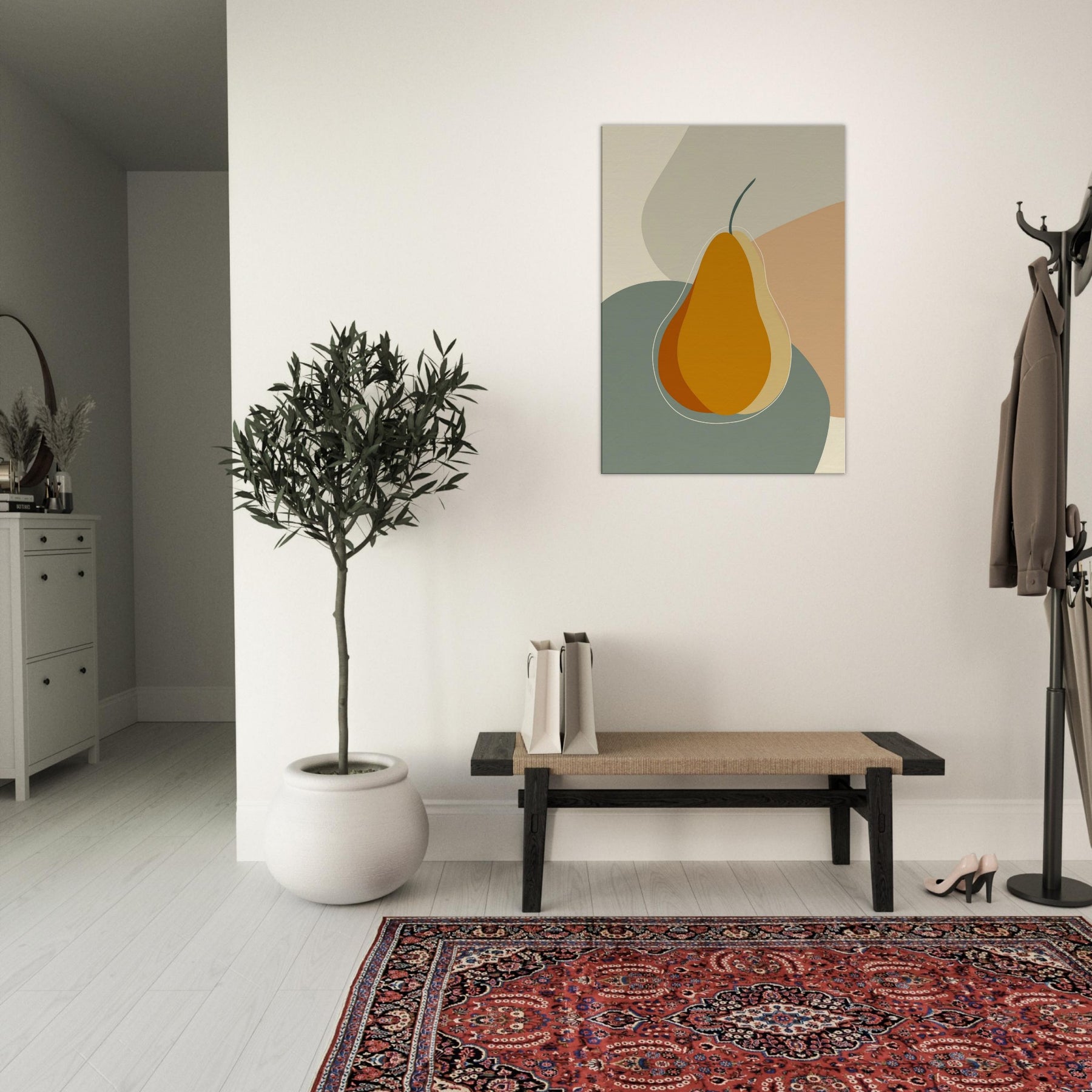 Pears on Plate rests in a quiet, sunlit corner of the room, where soft shapes meet clean lines. This minimalist composition invites a slow breath as color blocks drift around a single pear, its warm amber glow anchoring the scene. The balance of muted beiges, greens, and clay tones creates a serene backdrop that enhances kitchen counters and living nooks alike. A subtle, refined focal point, it elevates everyday moments with timeless, unhurried charm.