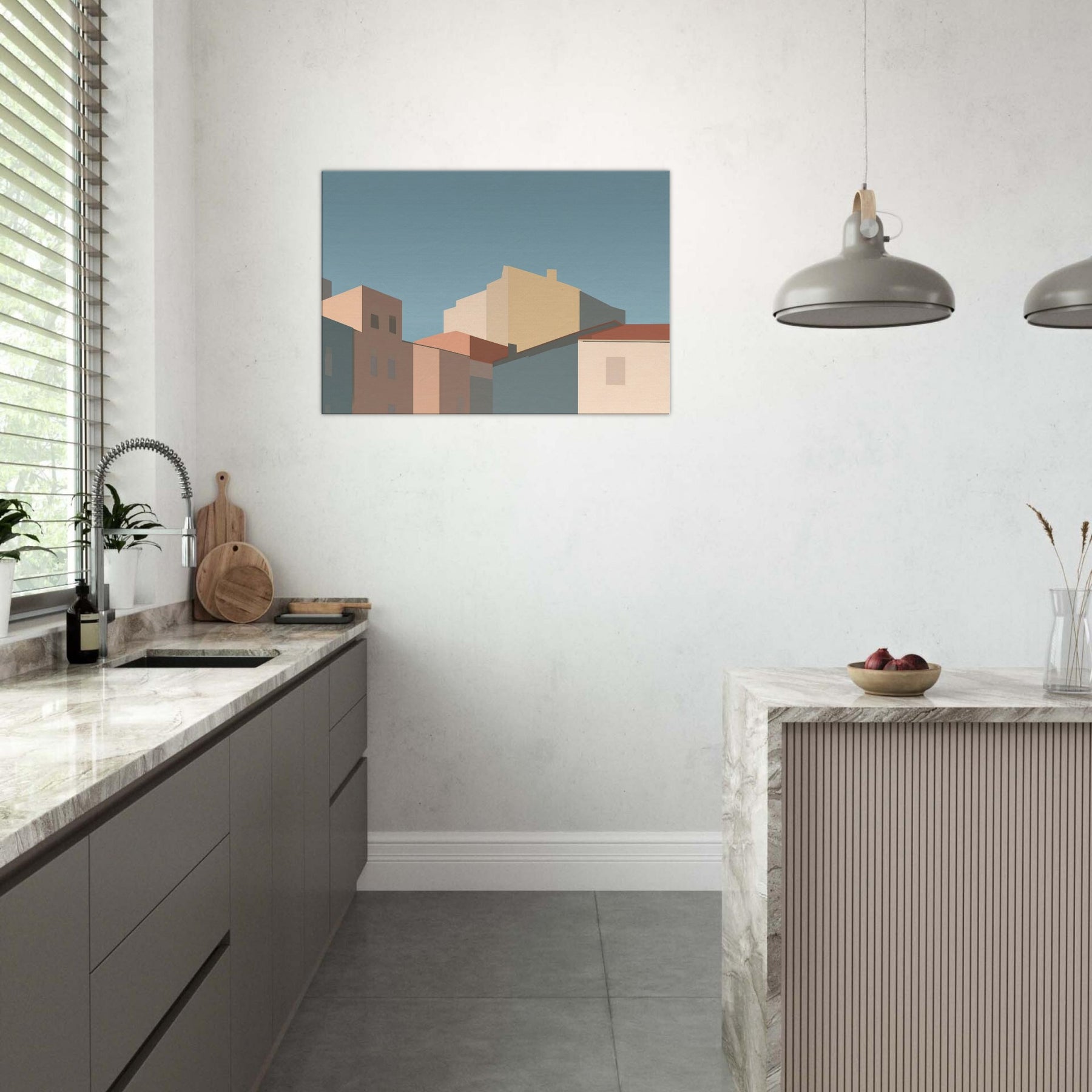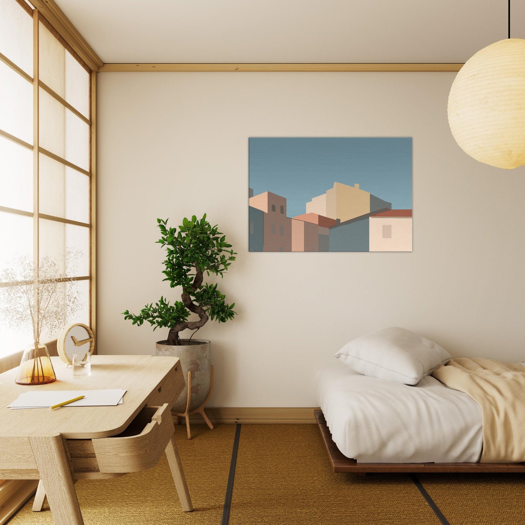 Prague unfolds in a refined chorus of soft shapes and quiet tones, where each block and corner becomes a breathing hush of light. The city's silhouettes are reduced to lyrical geometry, guiding the eye with gentle warmth across the canvas. This piece invites the room to exhale and settle, turning hallways into horizons and conversations into stillness. Hang it where daily rituals happen, above the sofa, at the dining nook, or beside the bed, and let Prague awaken calm and refined style.