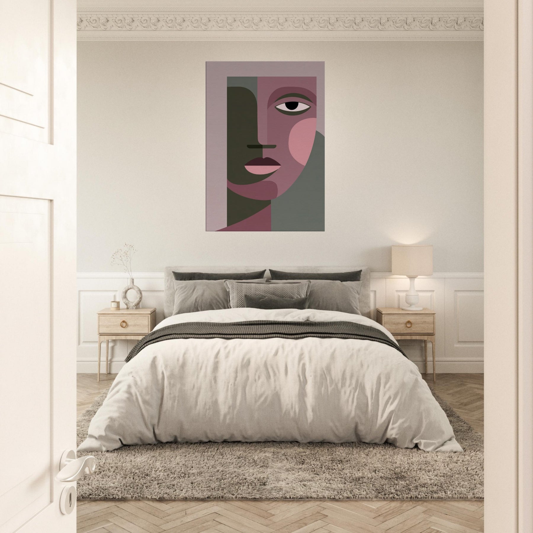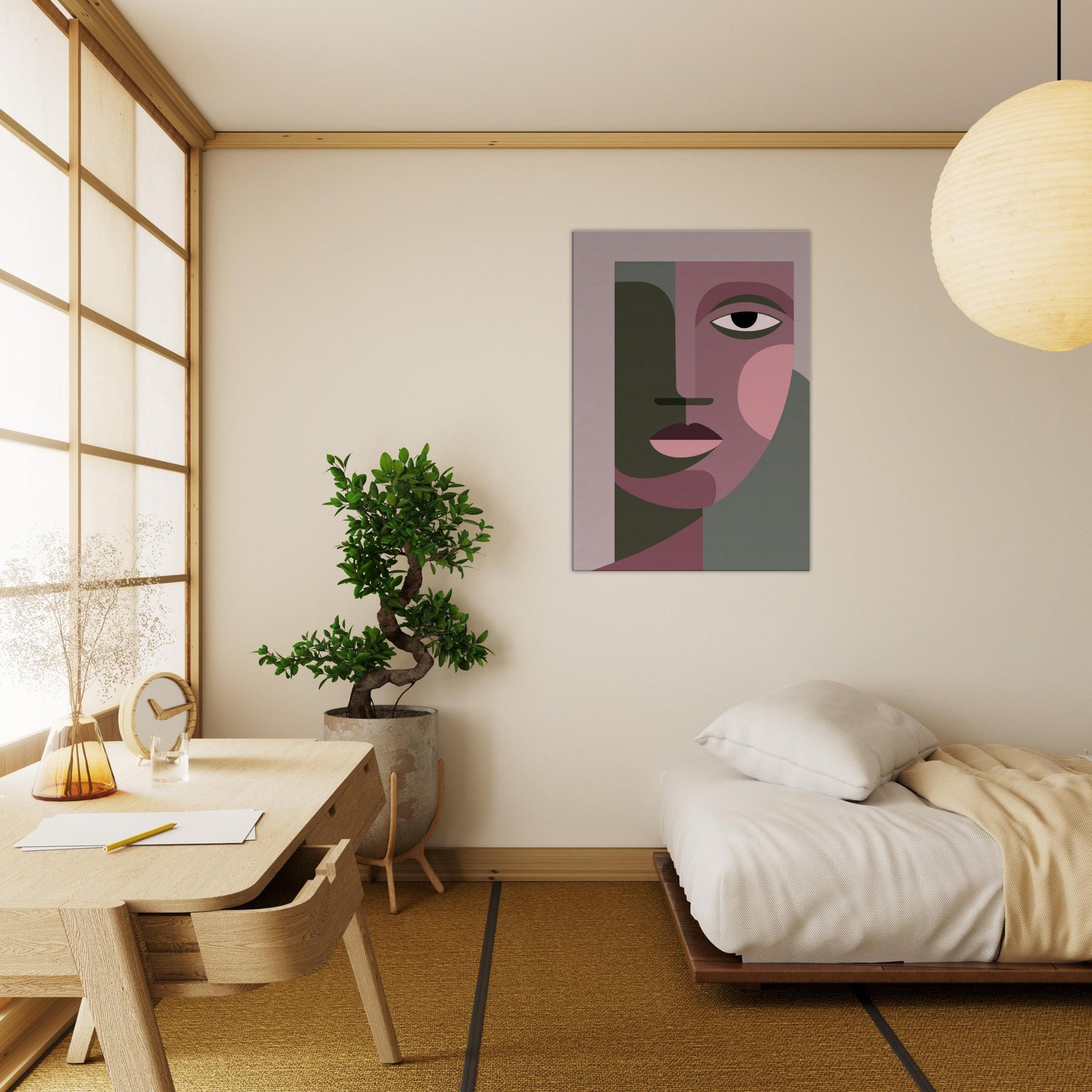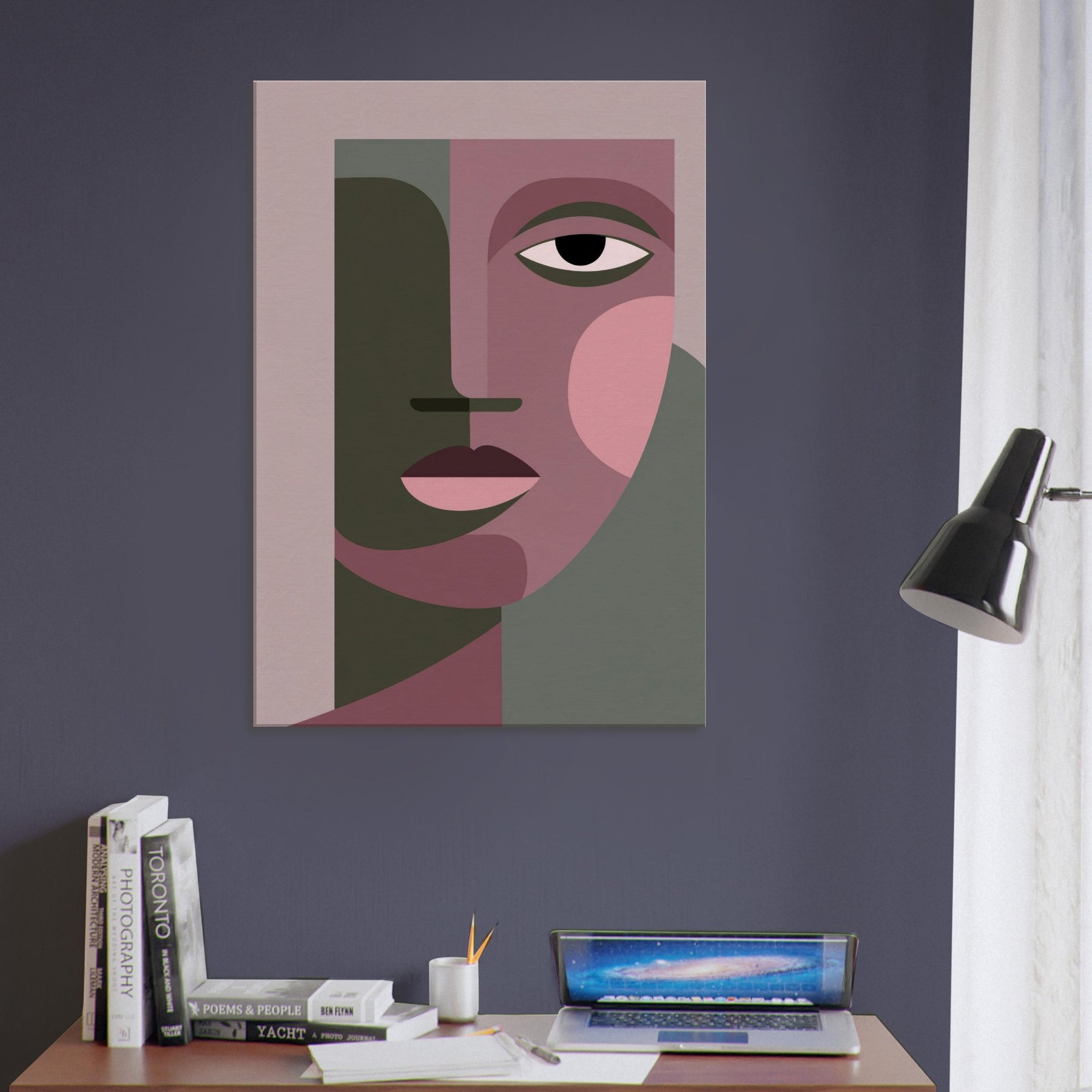 An elegant meditation on balance and silhouette, this Cubist Face dissolves the room into soft planes of rose, olive, and dusk. The minimalist composition invites the eye to drift and settle, as light shifts across the faces and bodies of the , revealing quiet emotions in each geometric curve. Hang it in a living room or hallway to savor the tension of color and line a calm, sculptural presence that warms a cool wall and sparks intimate conversations.