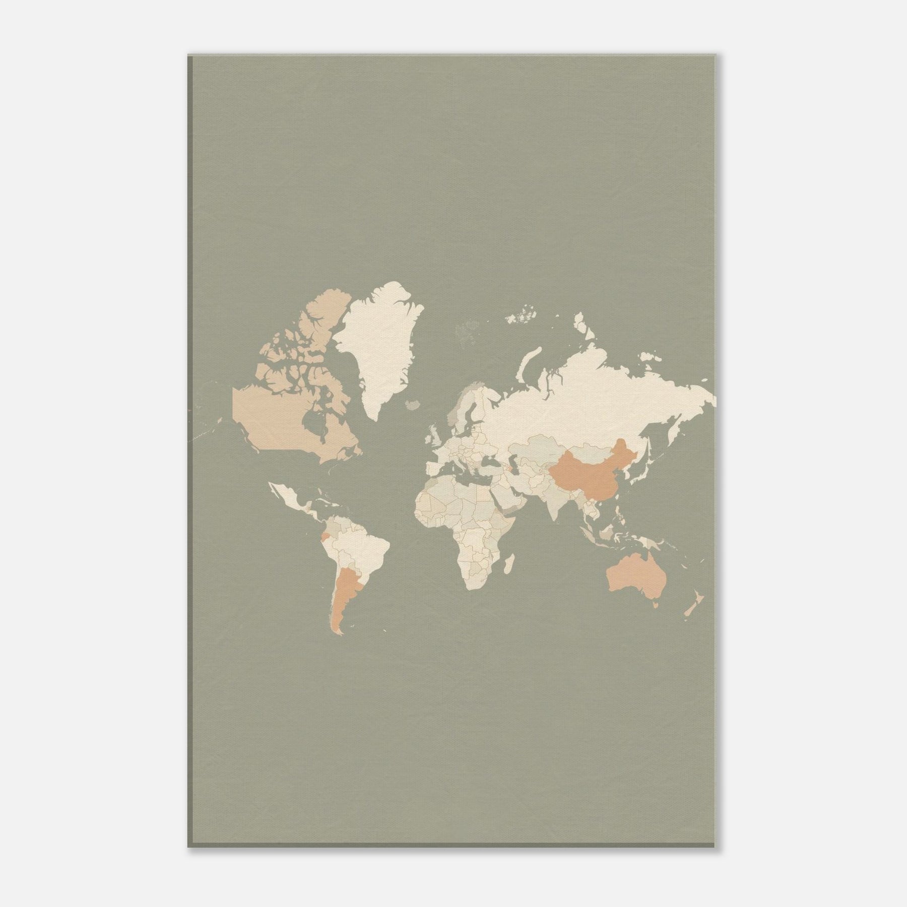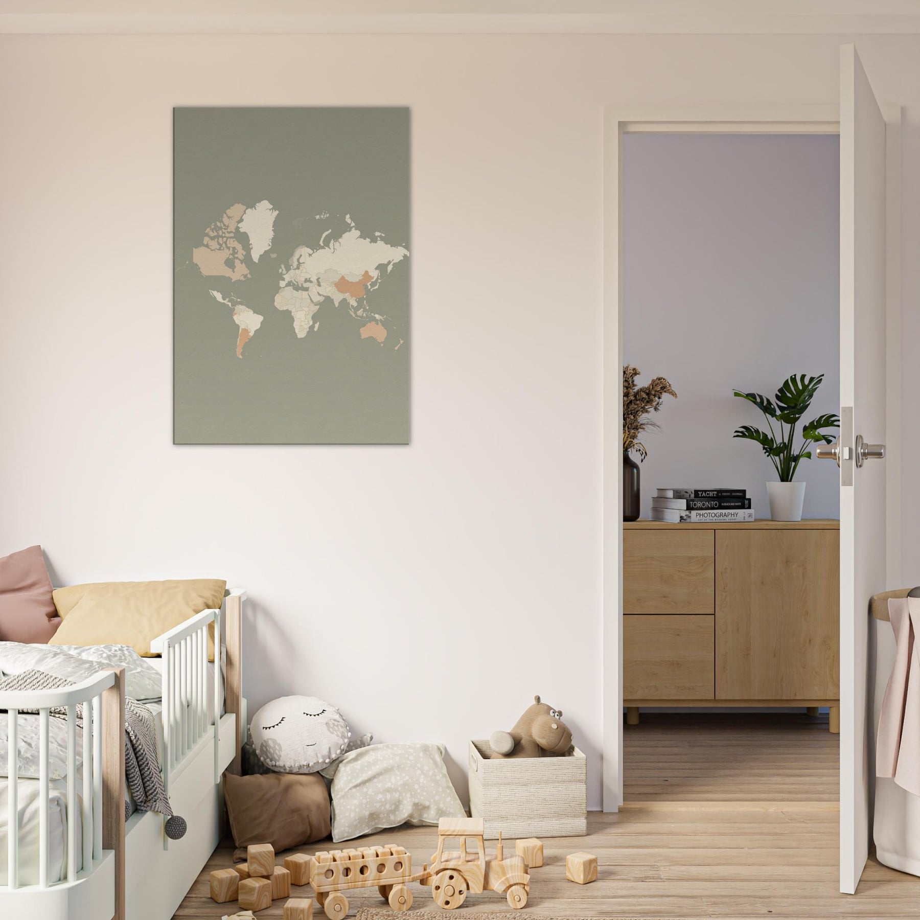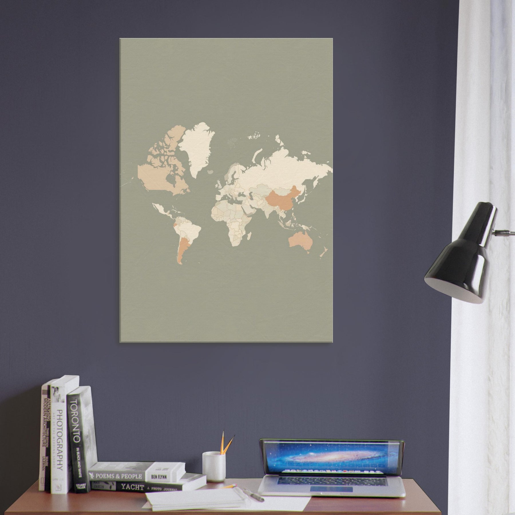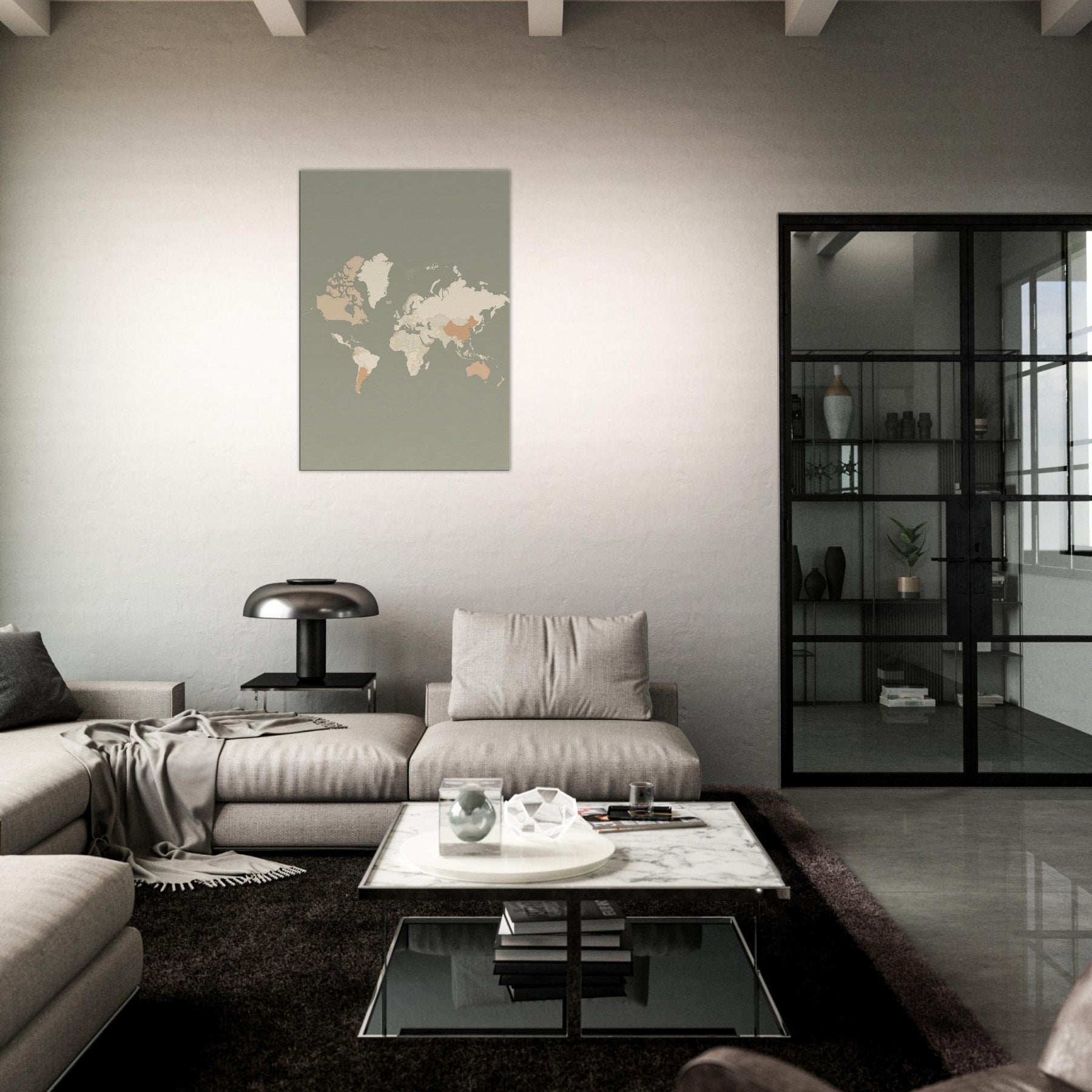 This World Map Outline invites a quiet, global gaze into your living space. The minimalist lines glide over a softly muted palette, where warm neutrals and peachy accents breathe life into the wall without shouting. It turns ordinary rooms into a calm horizon for memory and travel, a backdrop for conversation or contemplation. Hang it over a sofa or desk to anchor a space with subtle sophistication, texture, and a generous sense of scale.