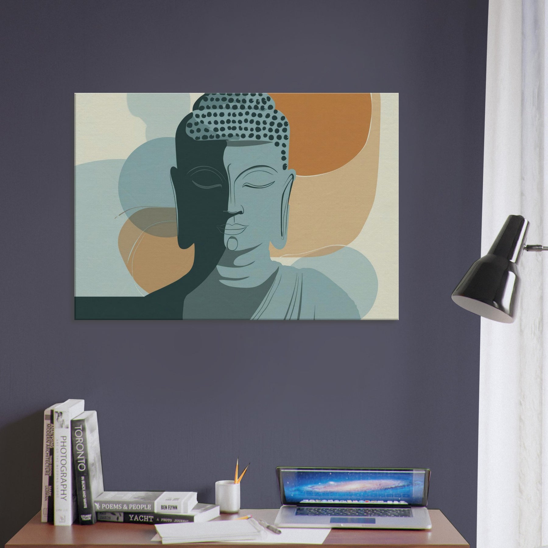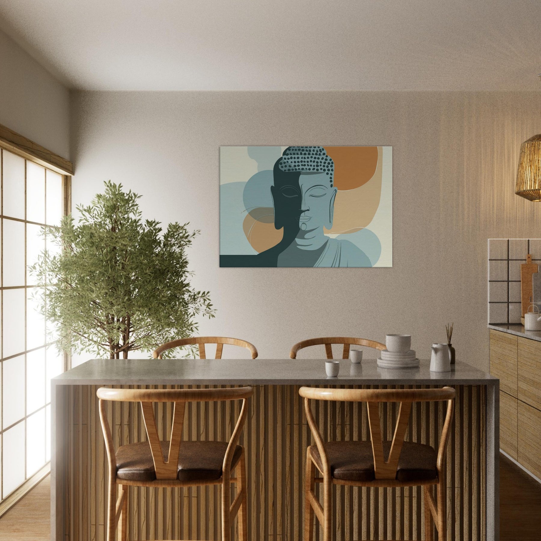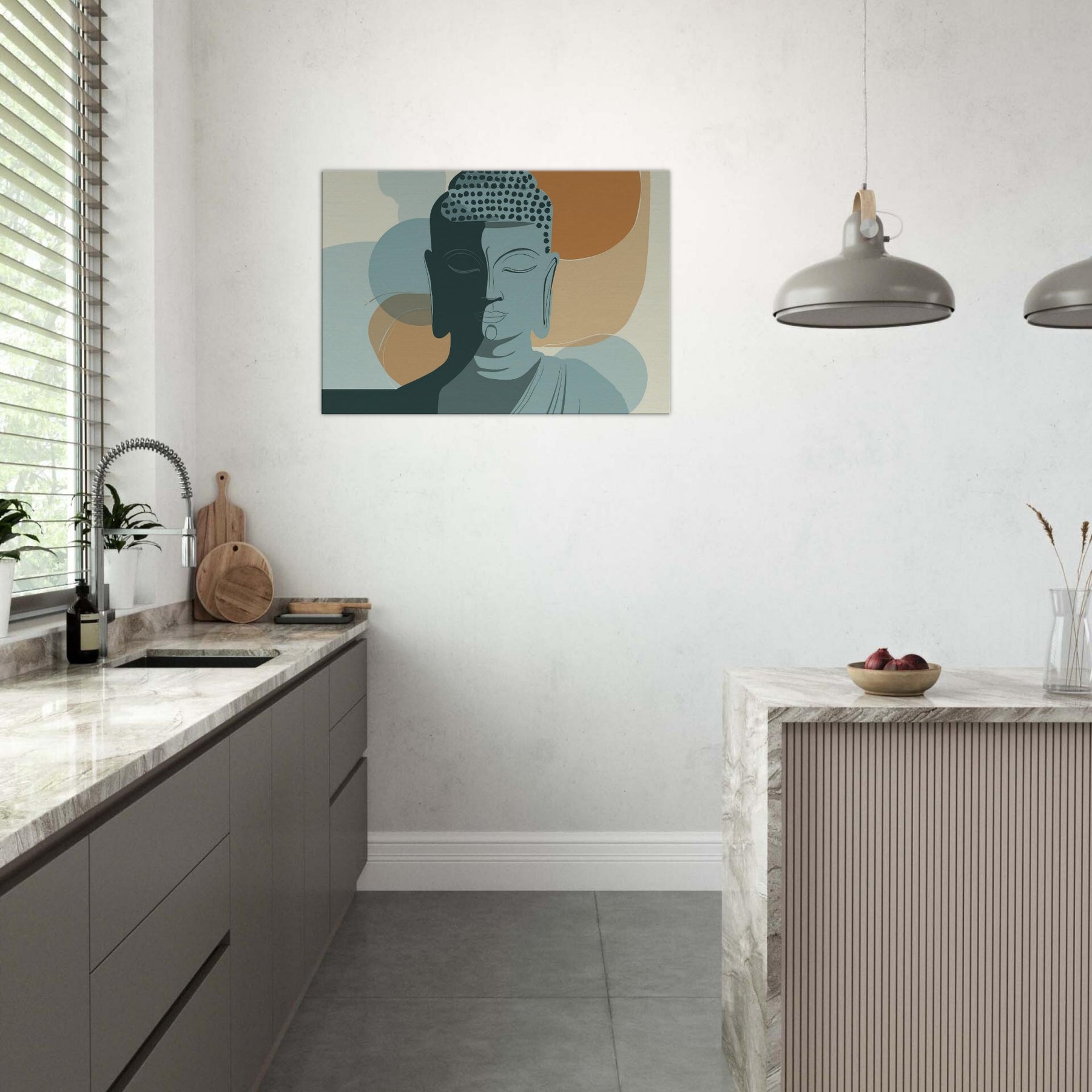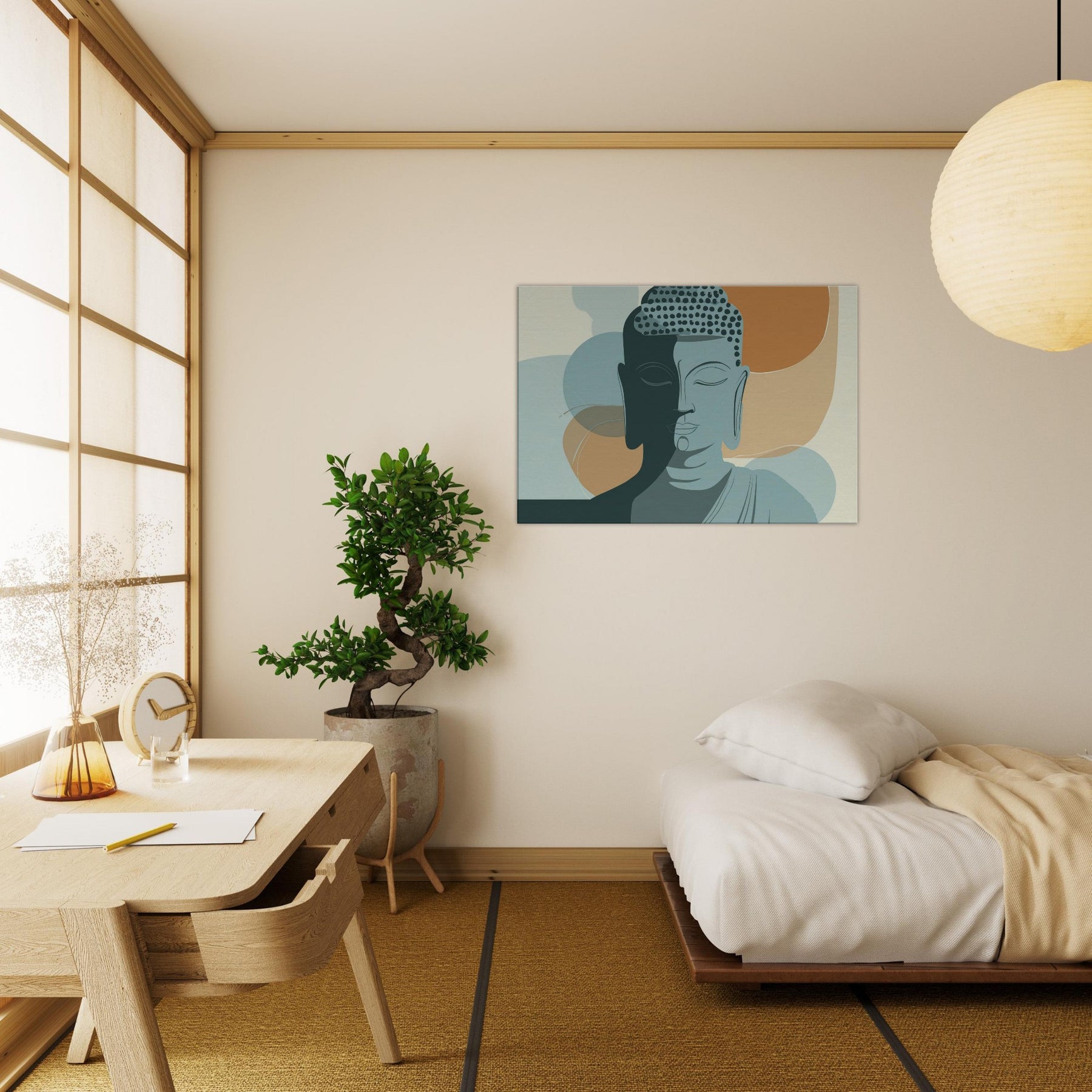In a hush of ink and air, this minimalist Buddha radiates a calm that travels beyond the frame. The dual tone face, half lit, gathers warm and cool tones like breath on a quiet morning. Soft arcs and restrained lines invite the eye to linger, turning a living room into a sanctuary of focus and balance. Hang it where you seek centering above a sofa, beside a reading chair, or in a meditation nook and let the essential serenity of the Buddha permeate your space, one mindful glance at a time.