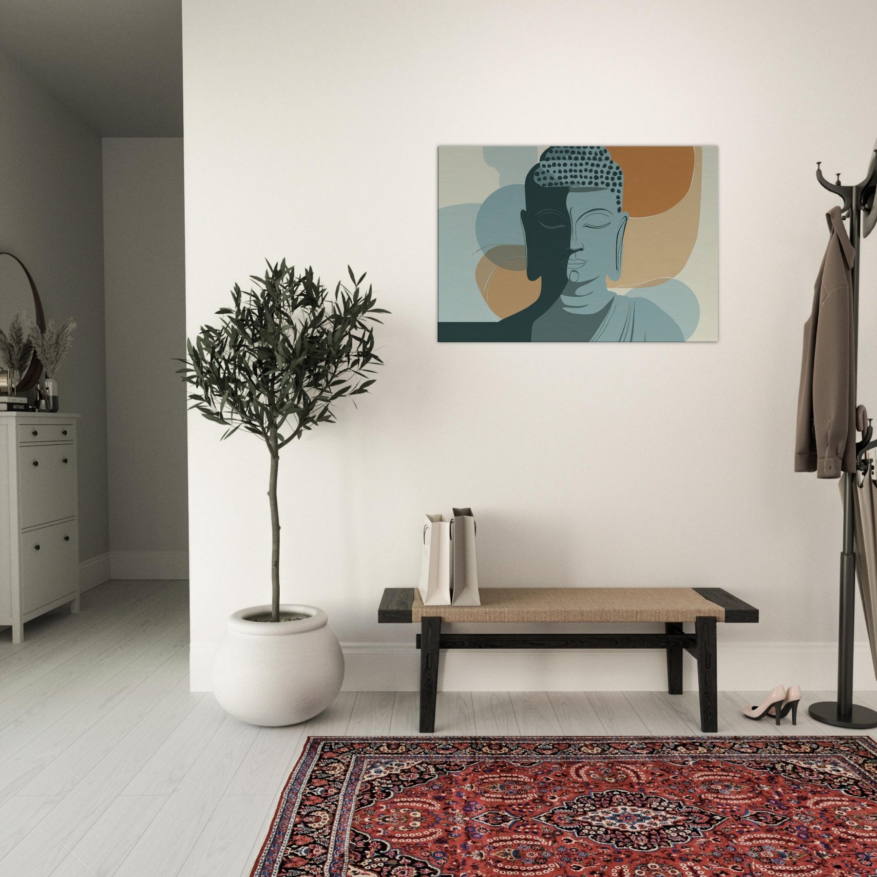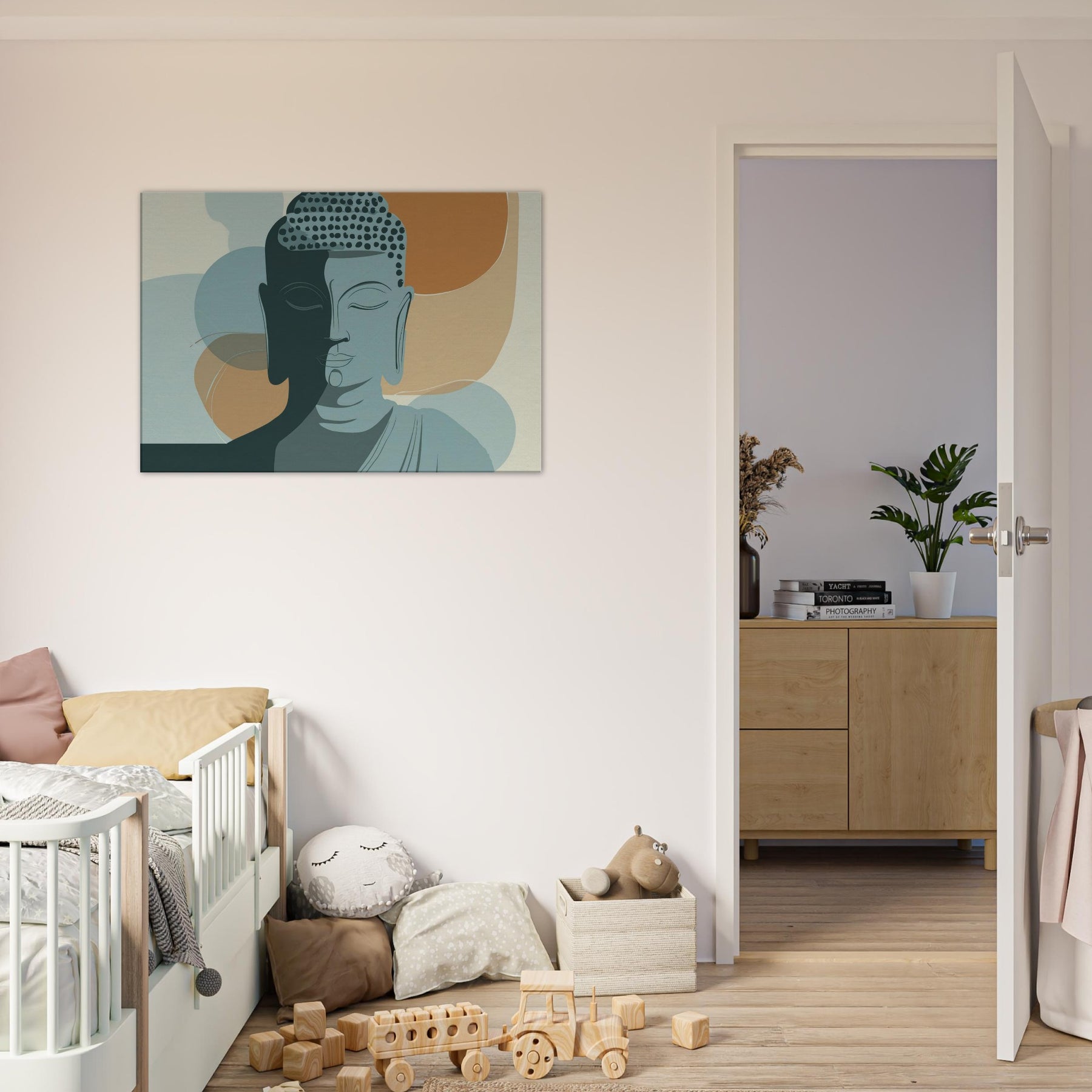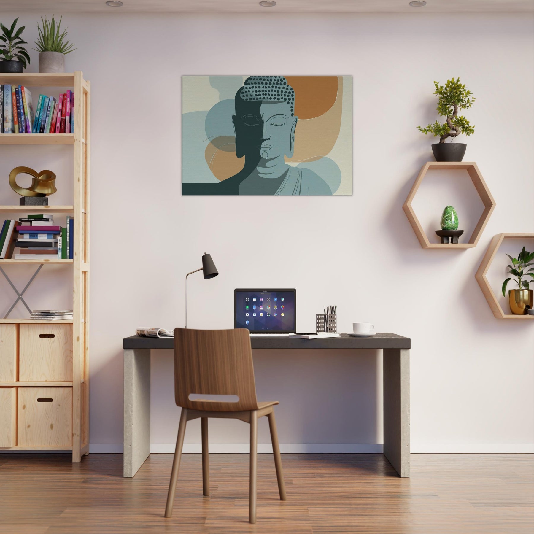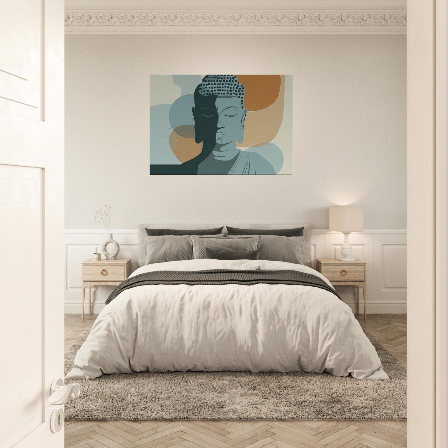 In a hush of ink and air, this minimalist Buddha radiates a calm that travels beyond the frame. The dual tone face, half lit, gathers warm and cool tones like breath on a quiet morning. Soft arcs and restrained lines invite the eye to linger, turning a living room into a sanctuary of focus and balance. Hang it where you seek centering above a sofa, beside a reading chair, or in a meditation nook and let the essential serenity of the Buddha permeate your space, one mindful glance at a time.