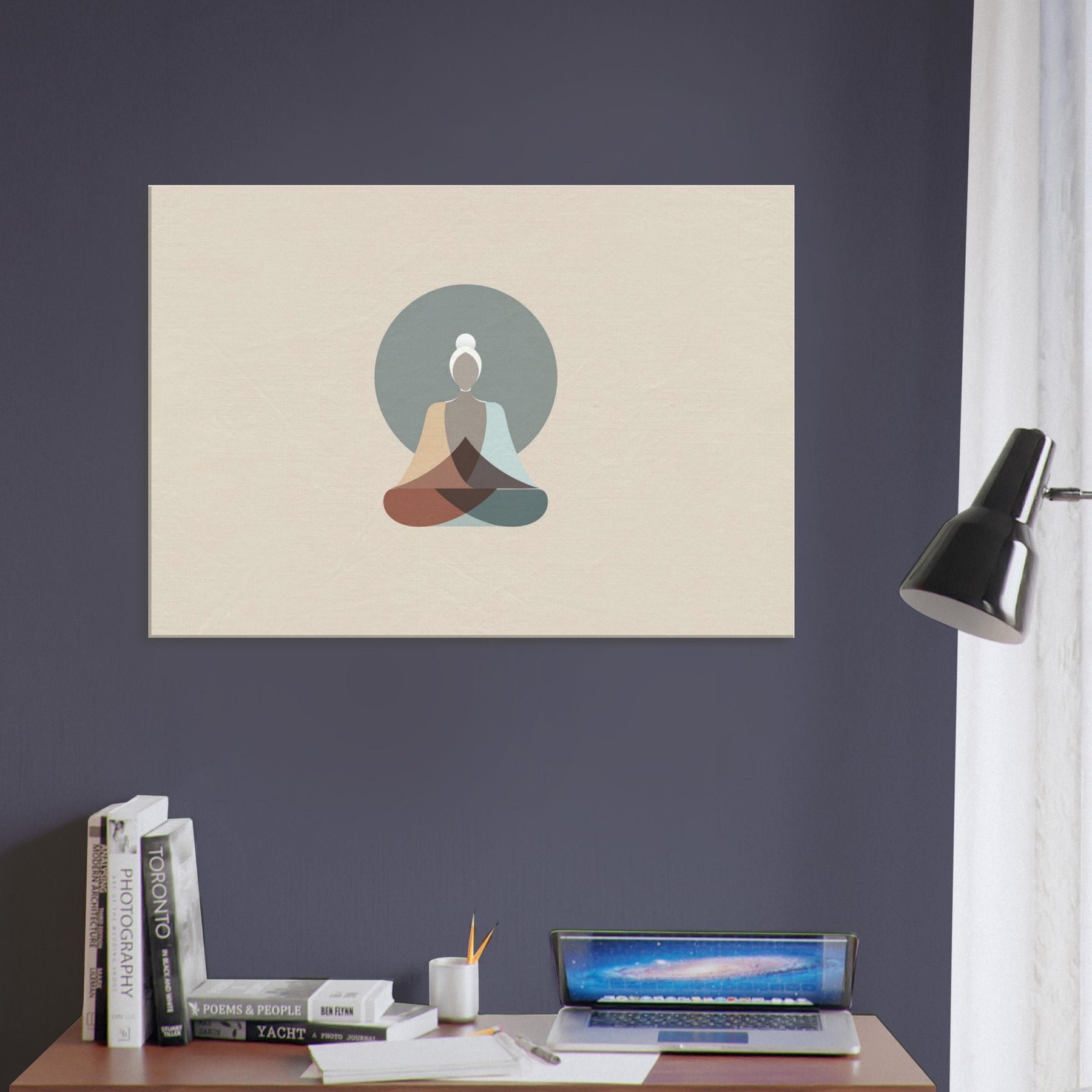 Bodhisattva sits in quiet grace, rendered with clean, intersecting planes that breathe permission for stillness. This minimalist composition threads color like soft light dusty sage, warm ochre, pale blue circling a serene figure and a gentle halo. In a living space, it becomes a calm horizon: a focal point that steadies conversations, slows mornings, and invites reflection. The Bodhisattva energy feels present without demanding attention, offering balance and harmony. Perfect for studios, lounges, or meditation corners seeking quiet luminosity and mindful, modern elegance. The central subject is Bodhisattva (Abstract).