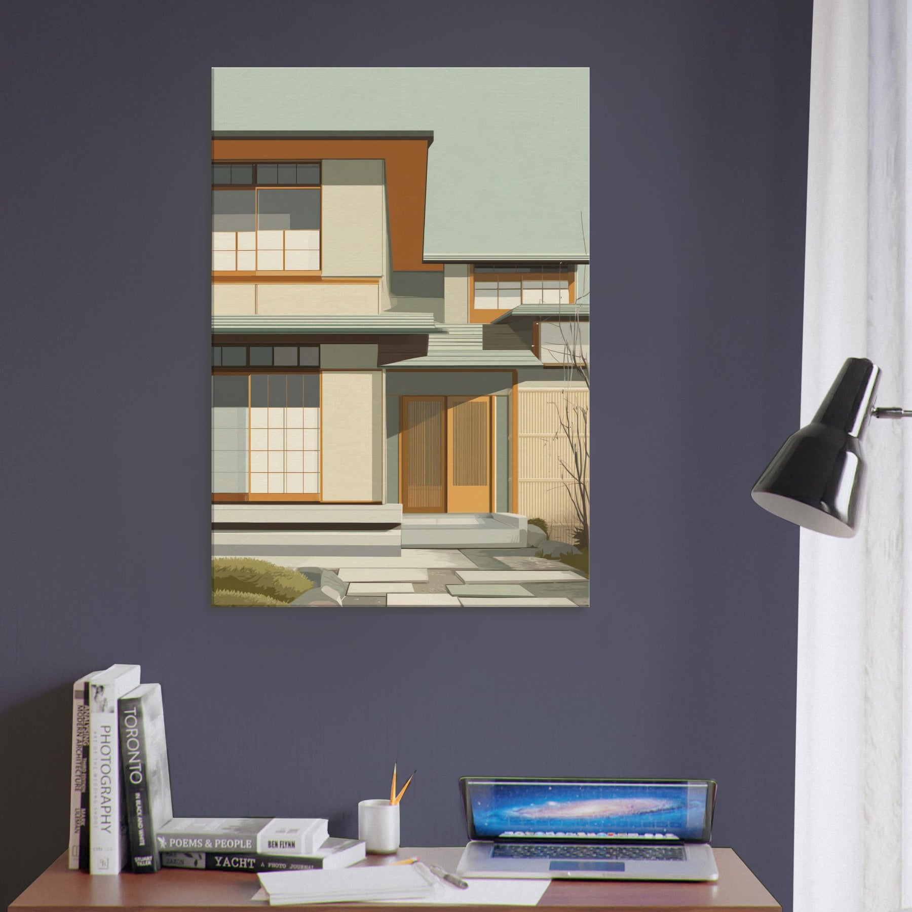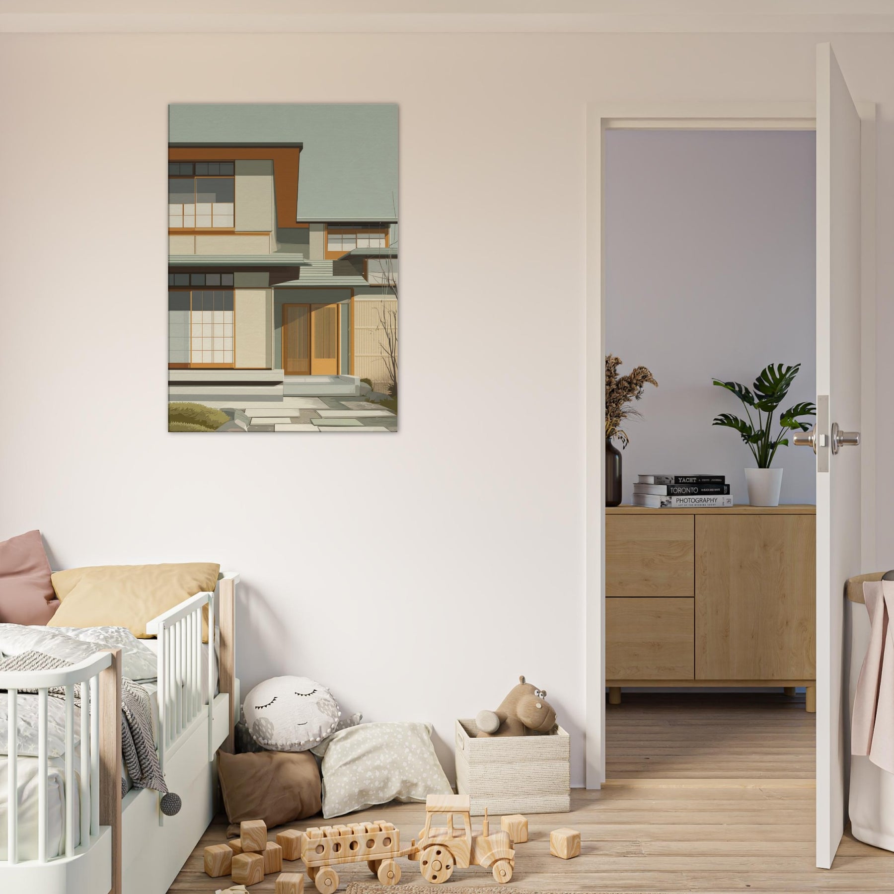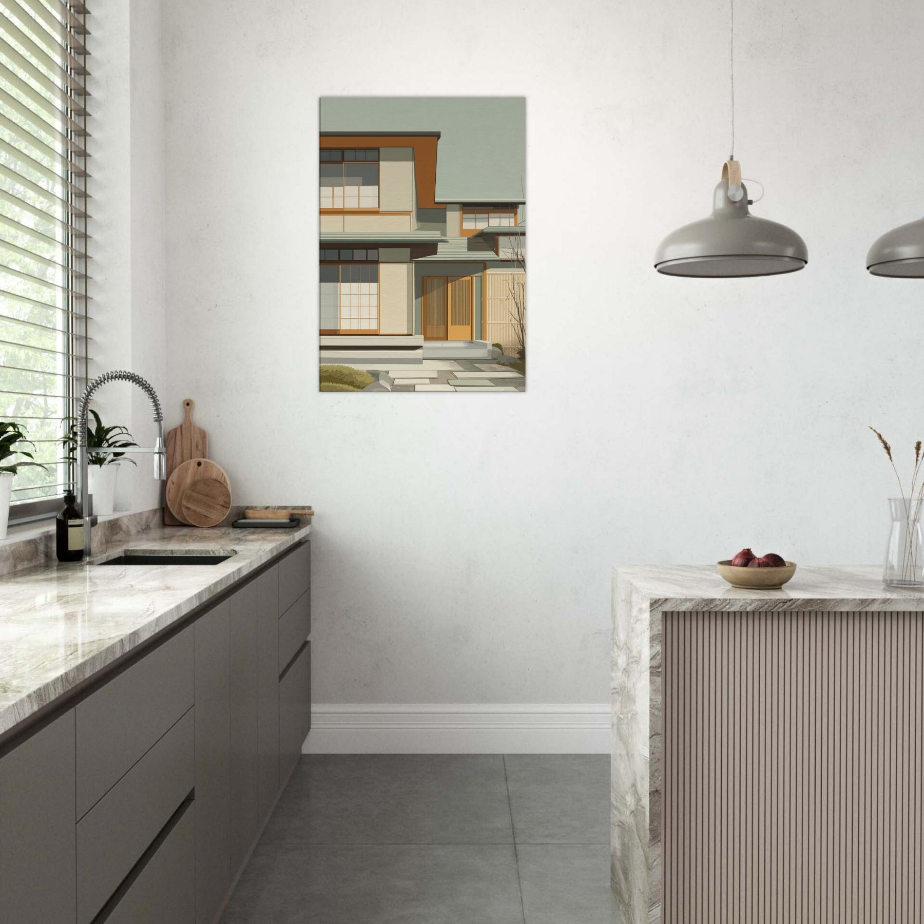 Step into a hush of lines and pale light with this study of Japanese Houses rendered in a minimalist palette. The architecture becomes a quiet poem soft edges, warm wood, and careful shade that suggest morning sun on the steps. The arrangement invites stillness, guiding the eye along clean planes and generous gaps. Hung in a living room or study, it fosters calm focus, balances a busy day with a sense of measured space, and turns everyday walls into a serene vignette of urban grace.